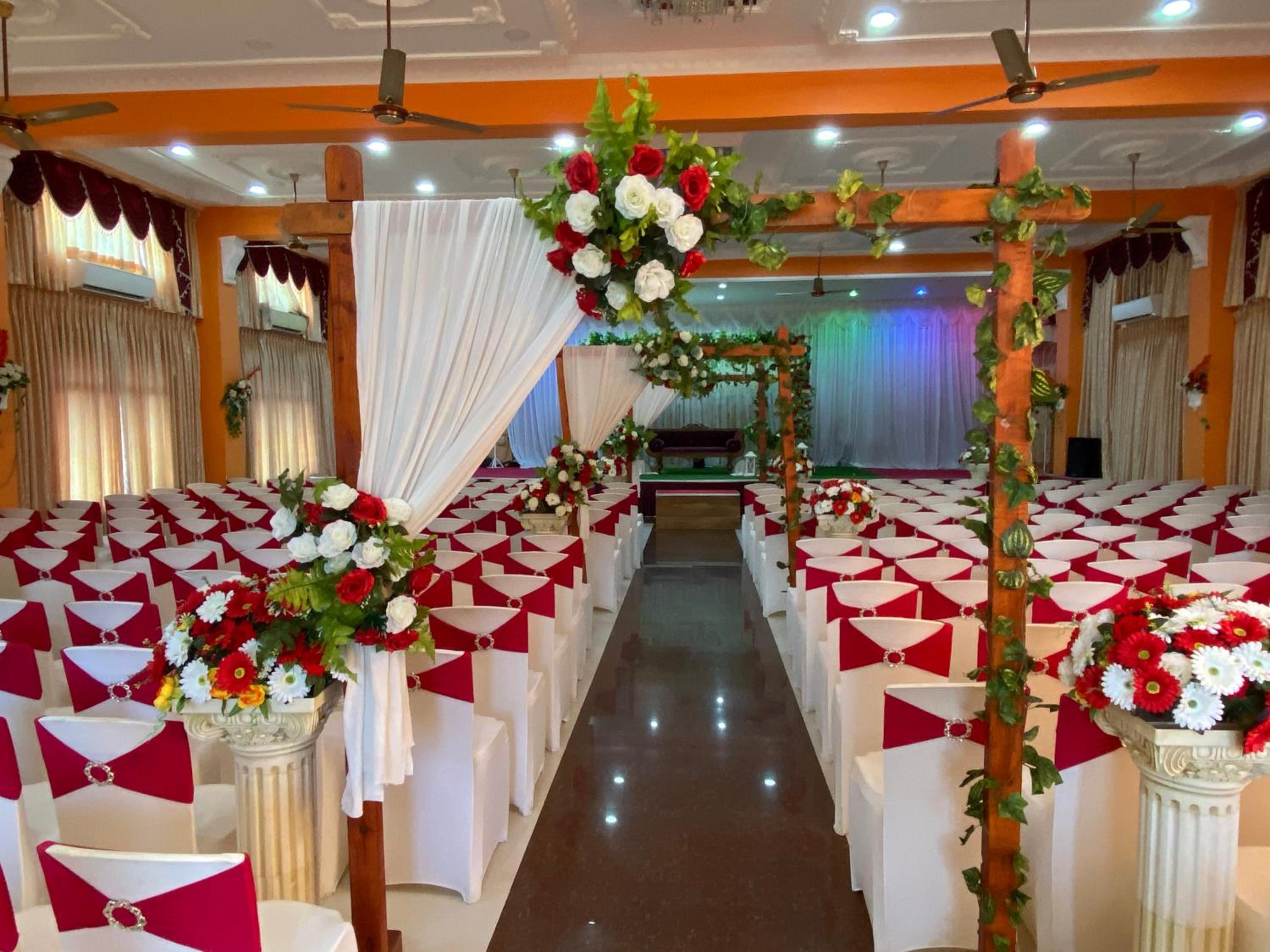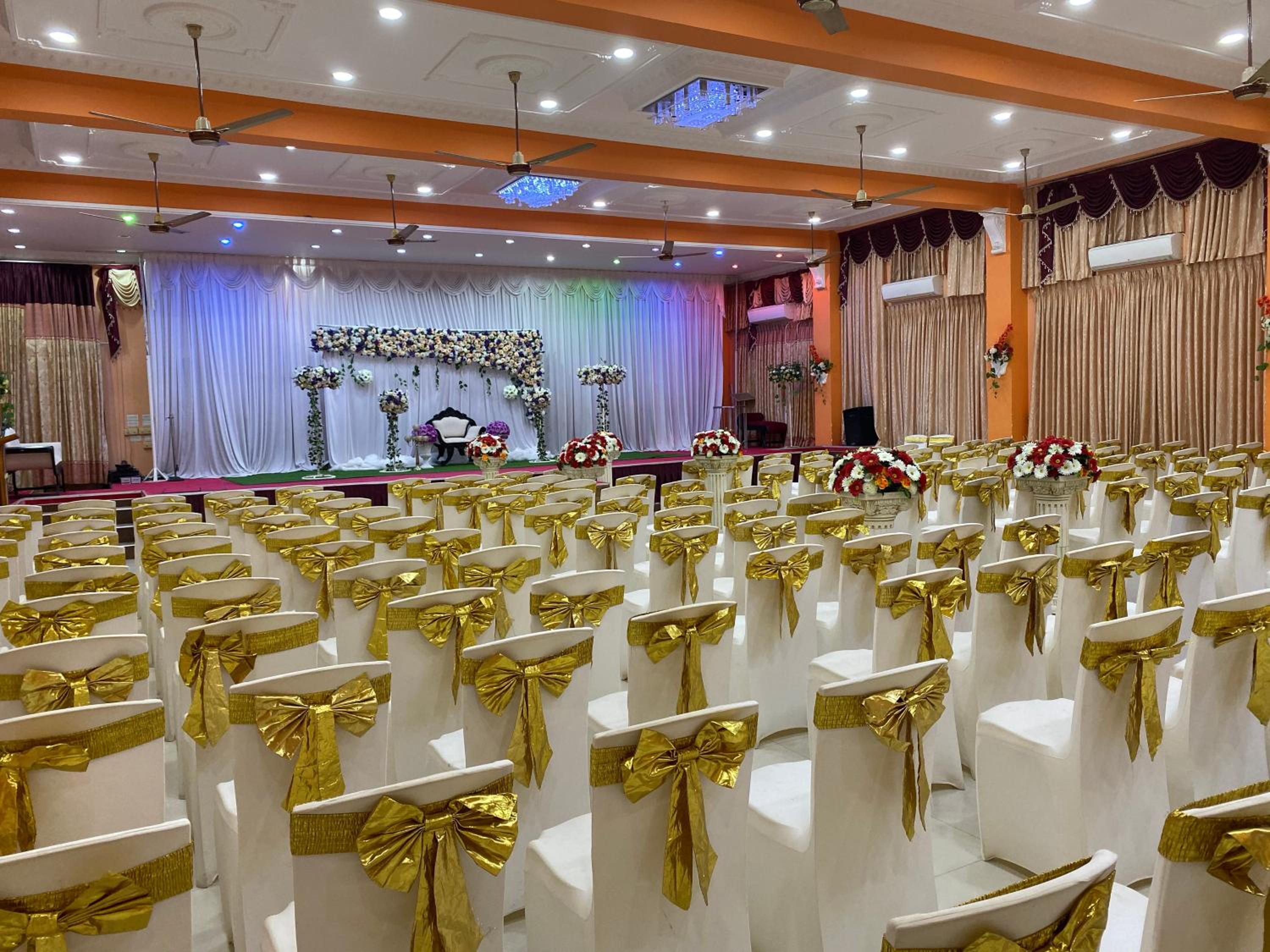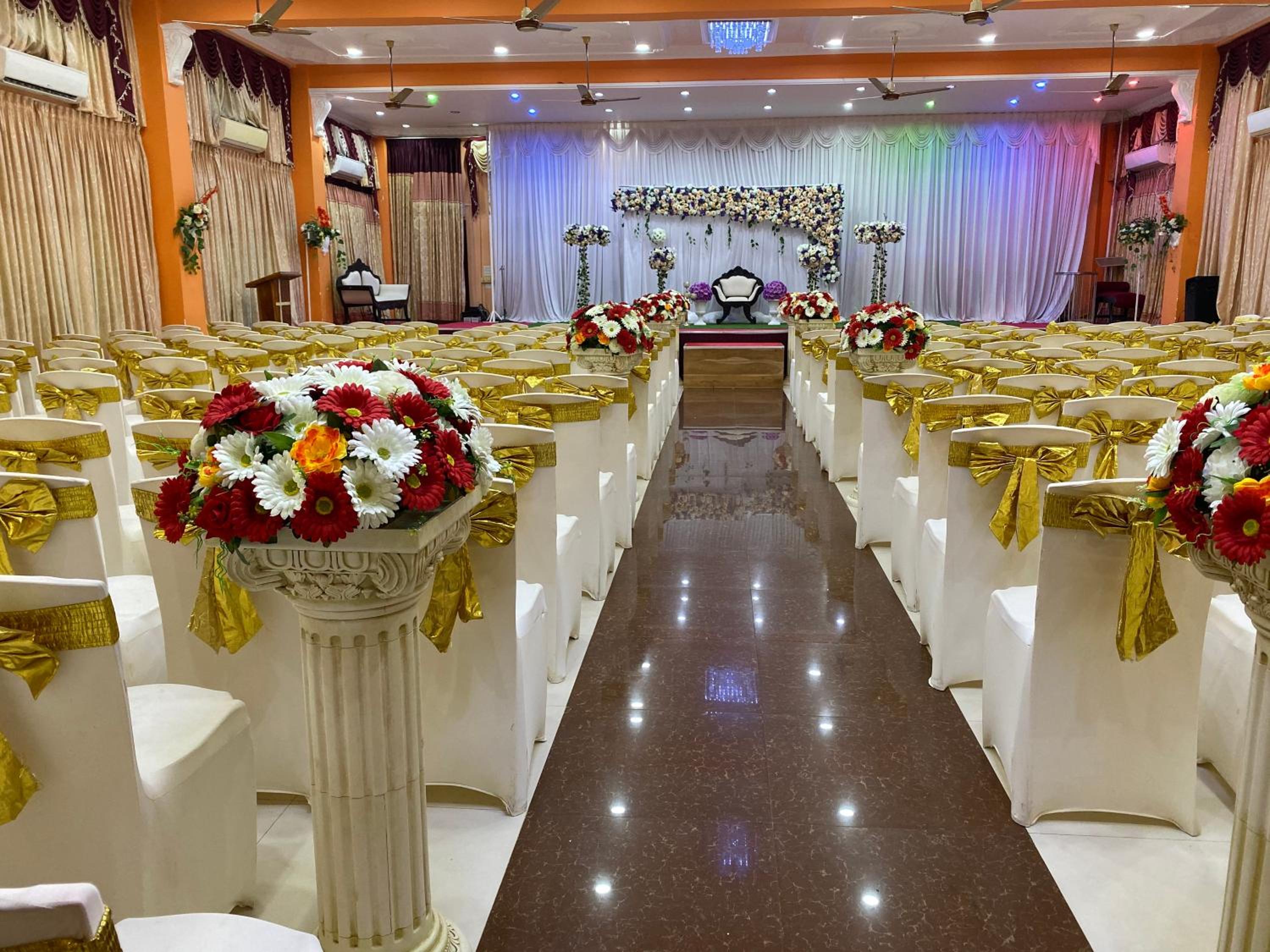 Very friendly staff, able to guide us for sightseeing, vegetarian restaurant near by etc. Though rooms are part of large banquet hall, as there was no program, it was quiet.