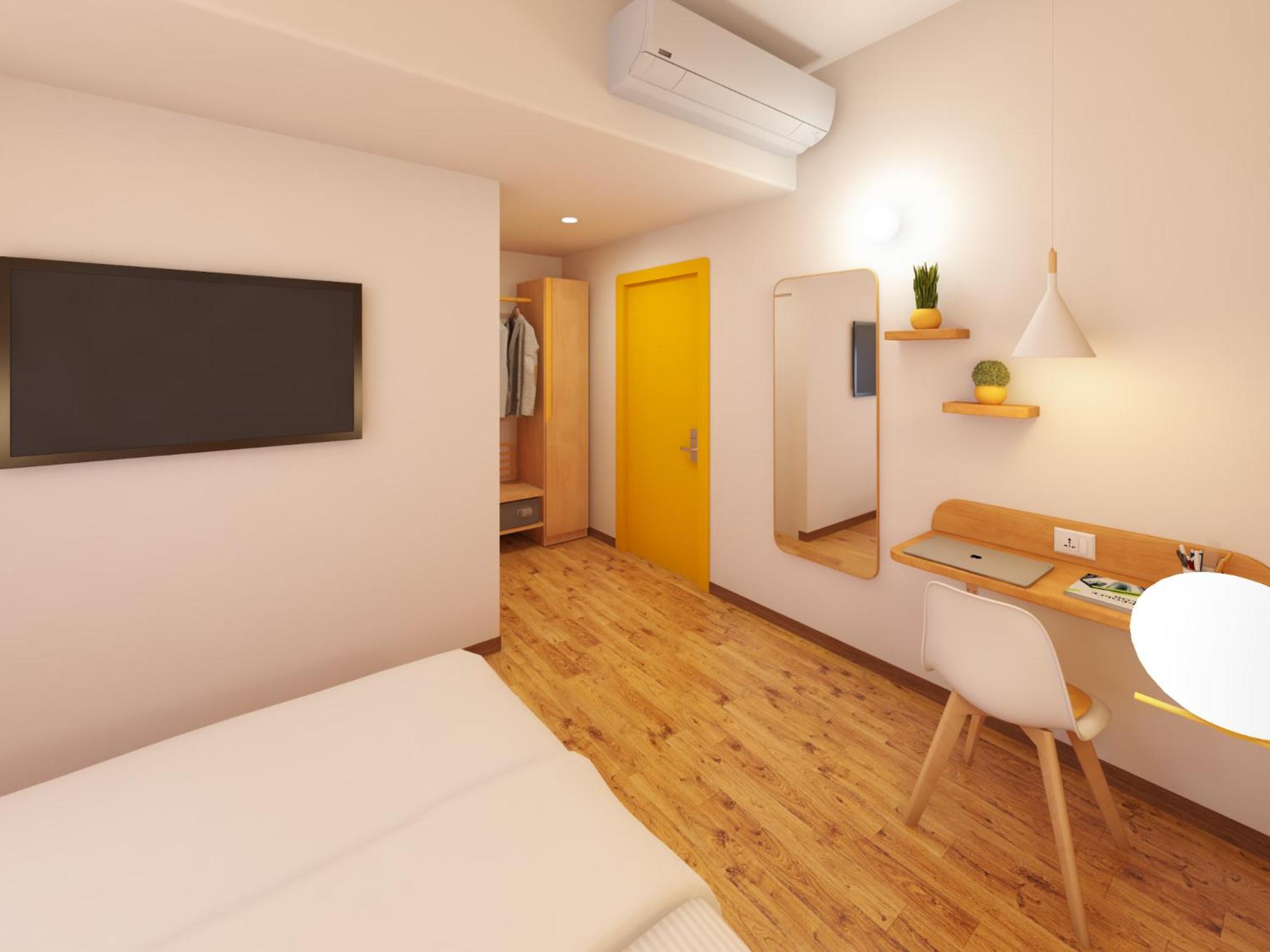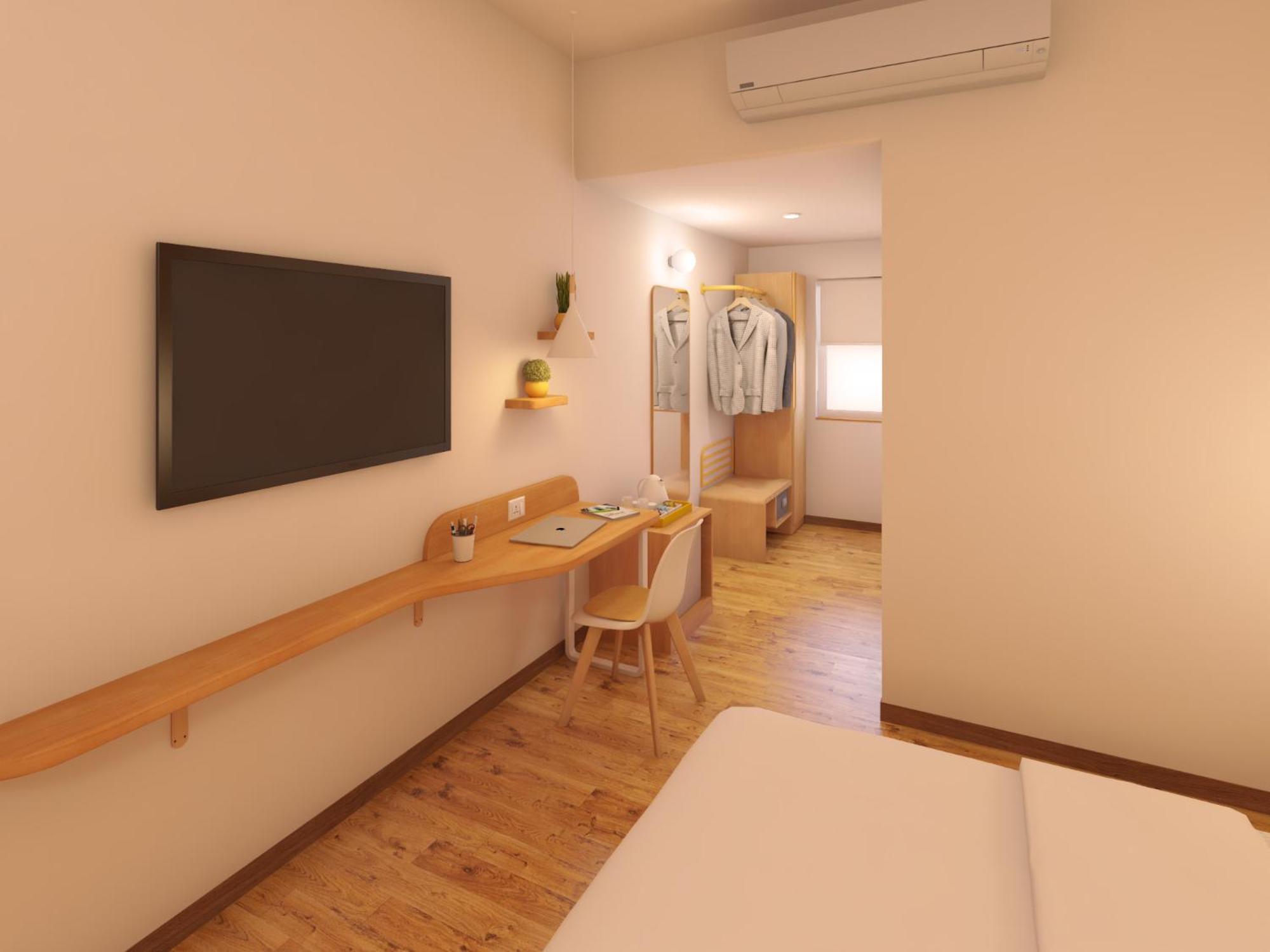 Room was very small and pillar was in front of Bed. TV and Pillar was so located that it was difficult to move towards the bed. Position of AC was such that Bed side portion of room was not getting any cooling. Room was very badly designed.