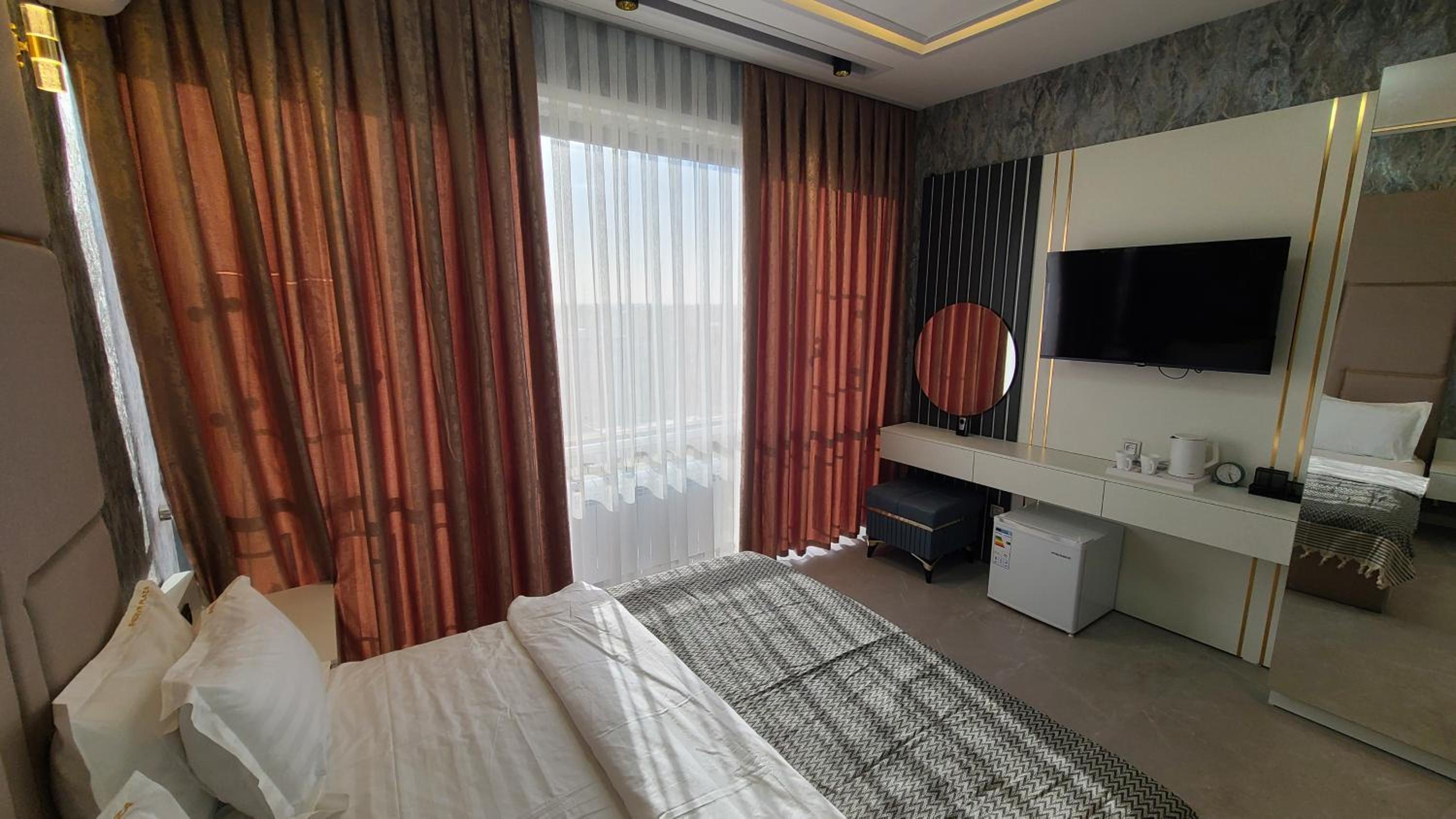 Shedevr Plaza Navoiy is the ideal stop for your Navoi stay. Luxurious Accommodations with city views, a terrace to unwind, and dining options at the on-site restaurant and bar. Enjoy Convenient Amenities like room service, free WiFi, and a 24-hour front desk for a seamless stay.