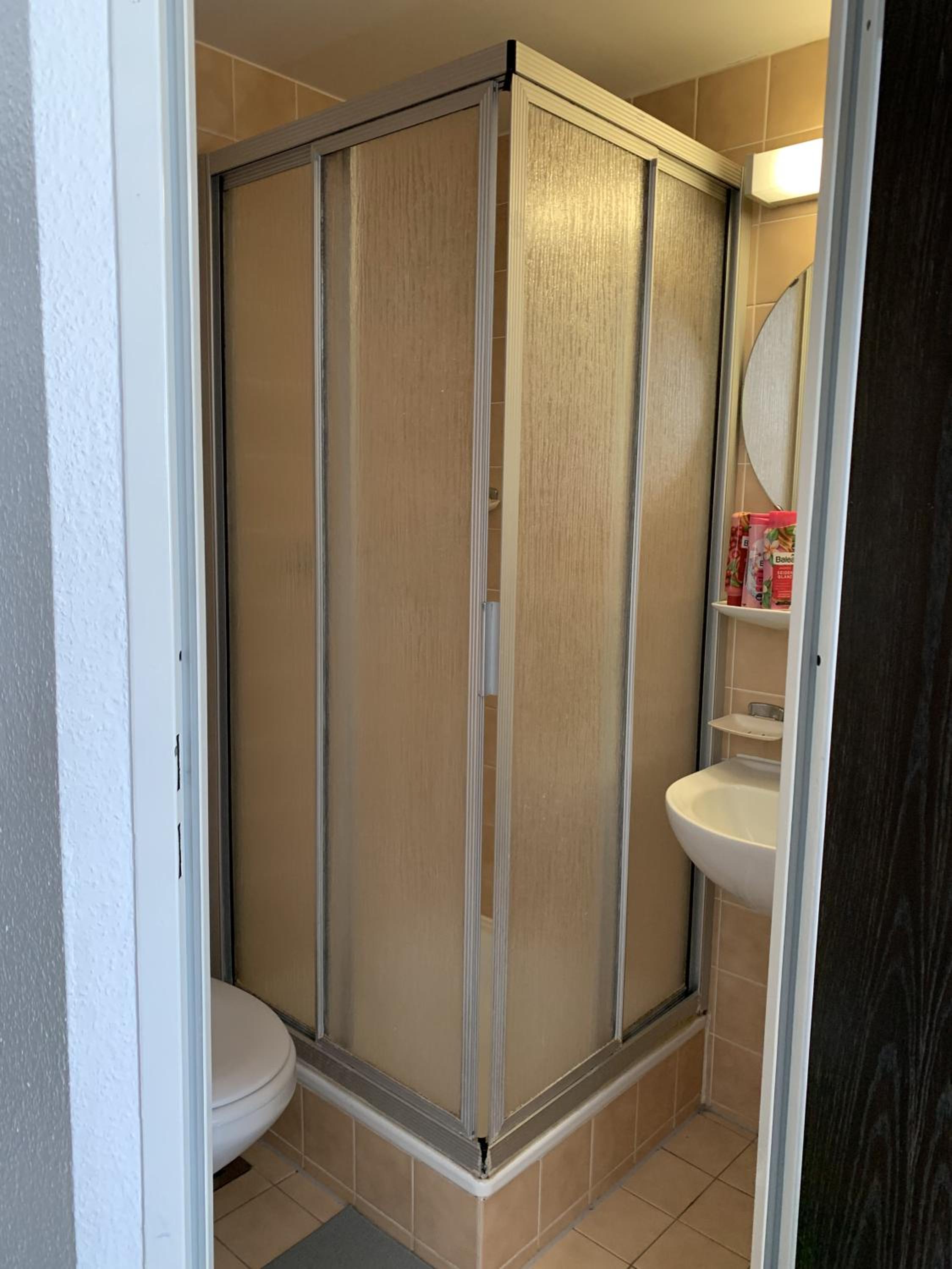Wir haben sofort wieder ausgecheckt. Es war nicht sauber, die Duschabtrennung war komplett verschimmelt, der Duschkopf war nicht an der Wand fixierbar, es kam kaum Wasser raus, der Rauchmelder lag ohne Batterie auf dem Schrank, die Handtücher rochen stark nach Zigarettenrauch. Die Staubschicht unter dem Bett ist zentimeterhoch. Ekelhaft, abartig.