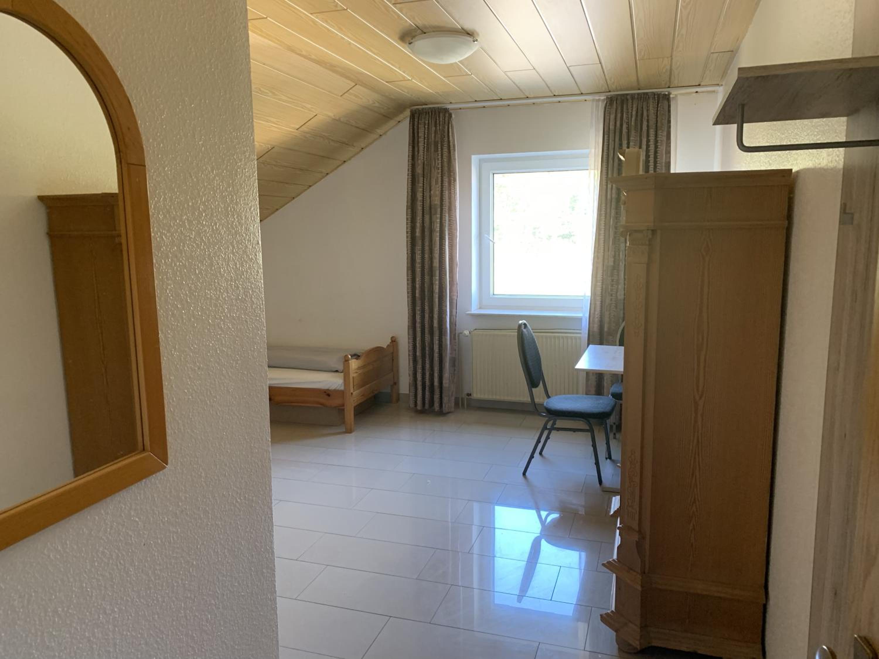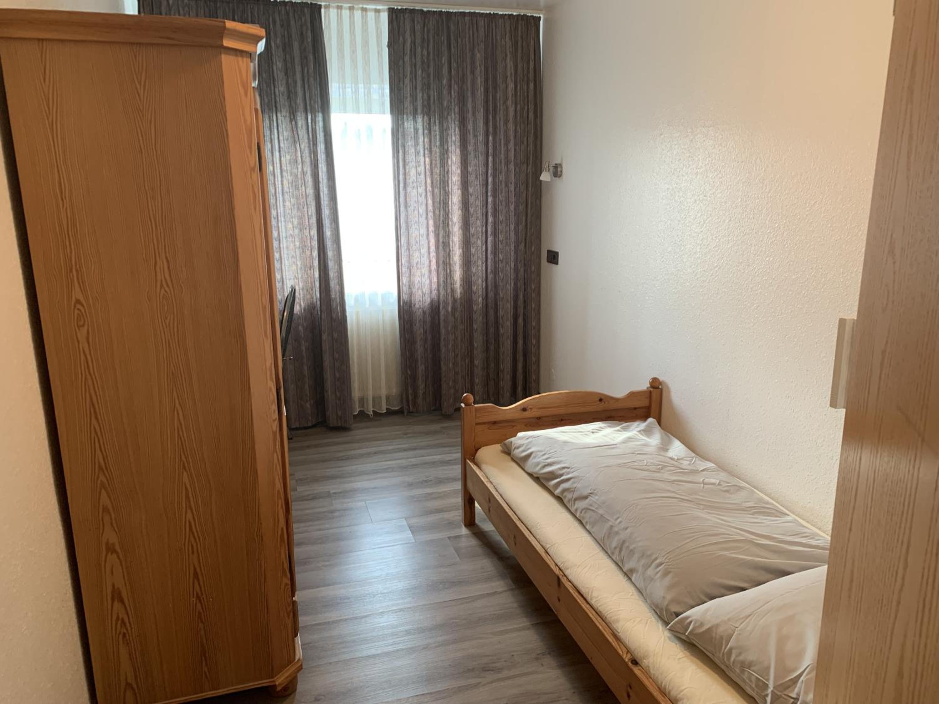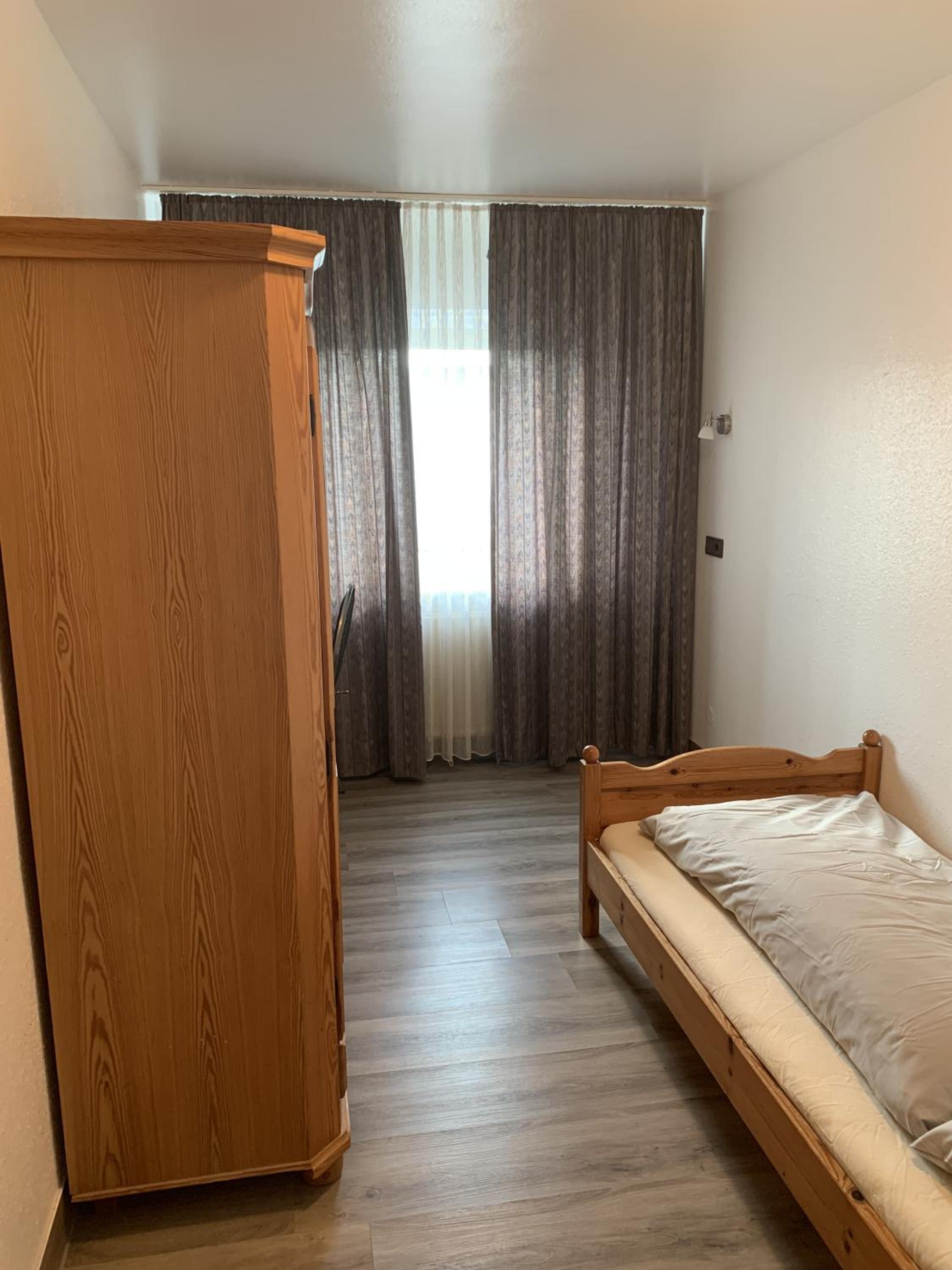 Alles teilweise alt und defekt. Bad war eine Zumutung und gefährlich. Lampenröhren über bett schon länger defekt. Betten keine Auflage über Matratze und Bezüge fleckig. Gardinen Löcher und ewig nich gewaschen so schwarz.