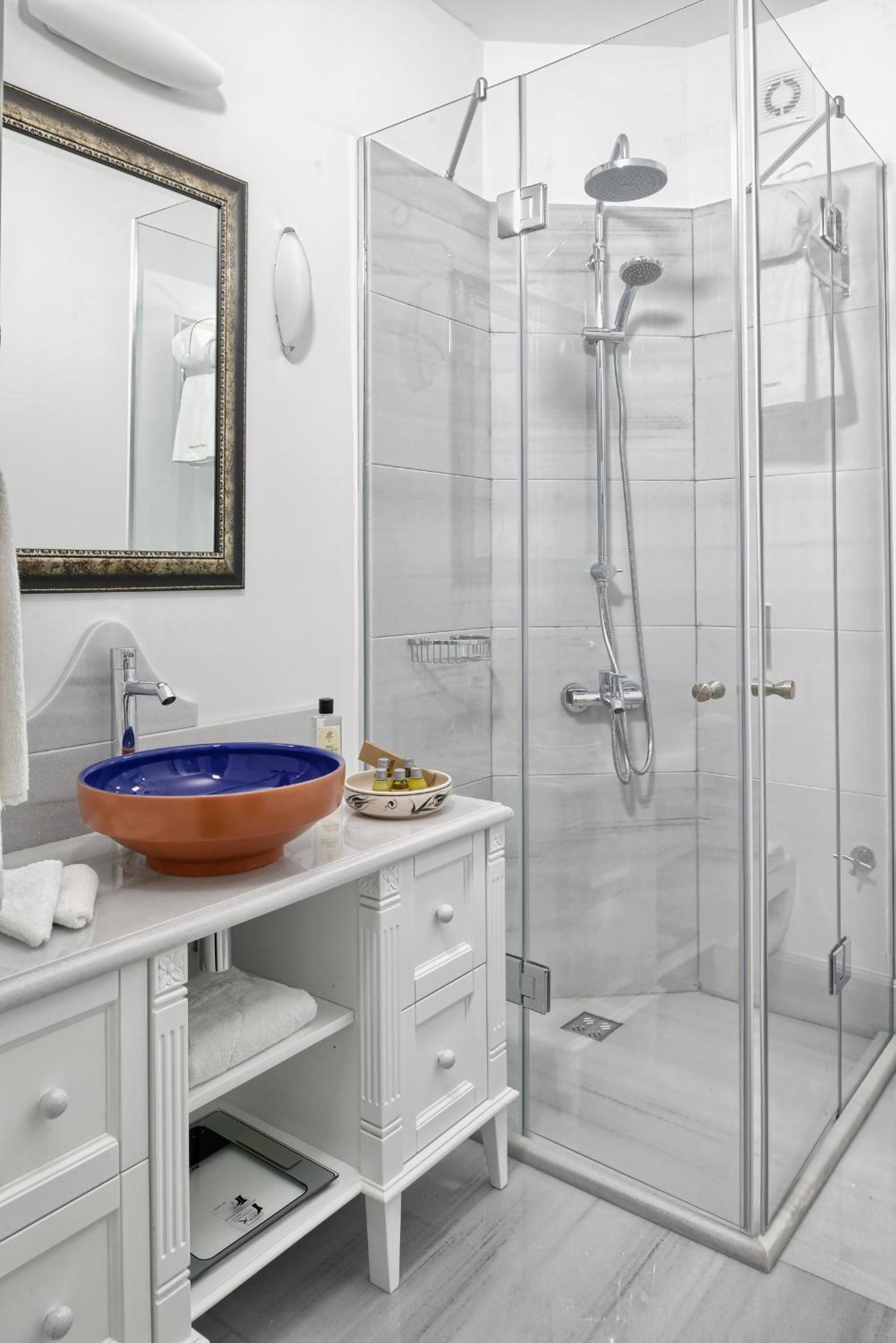 Δυστυχώς πολλά πράγματα στο μπάνιο χρειαζοταν επιδιόρθωση η και αντικατάσταση, το καζανάκι δεν δούλευε καλά, το πάνω μέρος του ντους εκτοξευε νερό παντου και τέλος δεν υπήρχε ψυγειακι. Η ήταν το κλειδωμένο ντουλάπι που δεν άνοιγε...