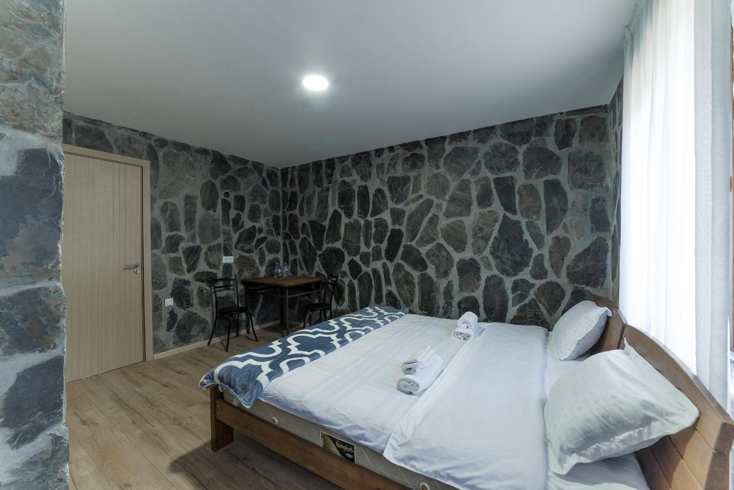 Small things due tu Georgian construction, it is not Swiss quality, 😁😉shower temperature changes, mattrace is more comfi than it looks like, but could be better, only one plug, distributor plugs would help, rooms are rather cold, but you get as many blankets as you want and a heater if you like and I slept very well.