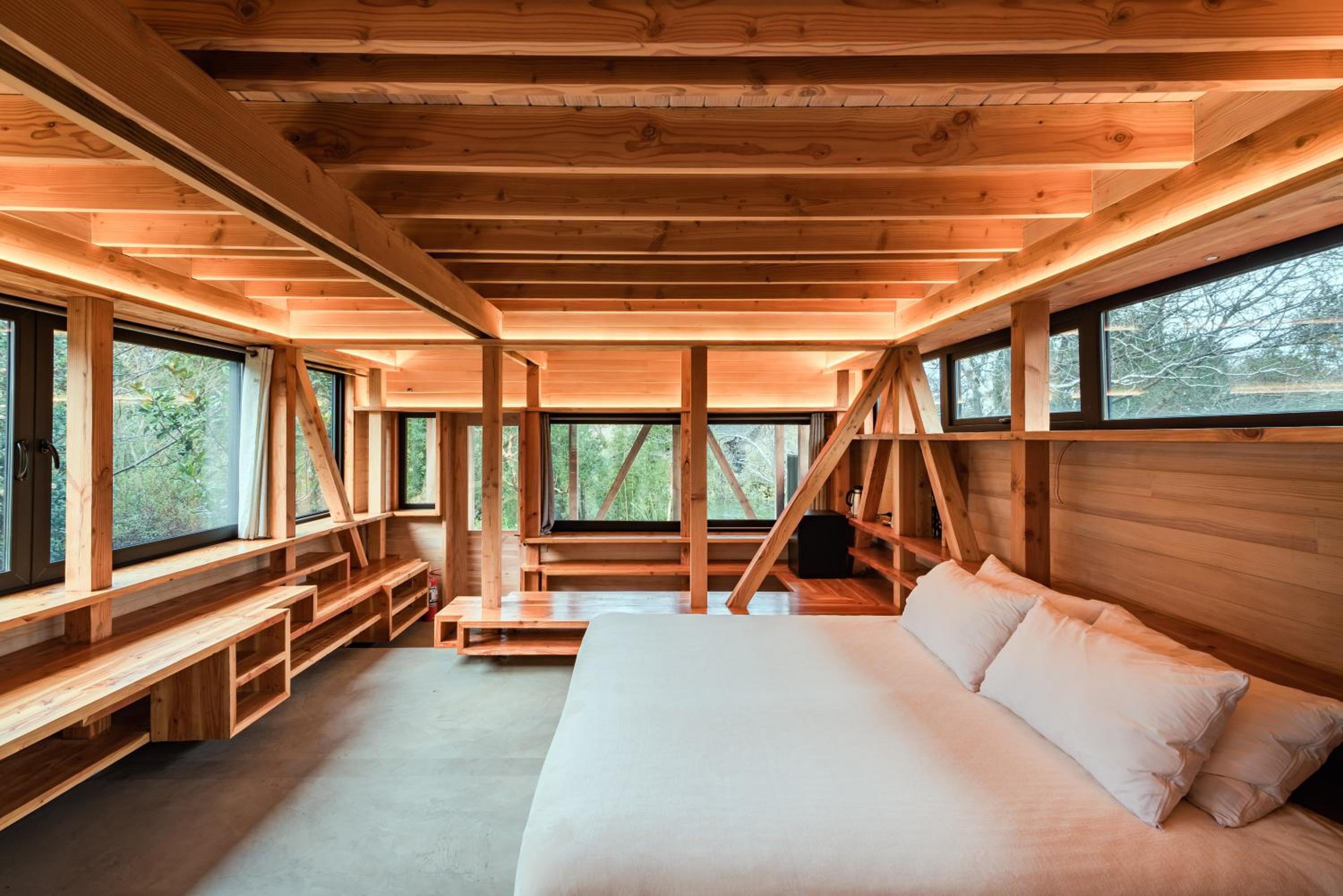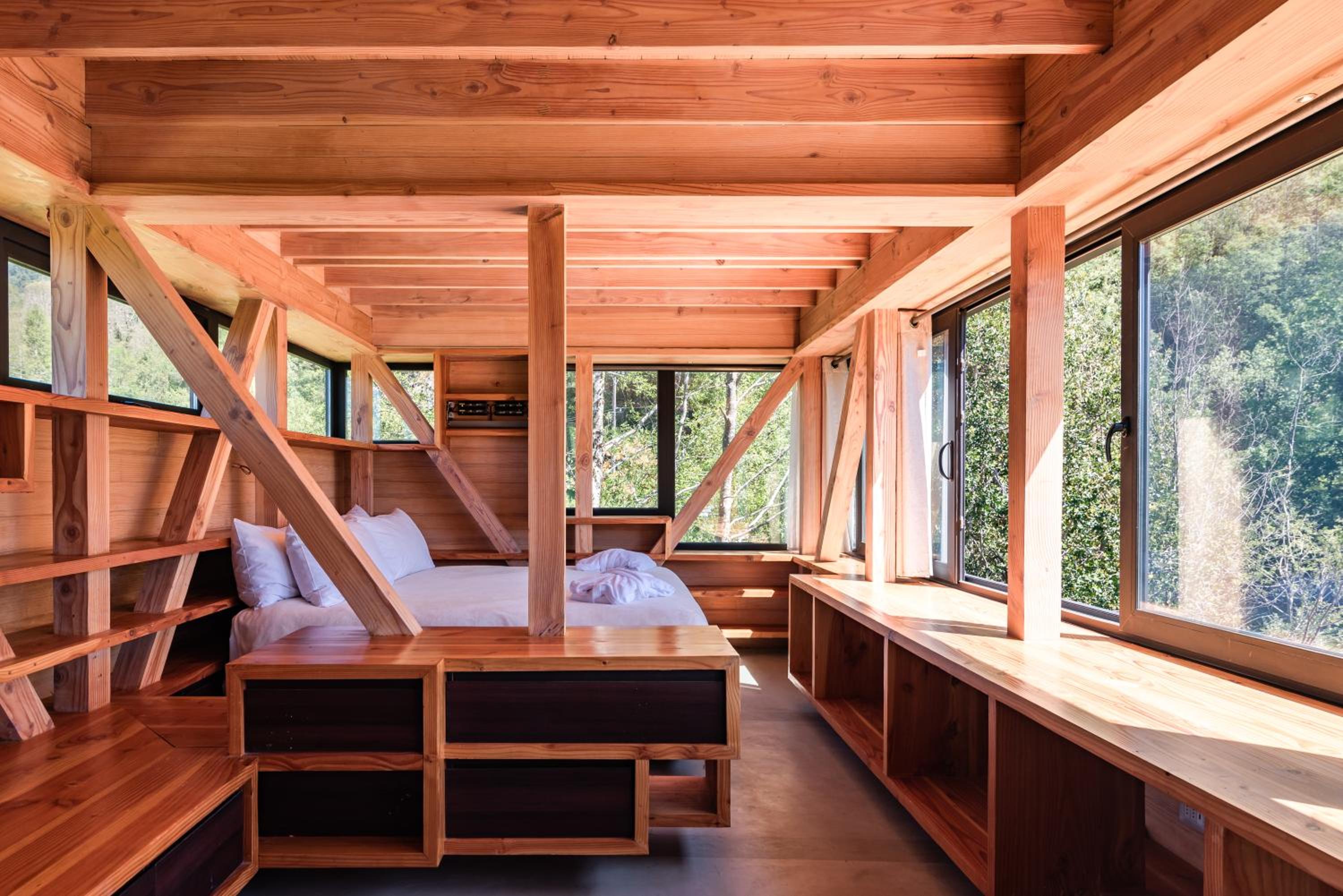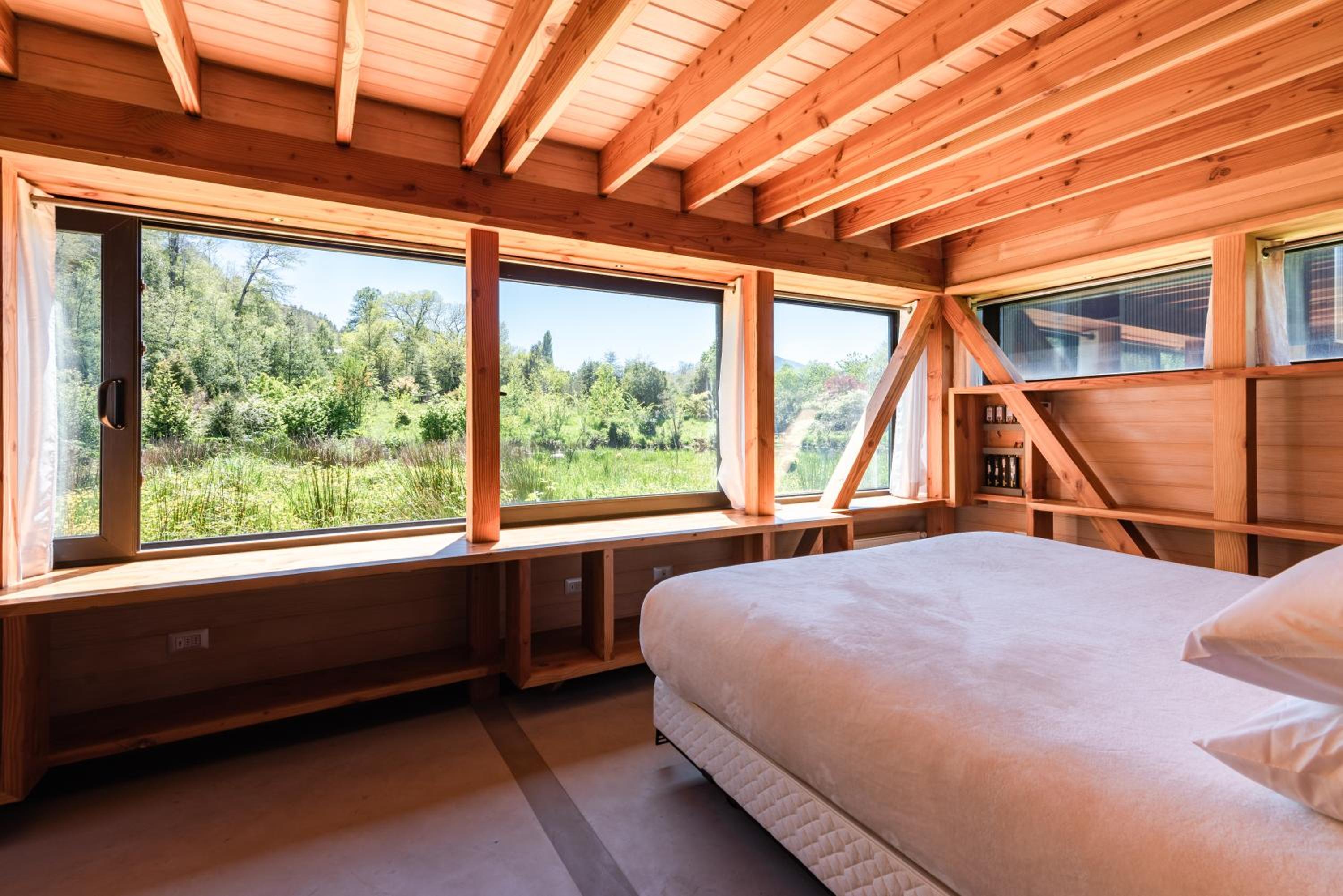 Experience eco-friendly hospitality at Cura Lodge along the Liucura River, where modern comfort meets nature conservation efforts.