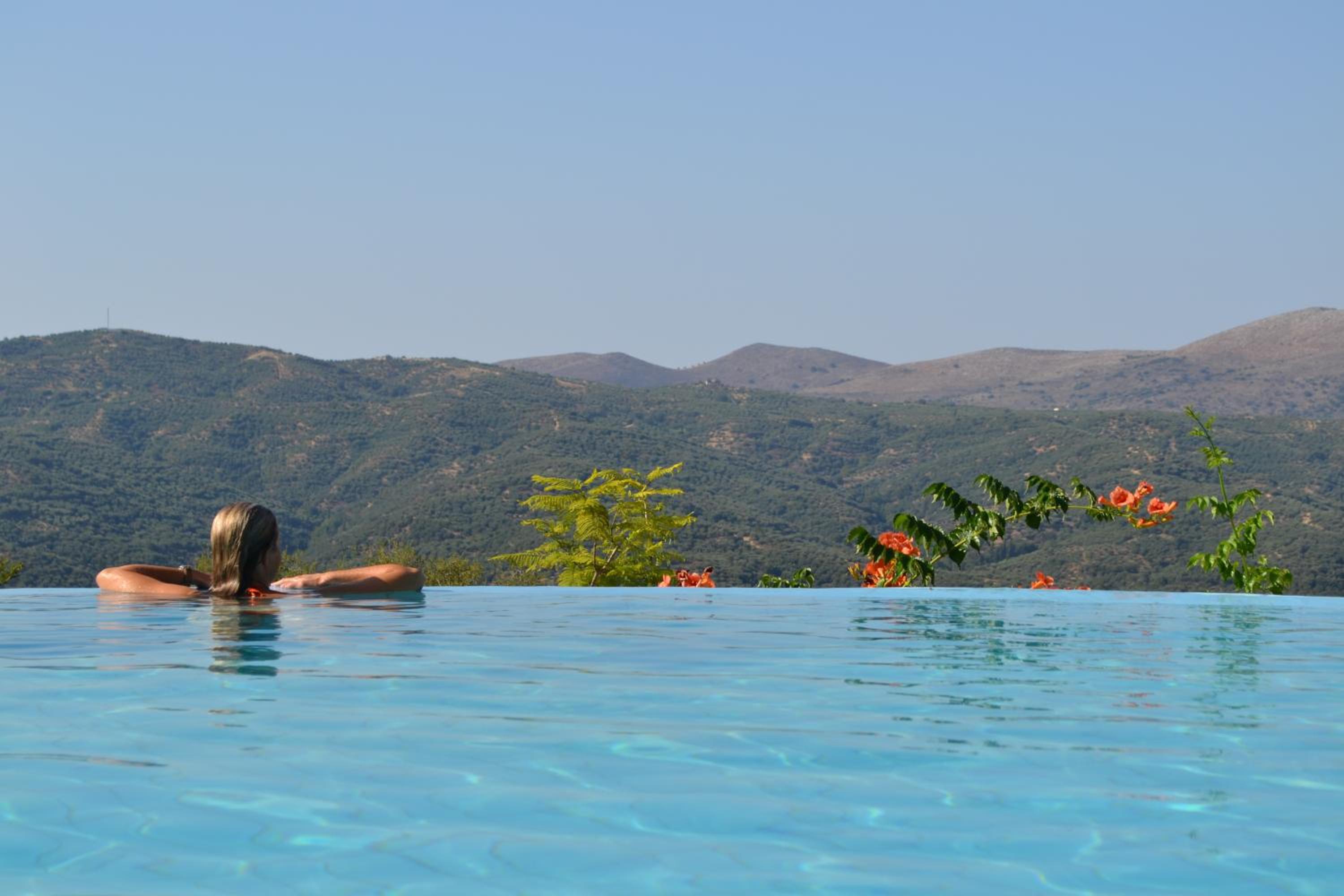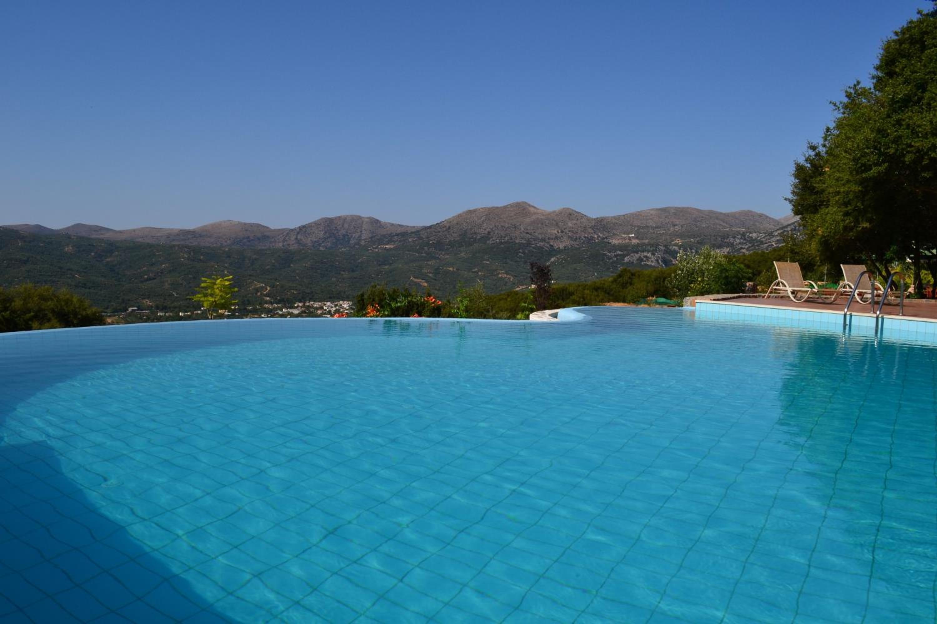 L’emplacement sur le plateau de Lassithi, en pleine nature avec les aigles et les vautours au-dessus de la tête, au calme. L’accueil et les repas et le confort simple des chambres, la piscine.