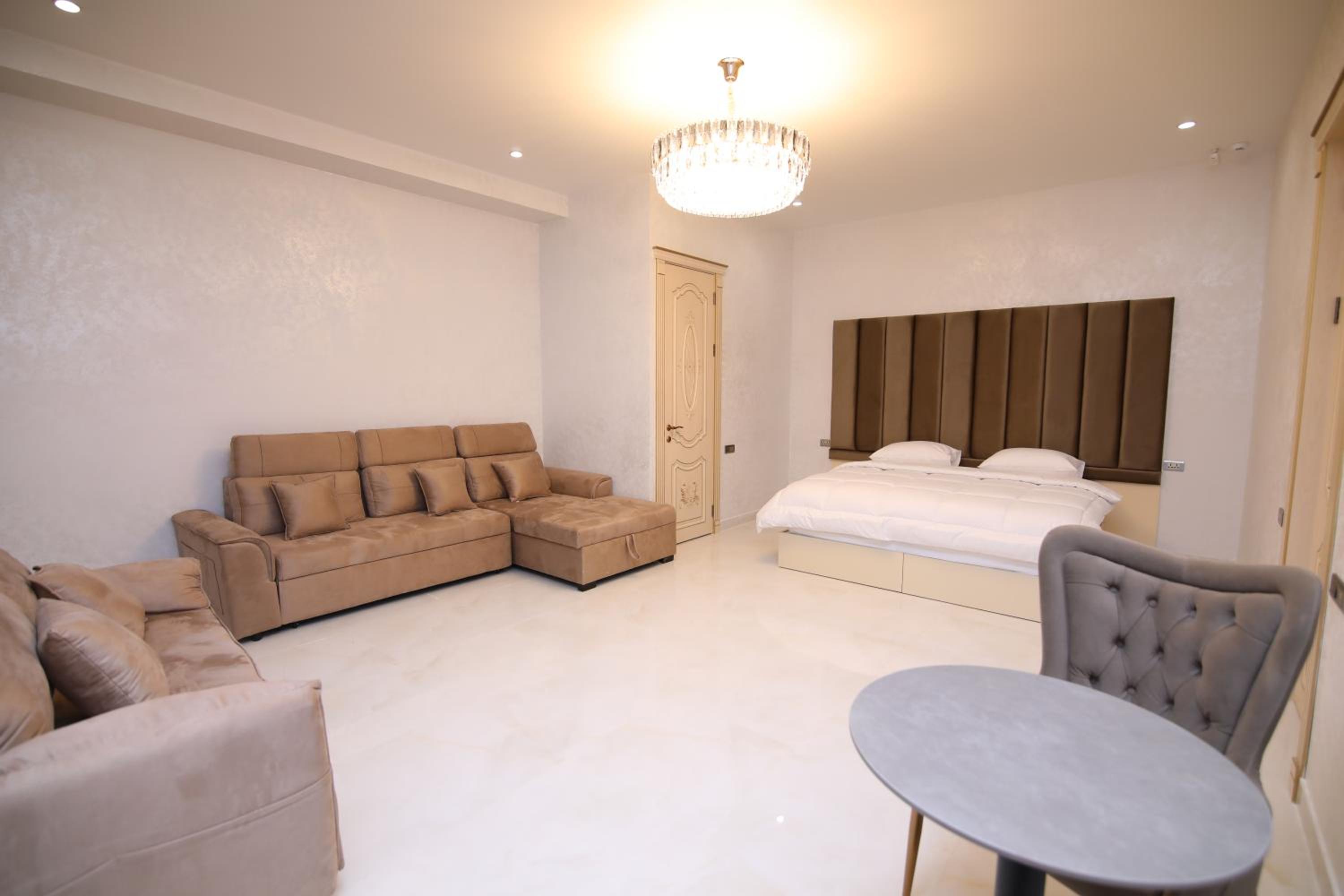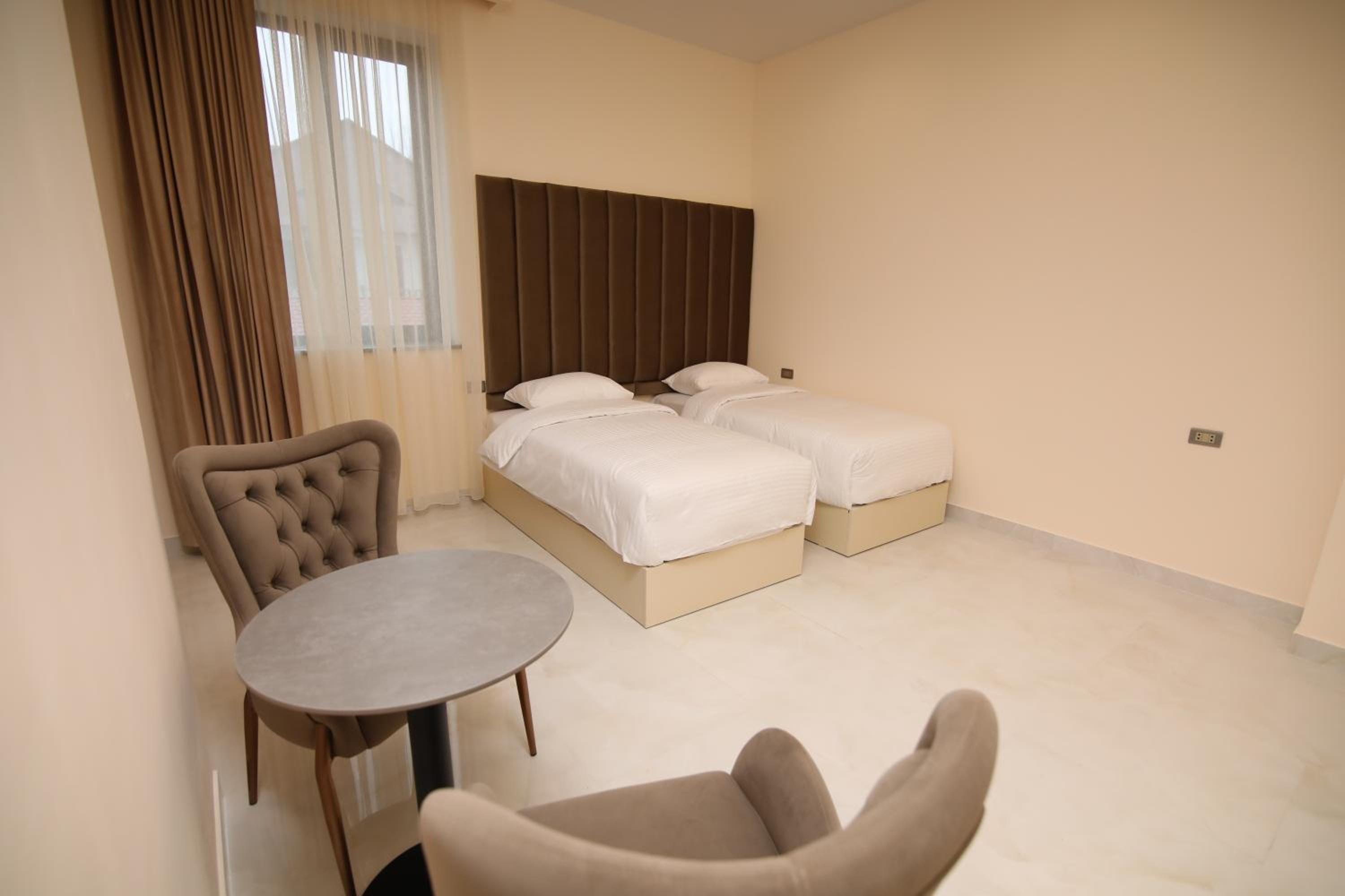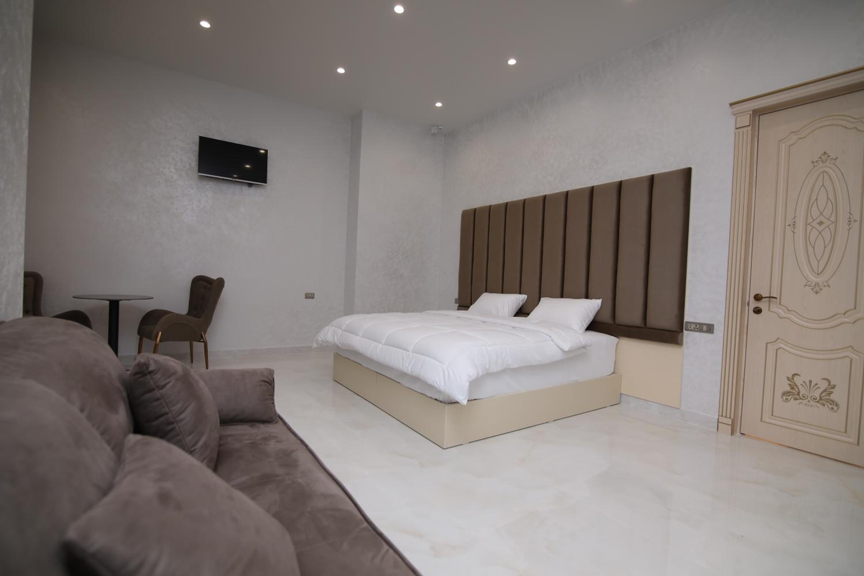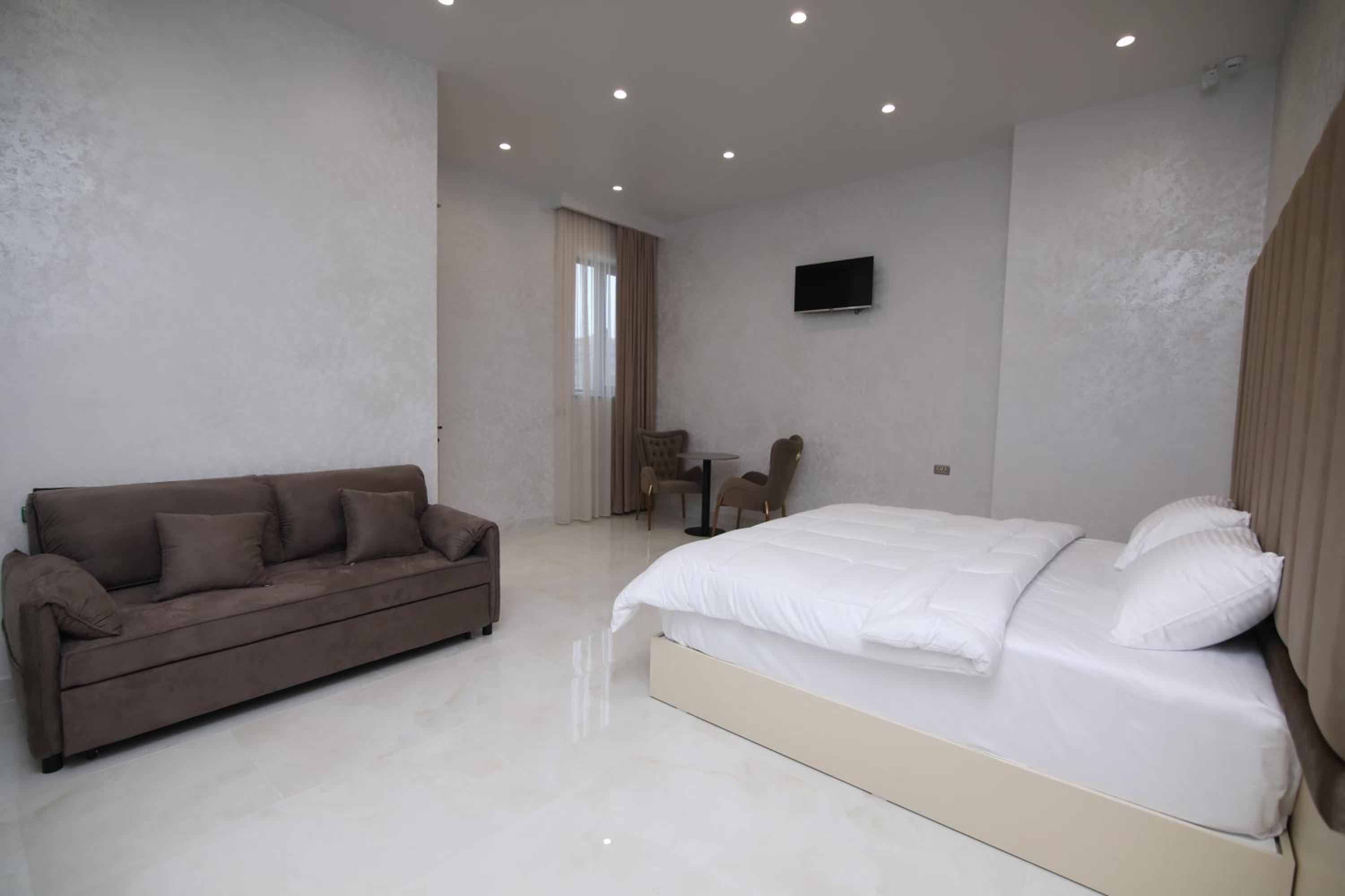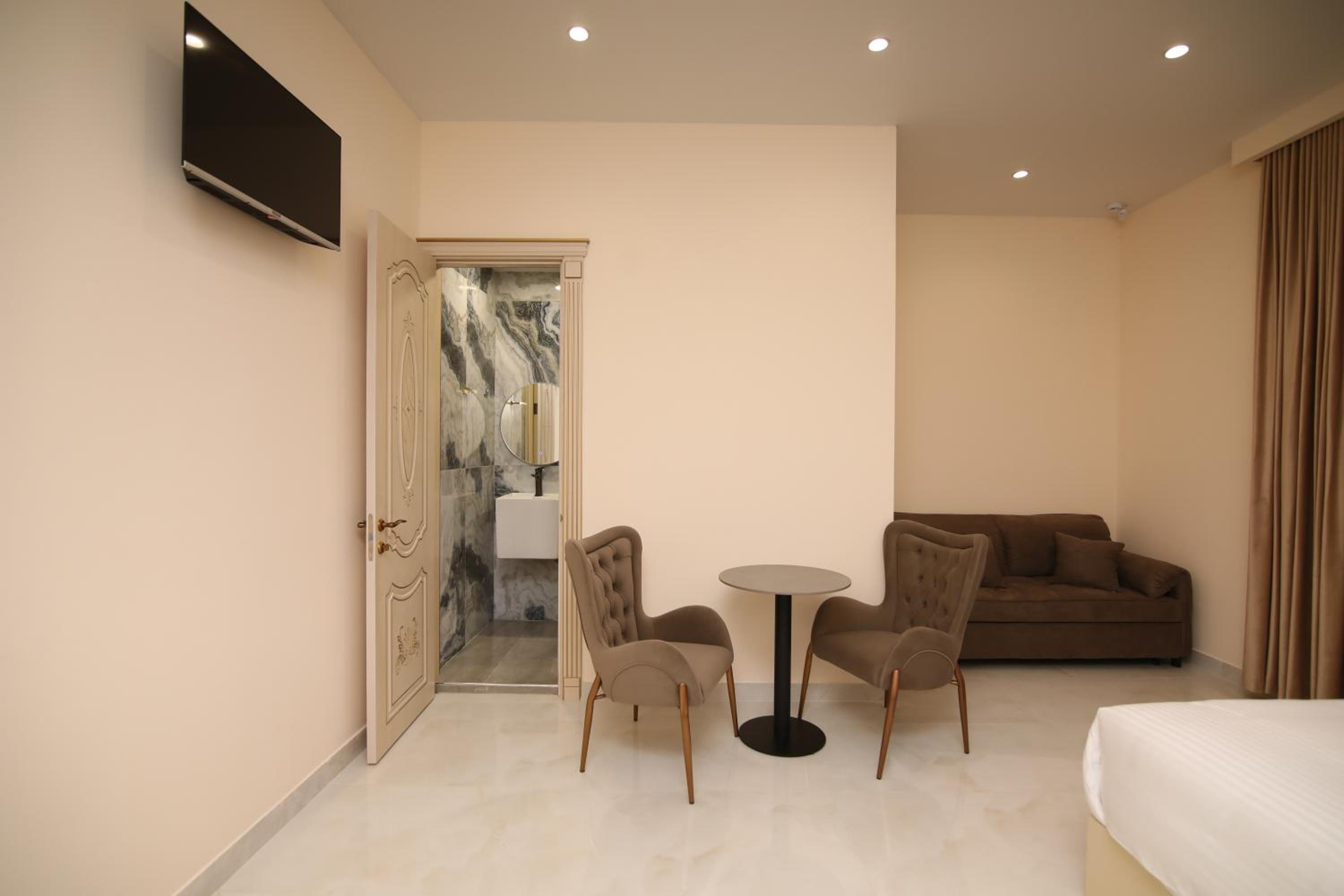 Luxurious Rooms: Each room boasts modern amenities such as a flat-screen TV, desk, and private bathroom.
