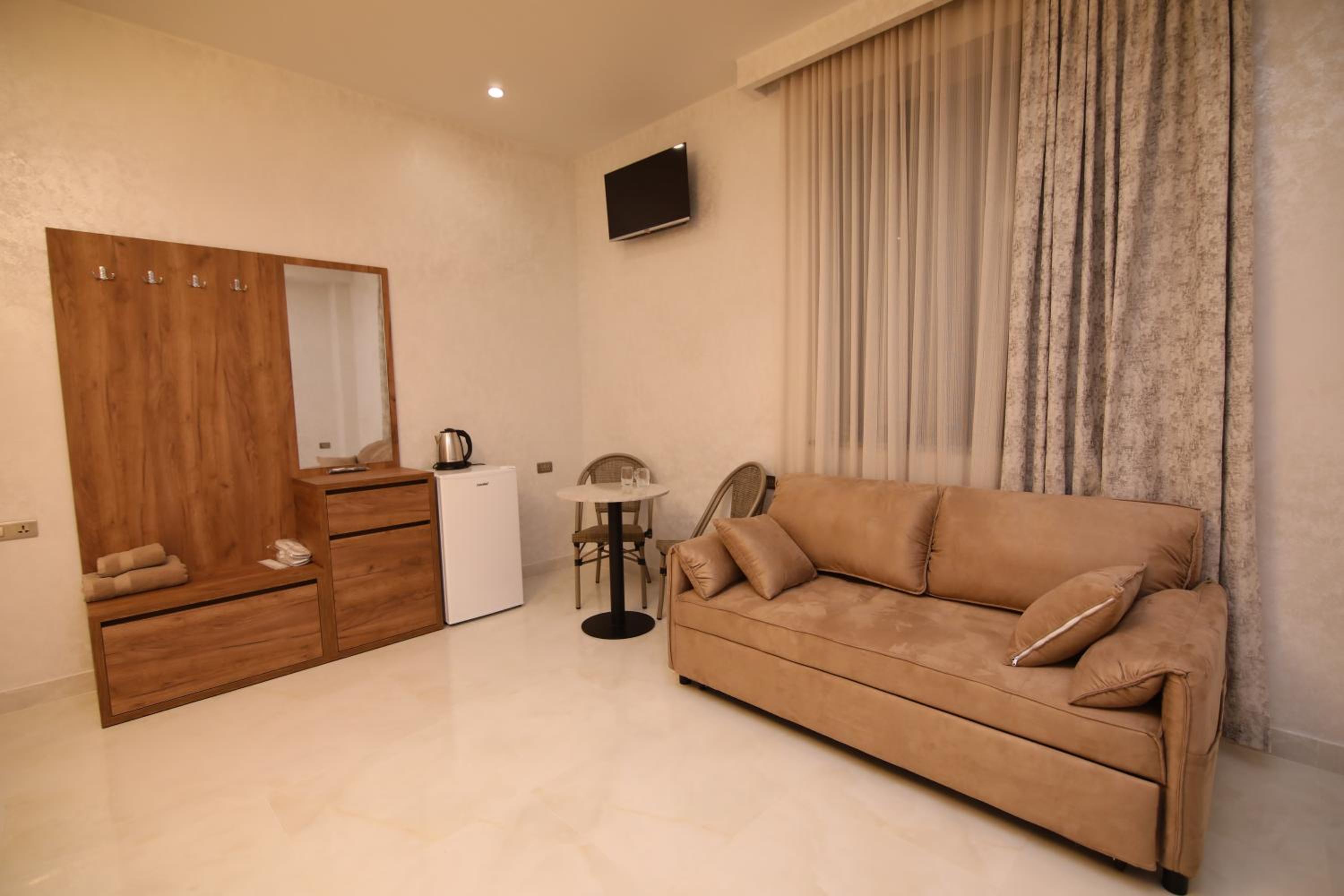 We were warmly welcomed by the hotel manager, who went above and beyond to make our stay special. Upon arrival, he offered us a beer and a glass of wine, and recommended a fantastic restaurant for dinner. The next morning, he treated us to coffee, tea, and a delicious traditional cake. We truly enjoyed everything while listening to his helpful advice on how to reach Yerevan via a scenic route with breathtaking landscapes and interesting sites to visit. Thank you so much for the wonderful hospitality!