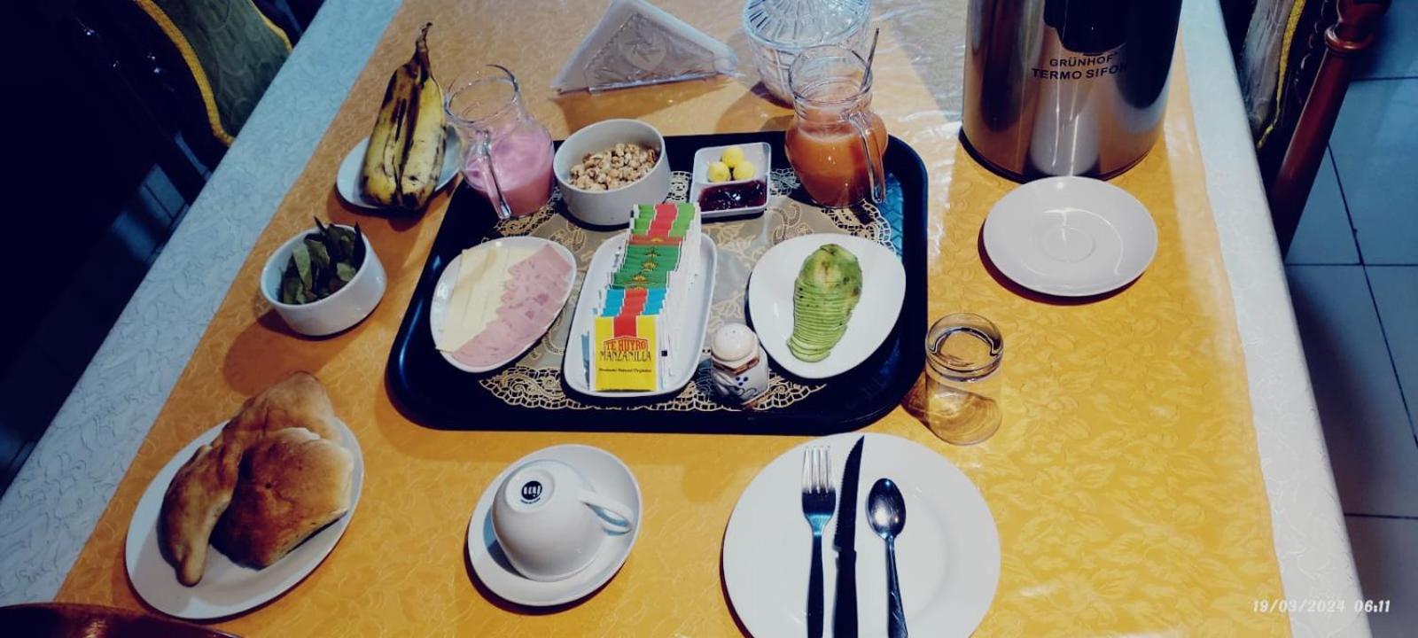 Good location, good value, simple breakfast yogurt bread cheese avocado,