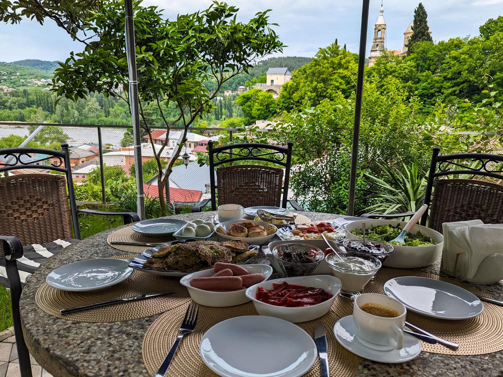we we're welcomed by our host Igor. he was very nice and gave us a tour around the property. the whole property was very nice and clean and has a very homey vibe. our room had a garden view and from the garden you can see the amazing landscape view of the part of kutaisi with bagrati cathedral on top of the mountain. delicious homemade breakfast was served every morning by our exceptional host Palina.