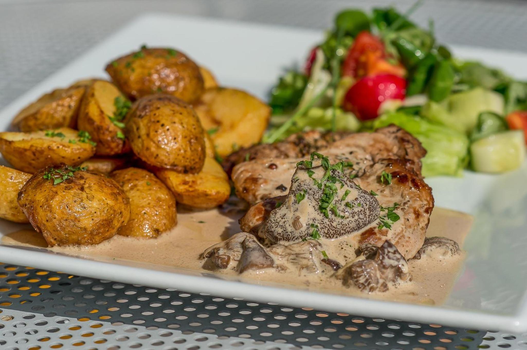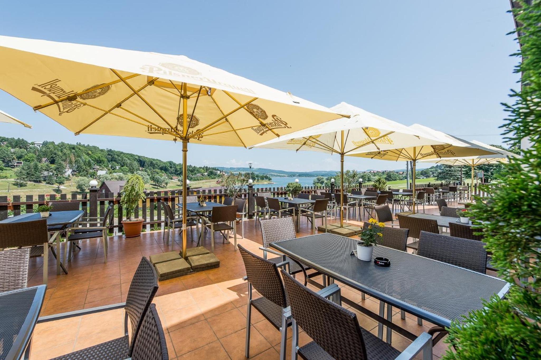 This is a small family-run hotel that was very comfortable. The staff were lovely, helpful and spoke English. The breakfast is very generous and will keep you going for much of the day. In addition to the restaurant, there is a small cafe that sells coffees and ice-cream. The restaurant's menu is simple and not large, but the food is very tasty. They have a big patio where you can eat a meal and have a drink with a great view of the lake. They even have an all-in-one tennis court/football pitch/basketball court. They have a sister restaurant a mile away that serves pizza but we did not get to try it. The lake is just across the street so it's easy to go for a swim. And wifi was good. I would definitely stay here again.