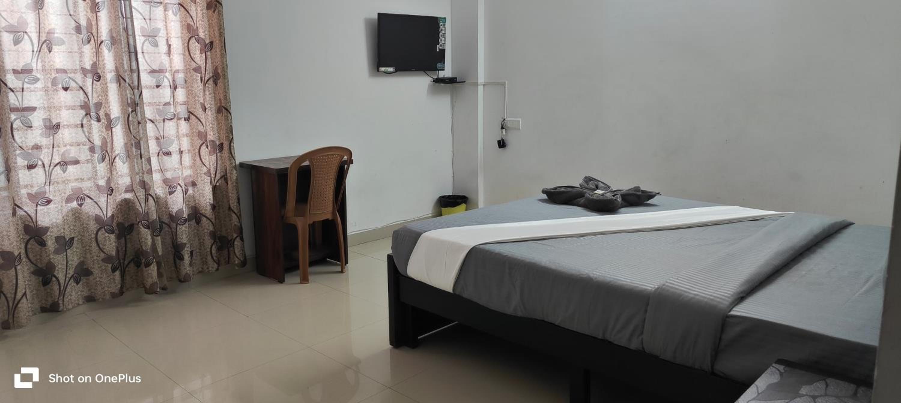 The room was impeccably clean.Toilet super clean. New Ac New geyser. No towel rod in washroom. No cloth hanger / wardrobe in the room. Budget Hotel . Pillow covers were dirty. The quilt, Pillows was black in color which is not welcome. Very close to D mart Ramamurthy Nagar. Some good hotels are located nearby. Transport is not a problem. Located @ 4.5kms from krishnarajapuram Railway station. Hassle free checkin thru booking.com. Was Charged 1156 for single ac occupancy. No room service. No restaurant. Overall good Hotel.