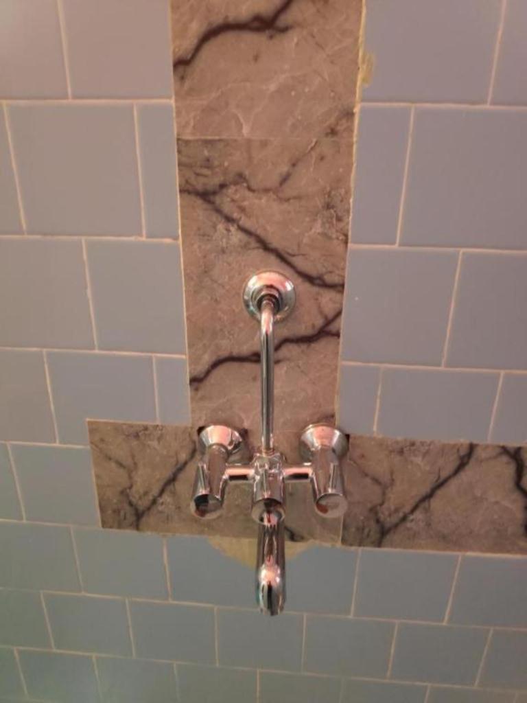 Die Badezimmertür ging nur einen Spalt auf weil dahinter das Waschbecken hängt.