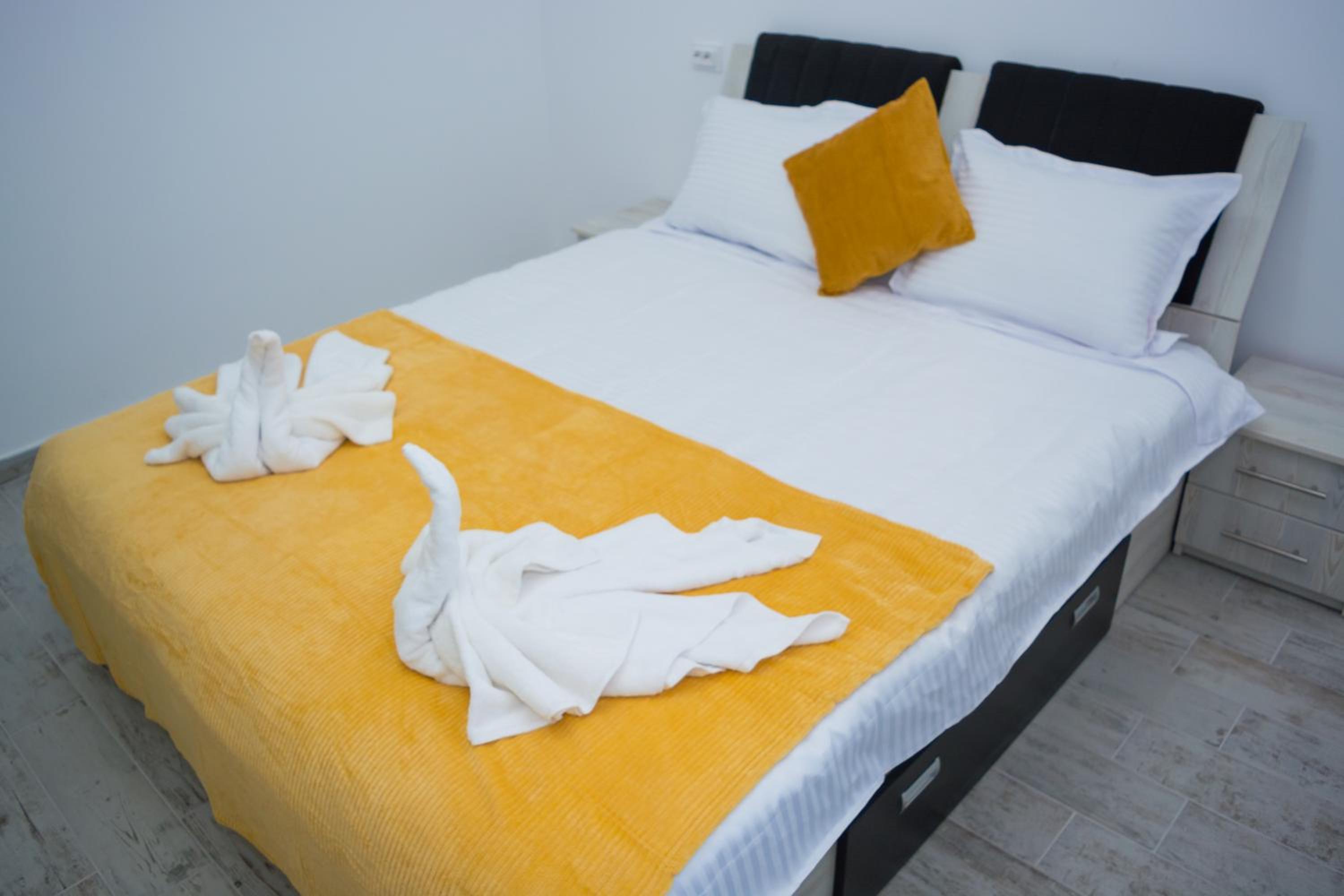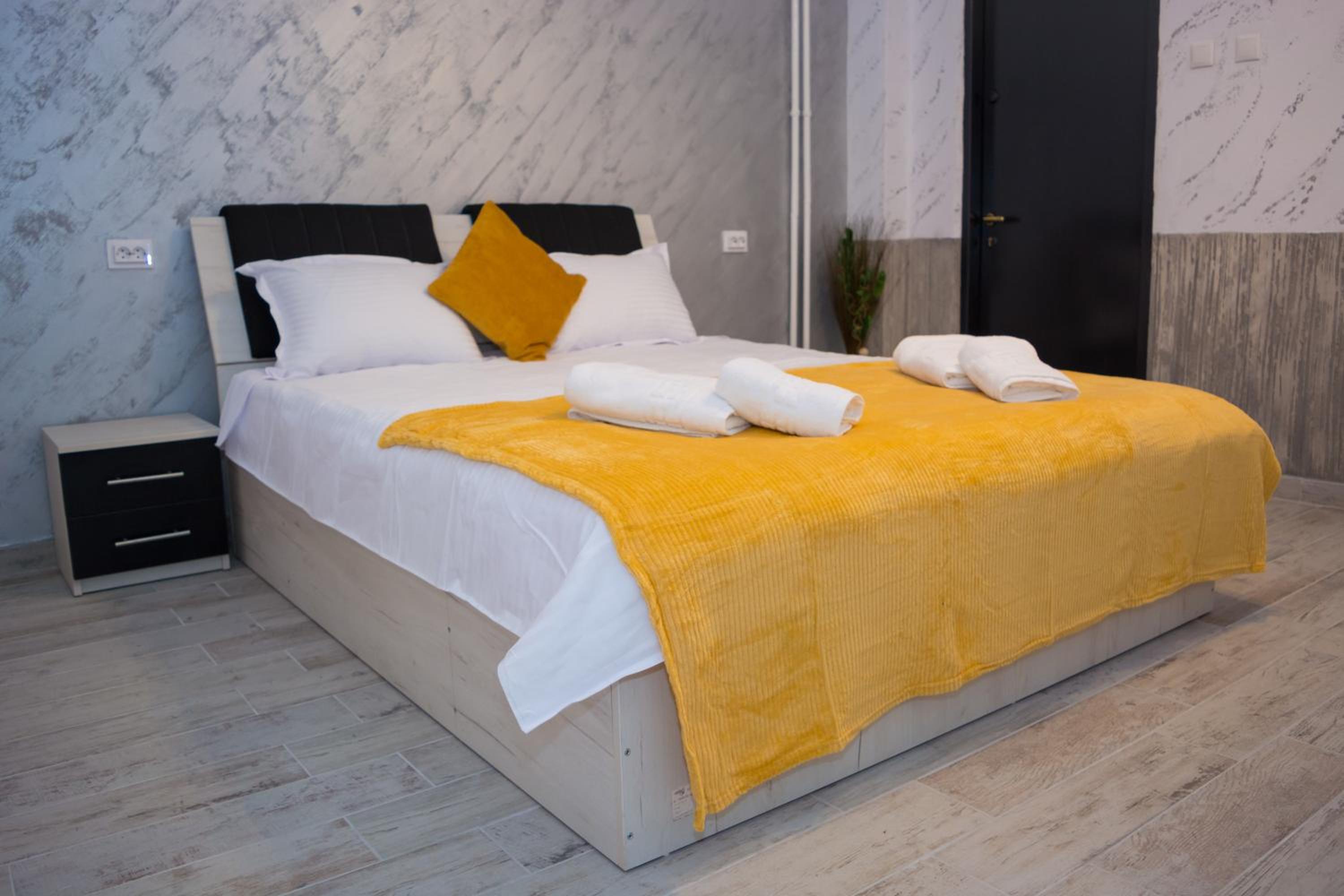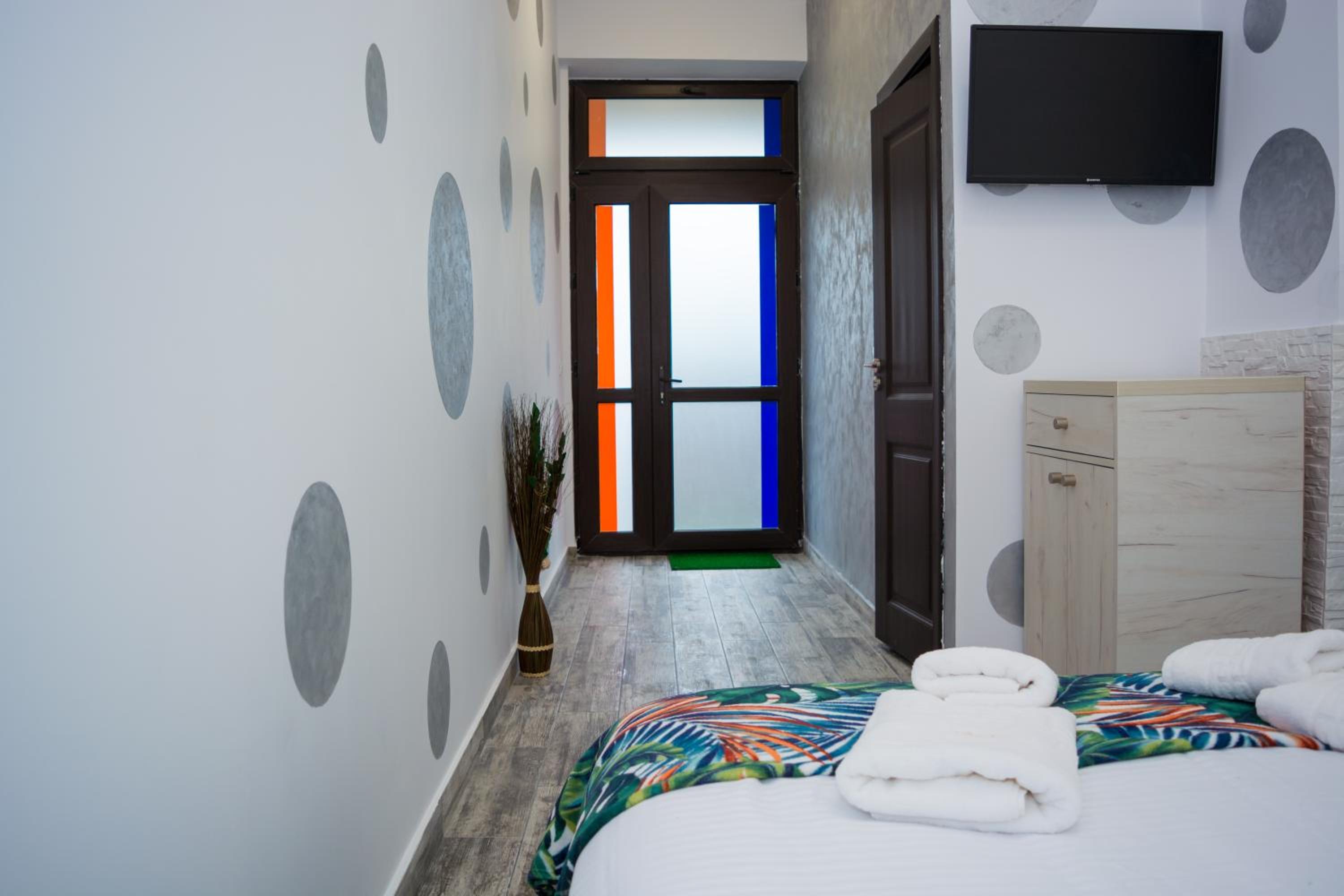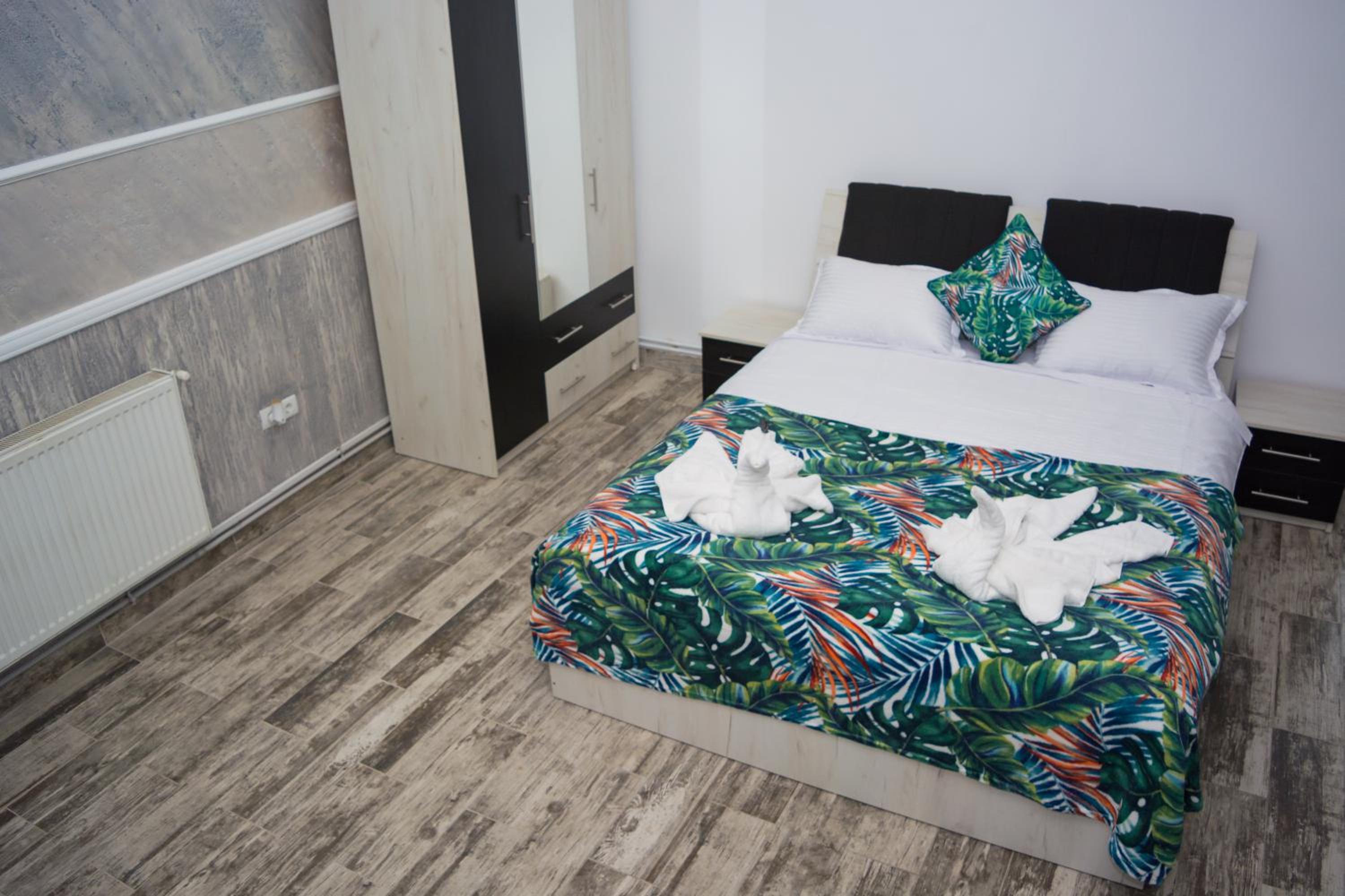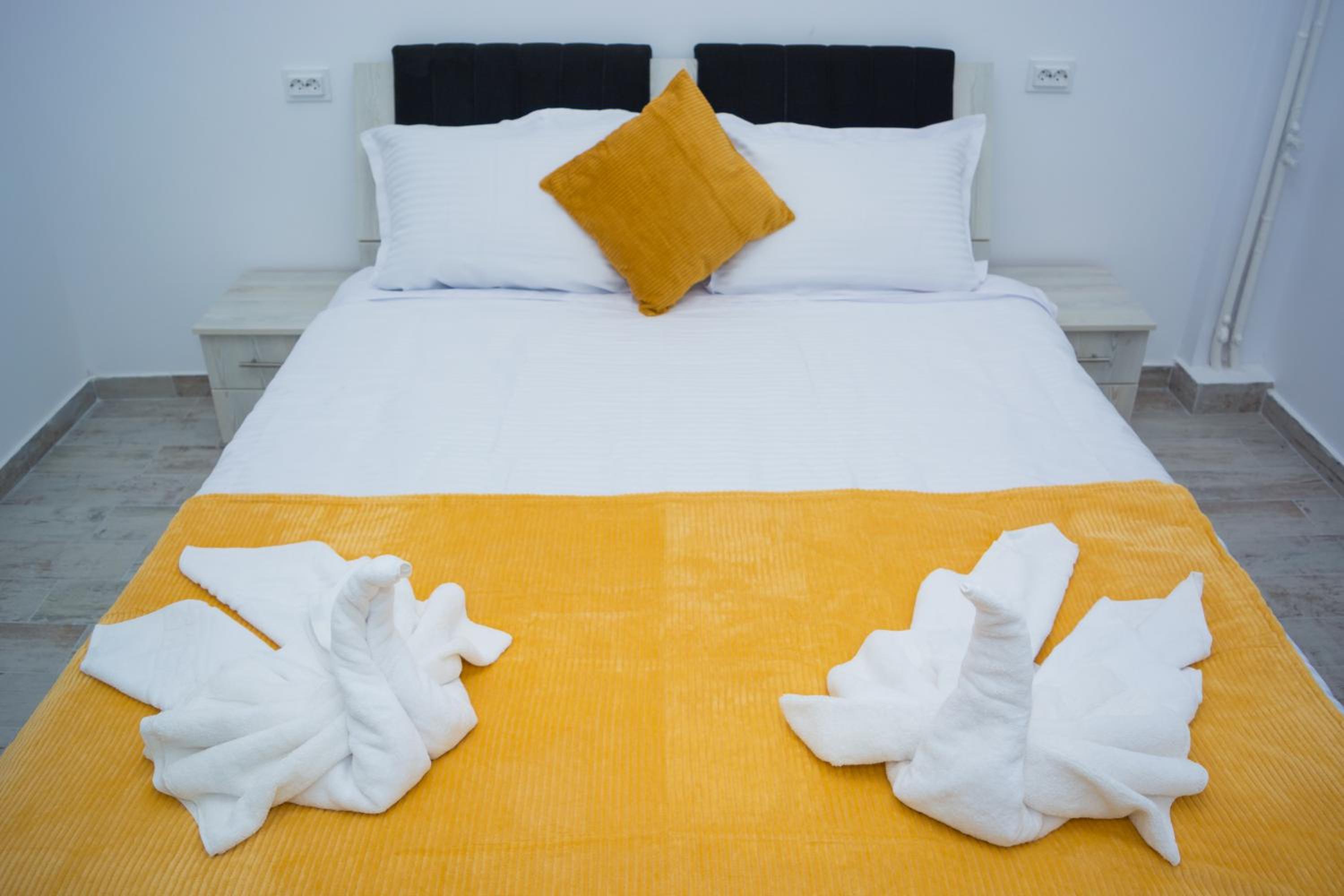 Am ajuns la locatie, unde am fost intampinati de femeia care facea curat in camere, nimeni de la firmă. Cu dănșii am stabilit telefonic să ne întâlnim cu domnisoara de la firma de curatenie. Ne-au fost prezentate doua camere, nr. 4 și nr. 5, singurele camere rămase libere la momentul ocupării. Nici una nu aveau aer condiționat, ca cele de la fata blocului, exact cele folosite pentru prezentare pe site. Asa ca, atenție, nu va lăsați păcăliți, nu toate camerele au aer conditionat. Prima, (camera 4), avea o fereastra foarte mica, camera mai mica decat cea de la nr.5, de 30/30 cm, abia daca se vedea lumina de zi in camera. A doua cameră avea fereastra de 45/45 cm plus usa de acces de la cameră, pe care intrai direct din parcarea din spatele blocului. Ambele cu acces direct din spatele blocului, din pacare. Ni s-a spus că putem parca oriunde, dar nu a fost asa. Am fost dați la o parte de un vecin, care pretindea ca e locul lui de parcare și foarte ofuscat ne-a cerut sa eliberam locul. Am parcat în alt loc, sperând să nu fim iar dați la o parte. Nu s-a întâmplat, spre norocul nostru.
