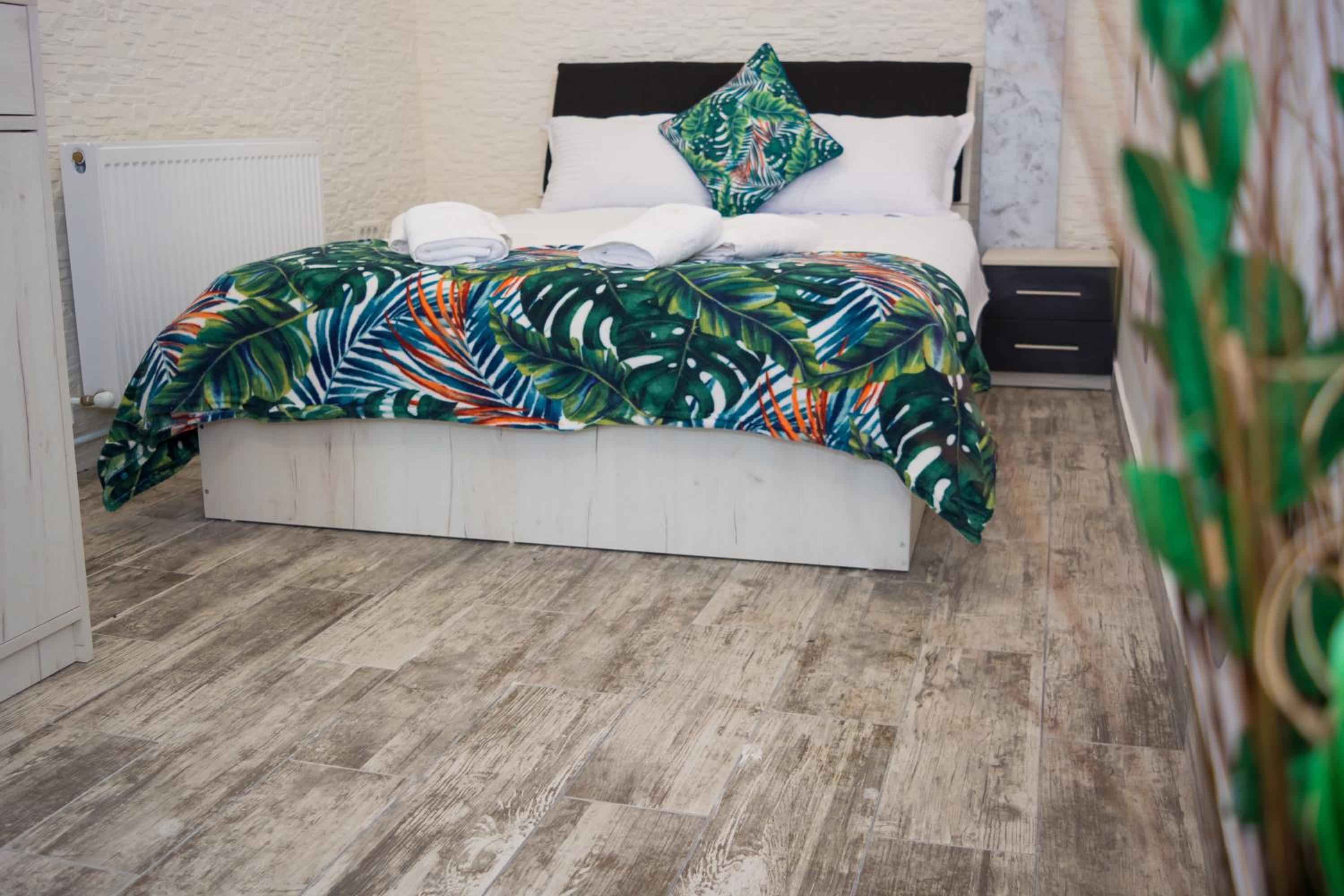 Brudna podłoga, nieodkurzona. Moje skarpetki zebrały cały brud z podłogi. Coś rozsypane na podłodze. Po poprzednich gościach pod łóżkiem nawet został niesprzątnięty smoczek dziecięcy. Pościel i ręcznik poplamione żółtymi plamami lub ciemnymi i niedoprane. Spaliśmy pod własnymi kocami.