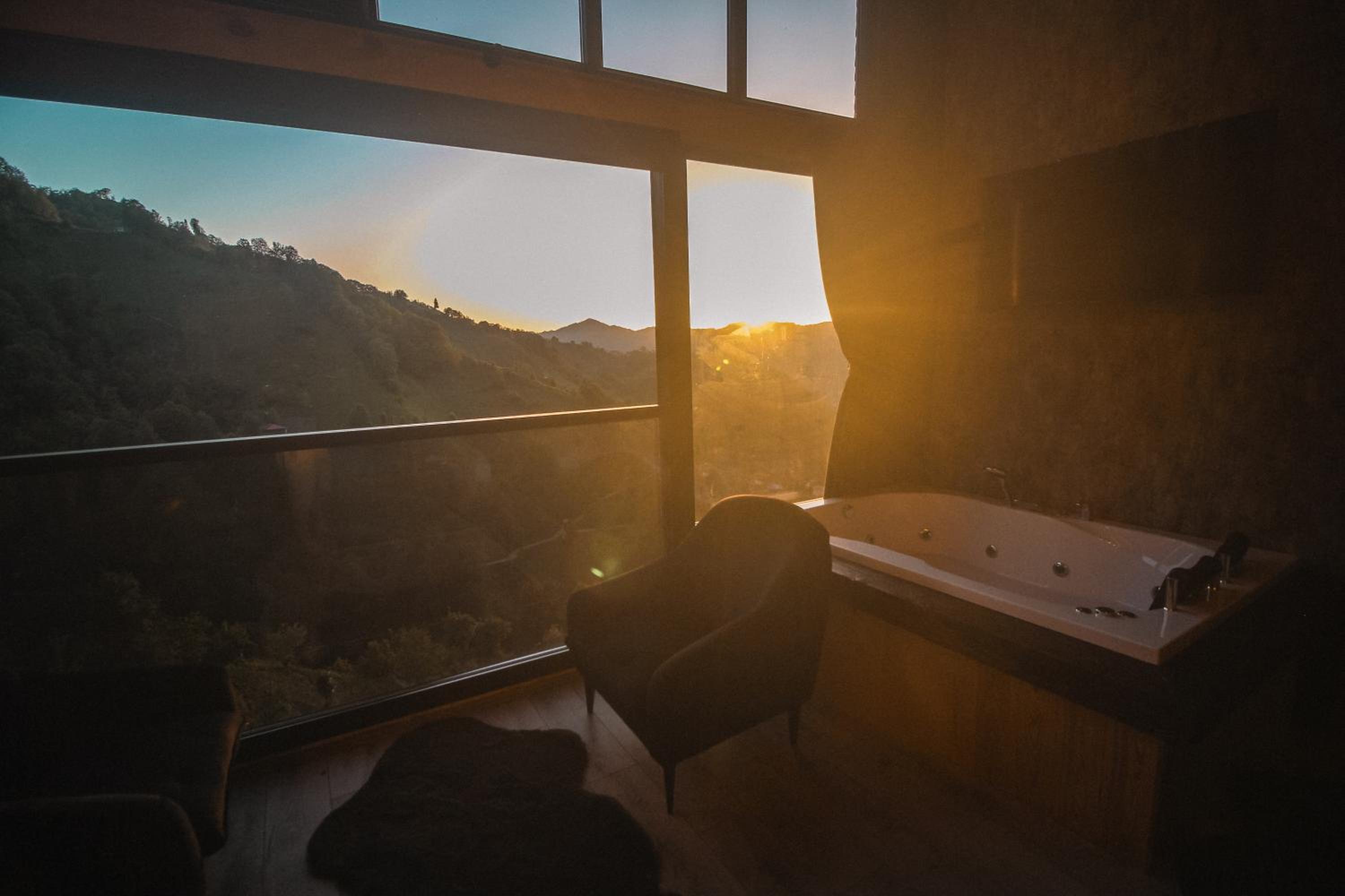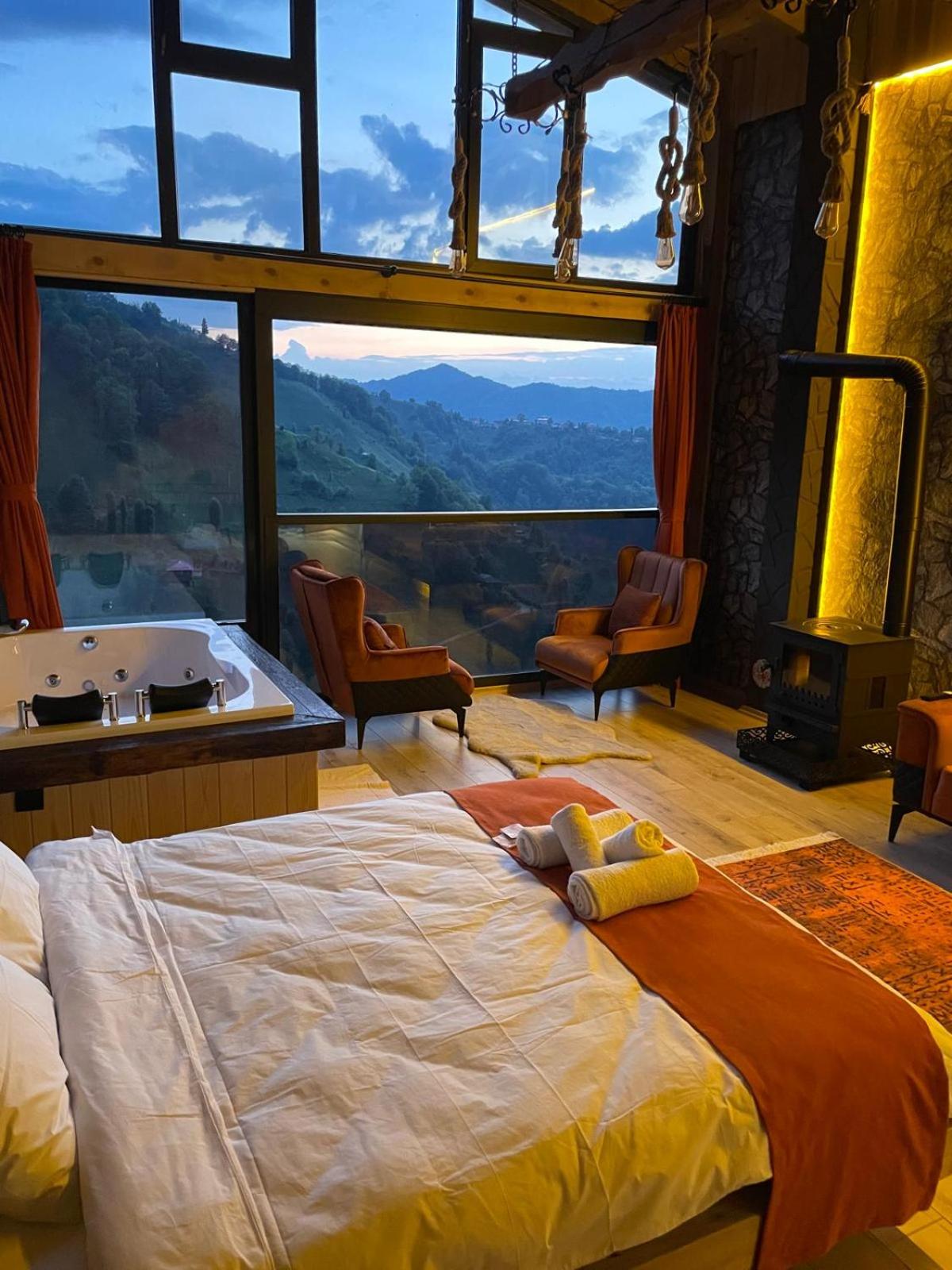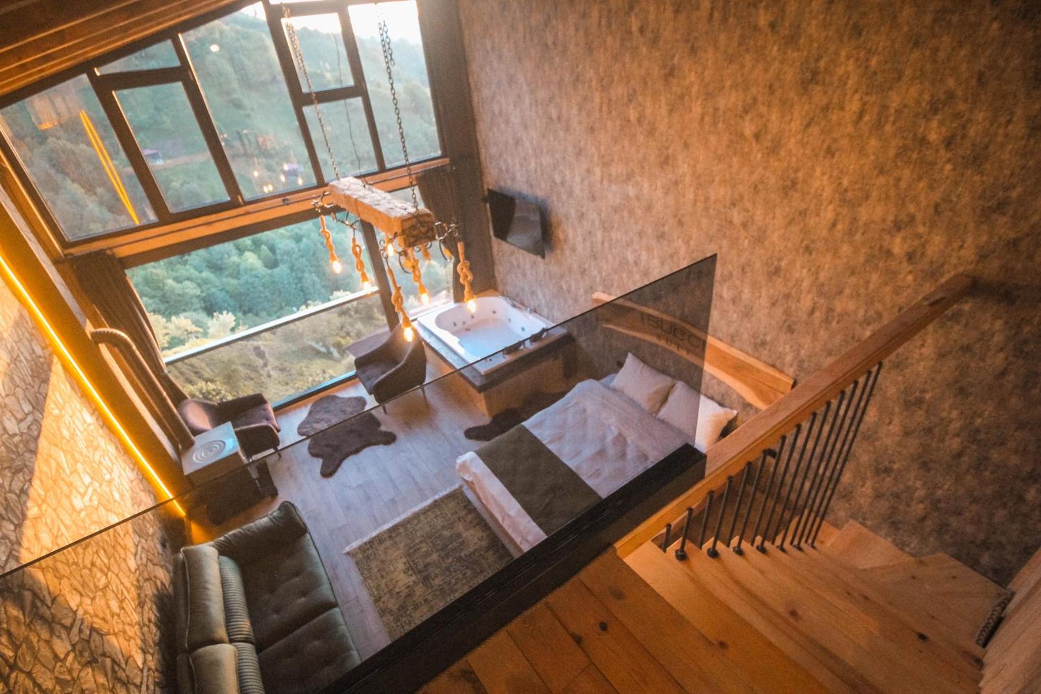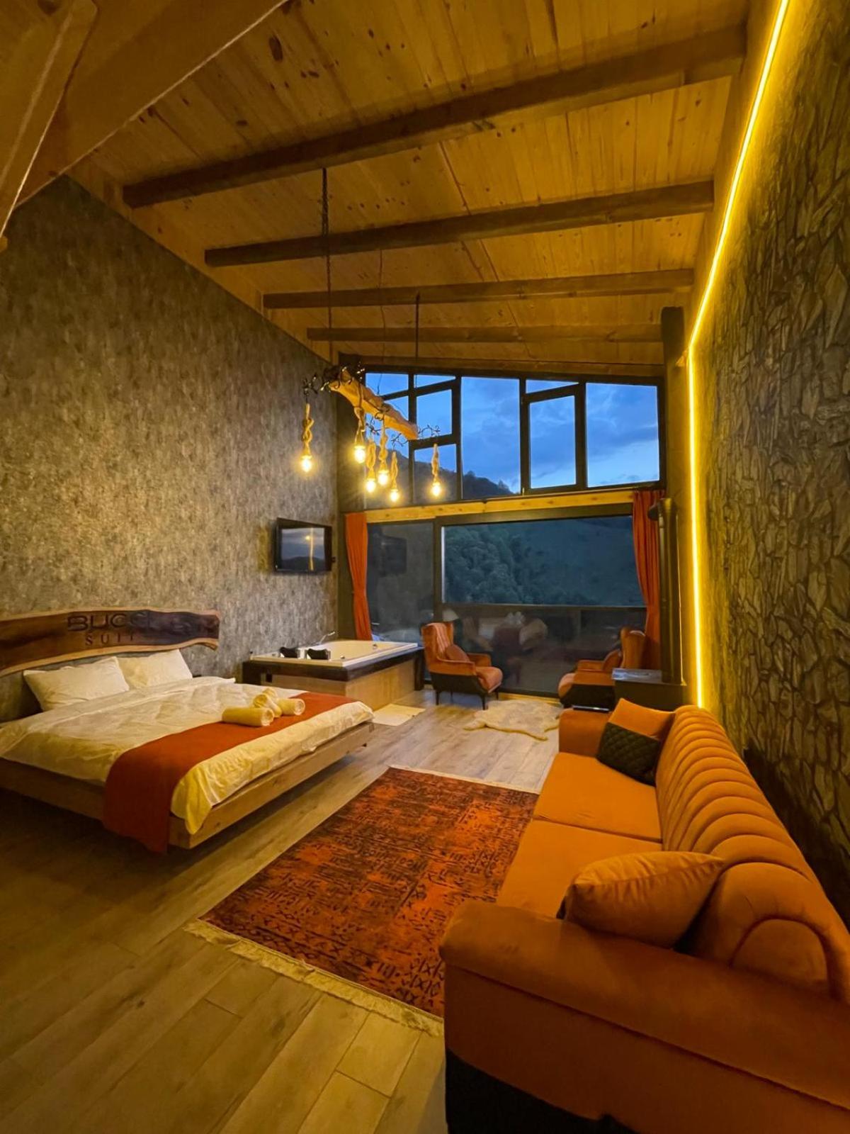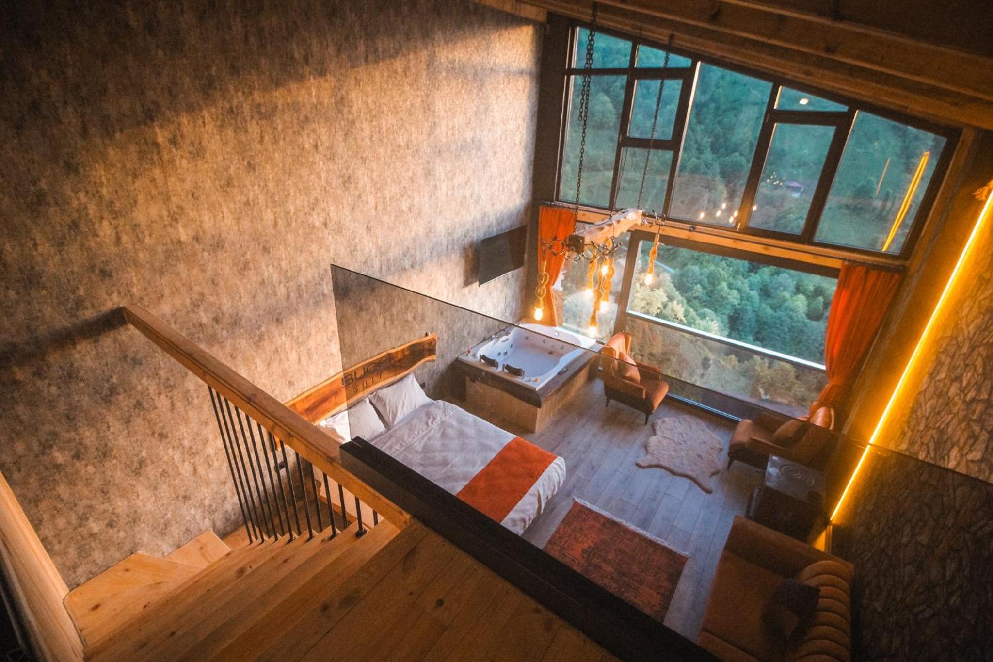 Indulge in relaxation at Bucci Suit with a spa bath, fireplace, and stunning mountain views. Unwind at the on-site bar or enjoy the garden and shared lounge areas. Book now for a tranquil getaway.