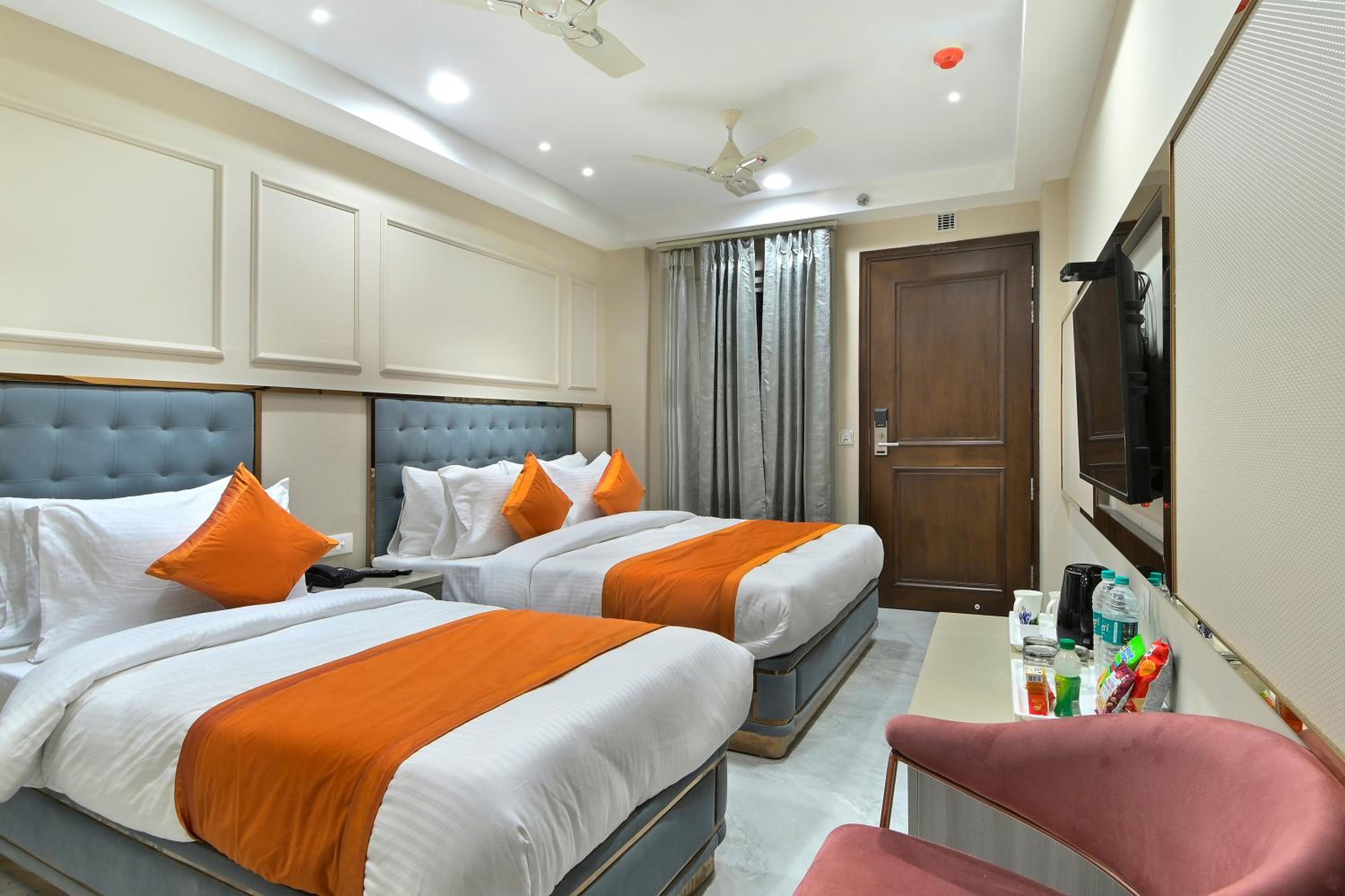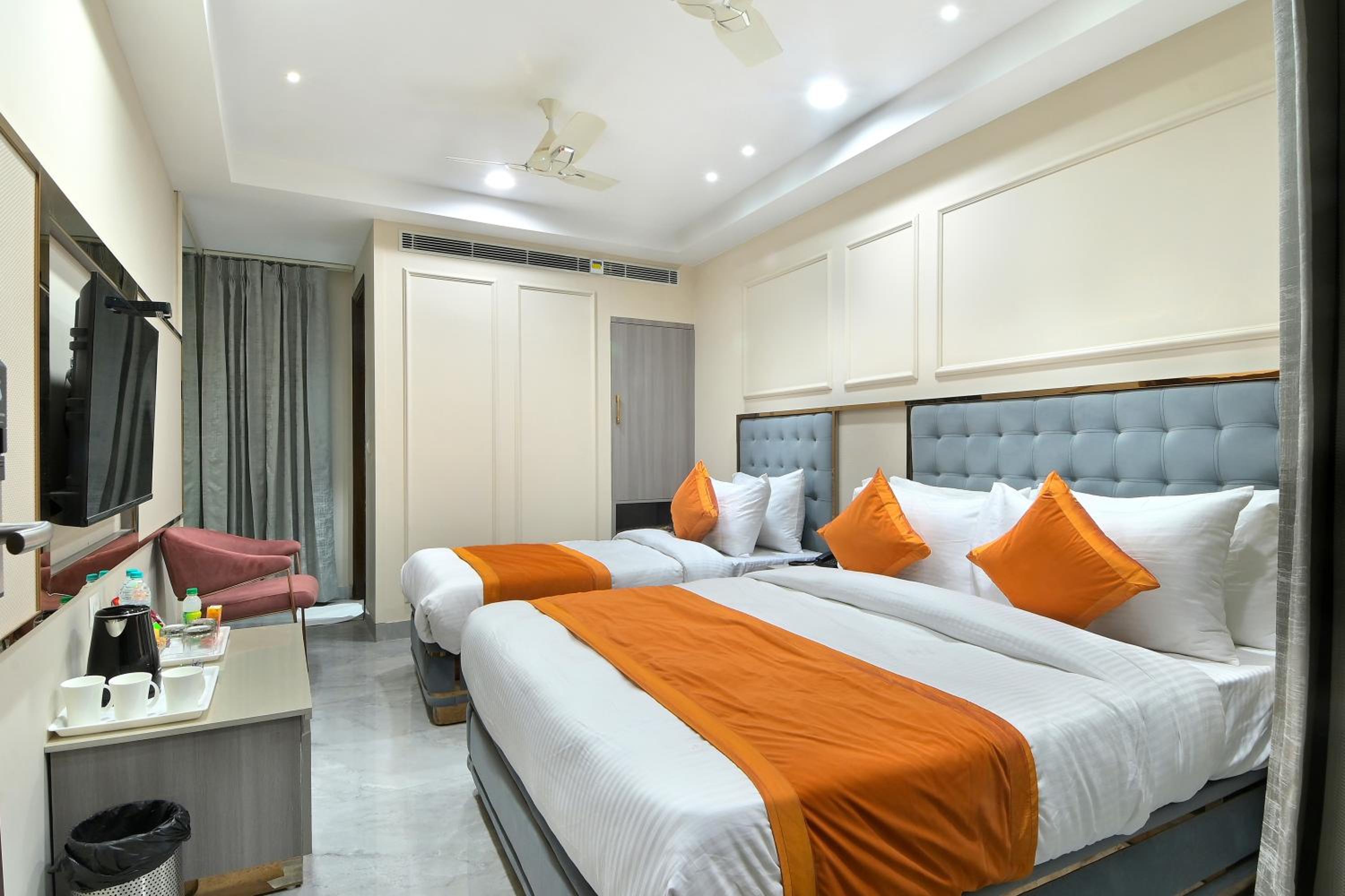 Experience comfort and convenience at Hotel Sapphire House Paharganj. With a central location, modern amenities, and convenient services, your stay in New Delhi will be unforgettable. Enjoy a garden, restaurant, and bar on-site, along with room service and a 24-hour front desk. Relax in air-conditioned rooms with city views, private bathrooms, and flat-screen TVs. Indulge in free toiletries and a CD player for entertainment. Explore nearby attractions such as Gurudwara Bangla Sahib and Jantar Mantar. Whether you're traveling for business or leisure, Hotel Sapphire House Paharganj is the ideal choice for your stay in New Delhi.