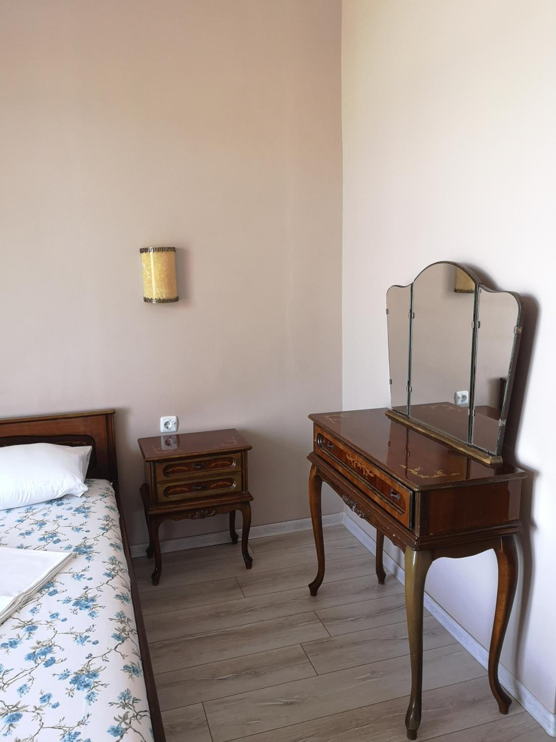 Удобное местоположение отеля, рядом парк где вечером проводили бесплатные концерты, до моря пять минут, парковка во дворе отеля, номер достаточно просторный и чистый, есть общая кухня на этаже, хозяин организовал экскурсию дешевле чем у других, все понравилось👍