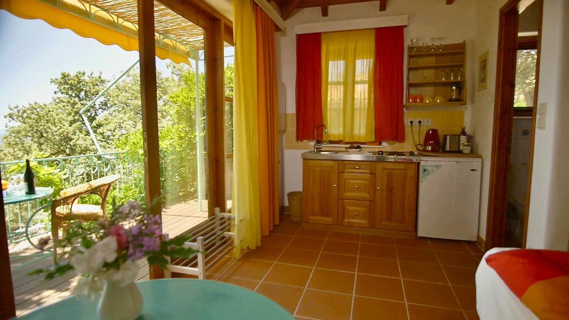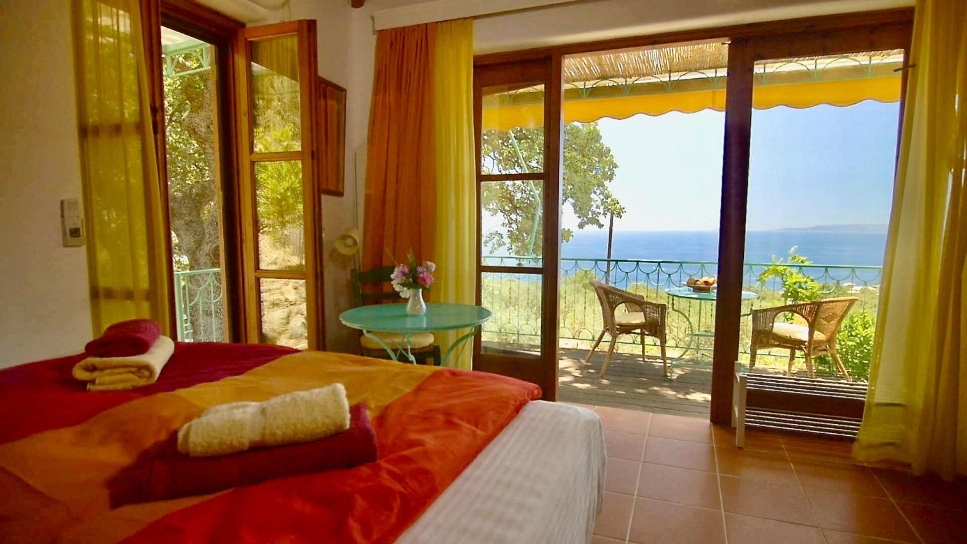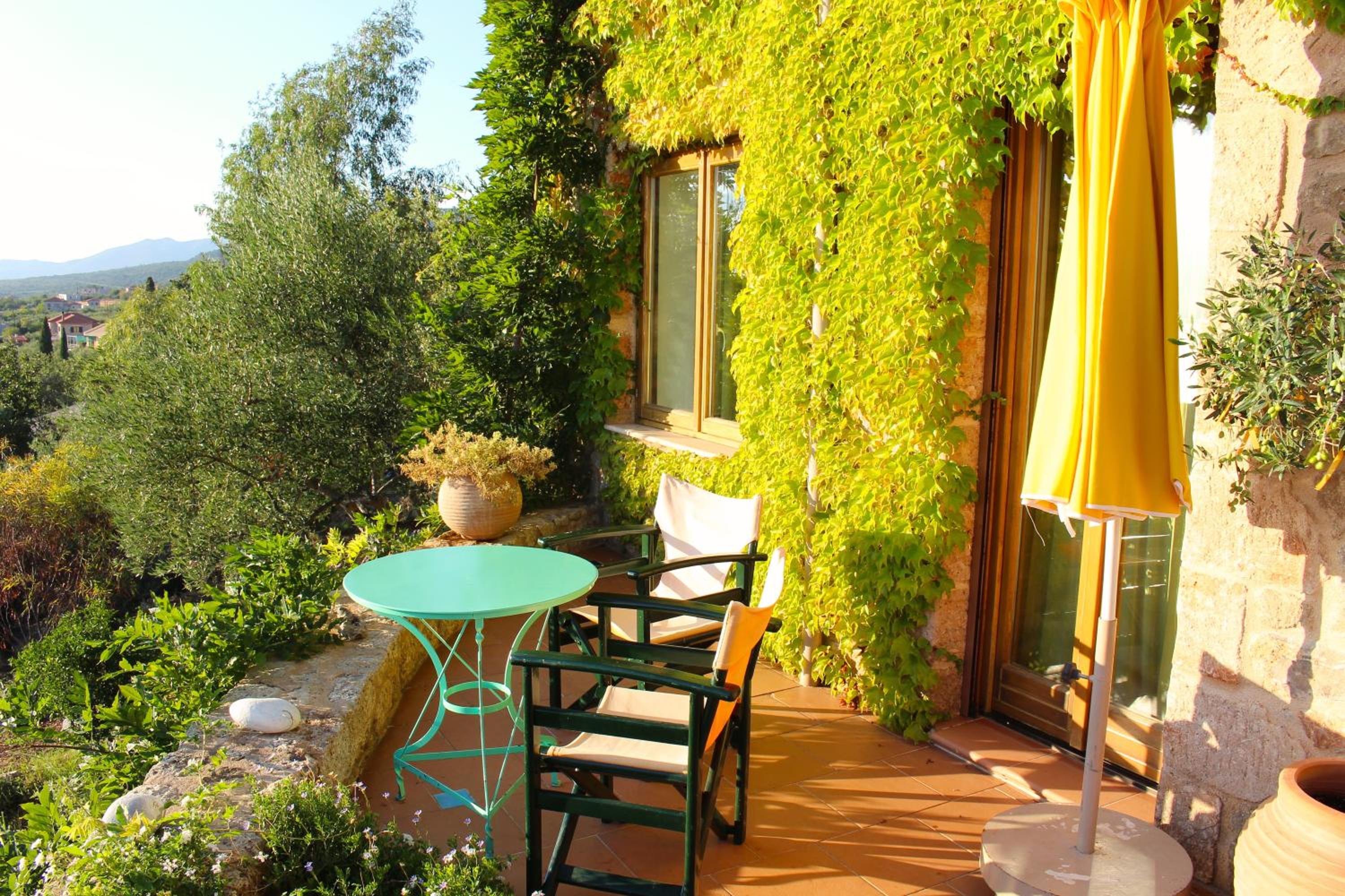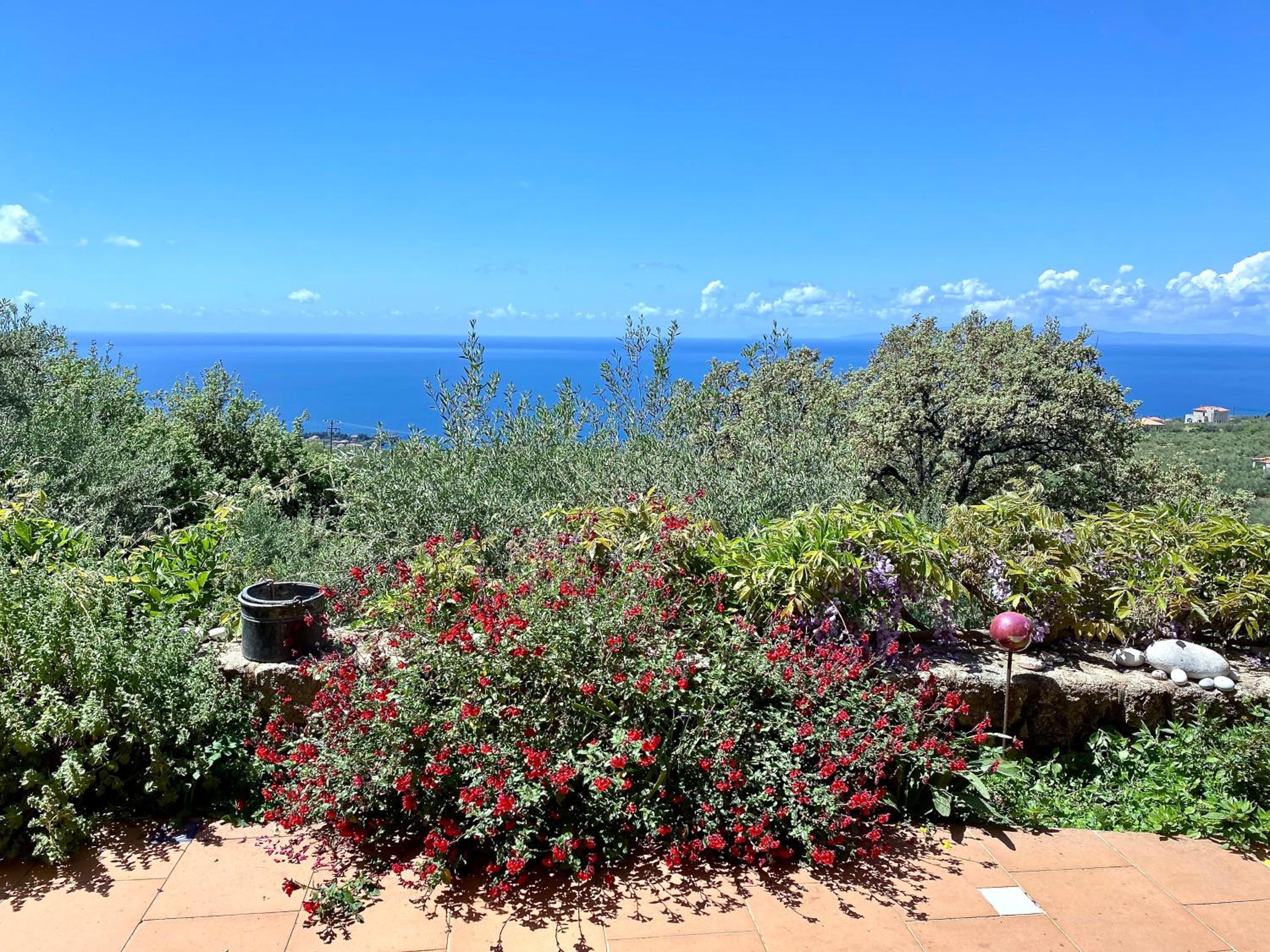 Escape to Bio Guesthouse Mani Sonnenlink and immerse yourself in the tranquility of the garden, terrace, and captivating sea views.