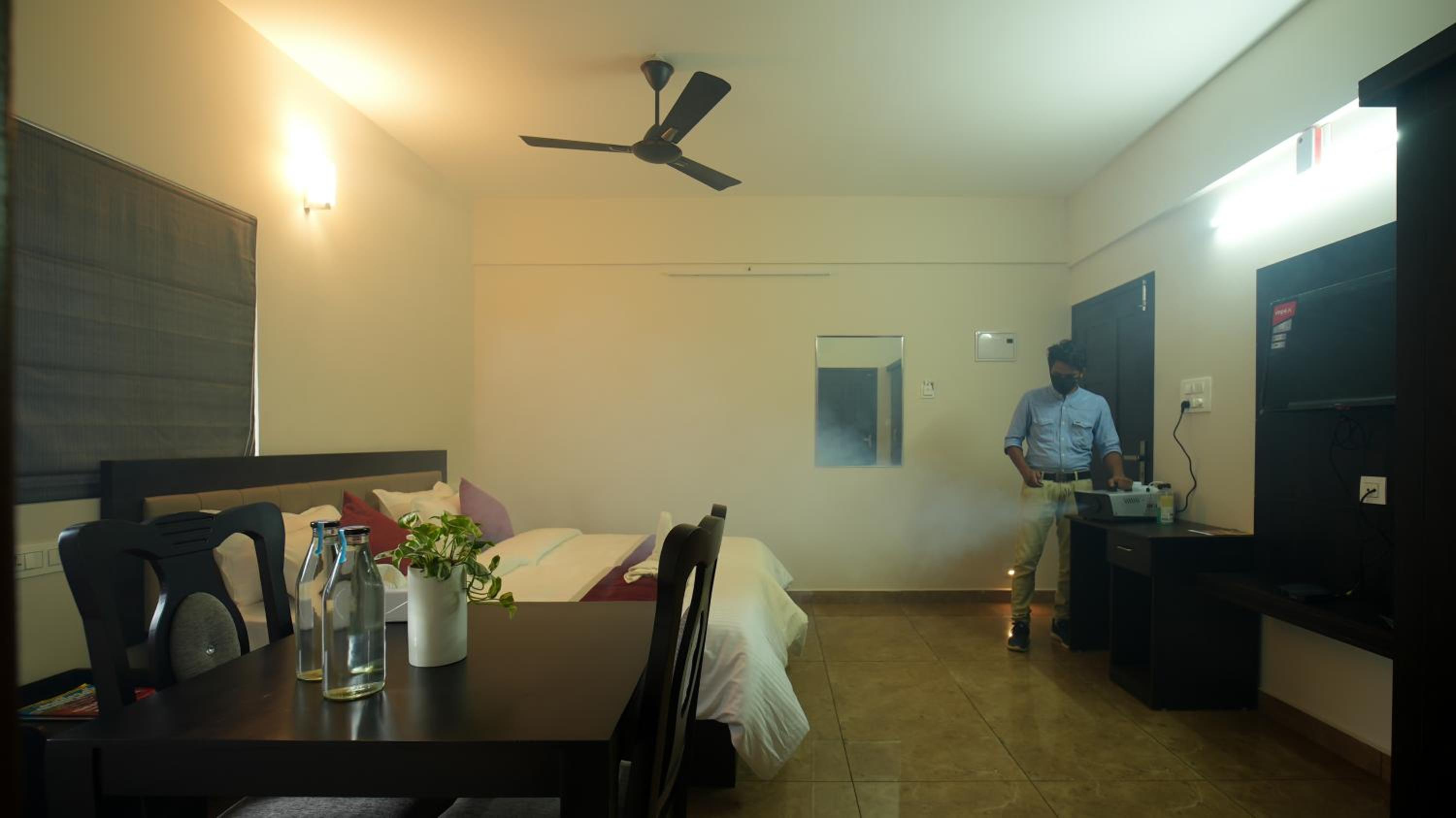 We have found not cleaned room. Hair on the floor with blood stains. Felt so bad. Electricity was going in between it disturbed sleep. Staff was questioning us about they found the room was not cleaned And they asking as about it. And 500ml of oil was in the floor and fell down in it. Room space was good. And at night they are locking the front door when we asked about it they mentioned safety reason. So i Felt like the area also not safe to stay.had bad experience totally