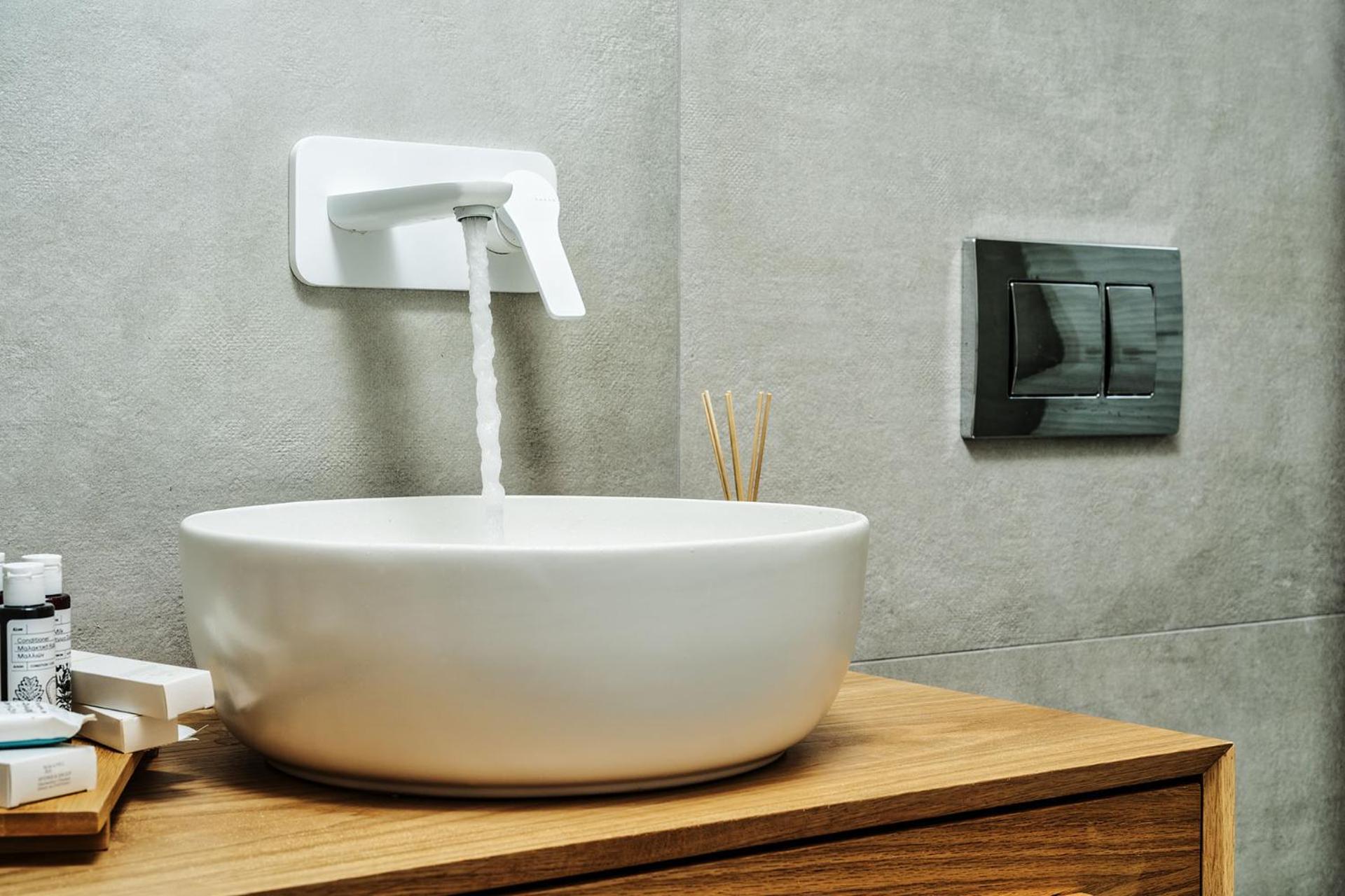 Hotel kamer lavabo was van hout