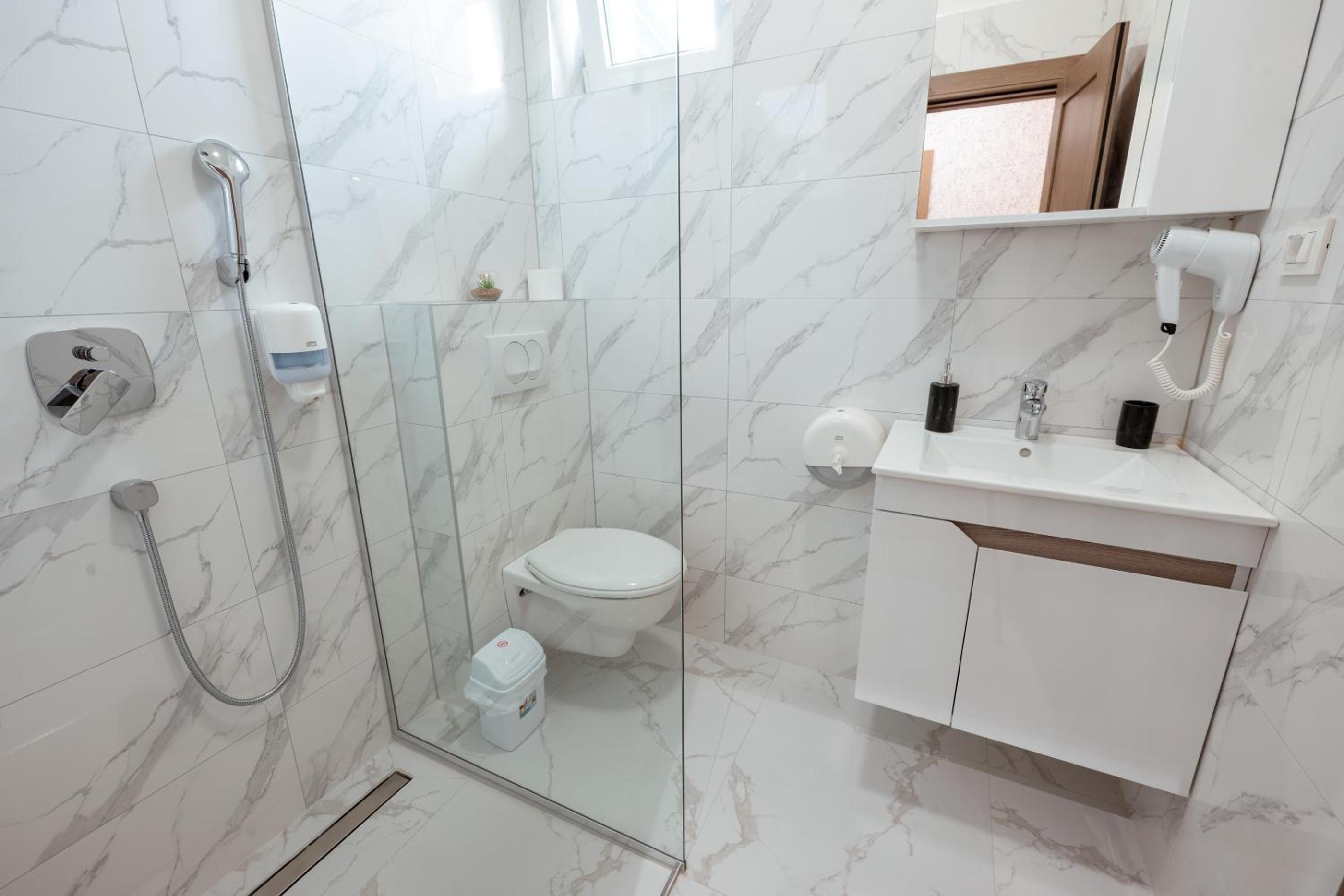 Sve je odlično i jako čisto, novija zgrada.