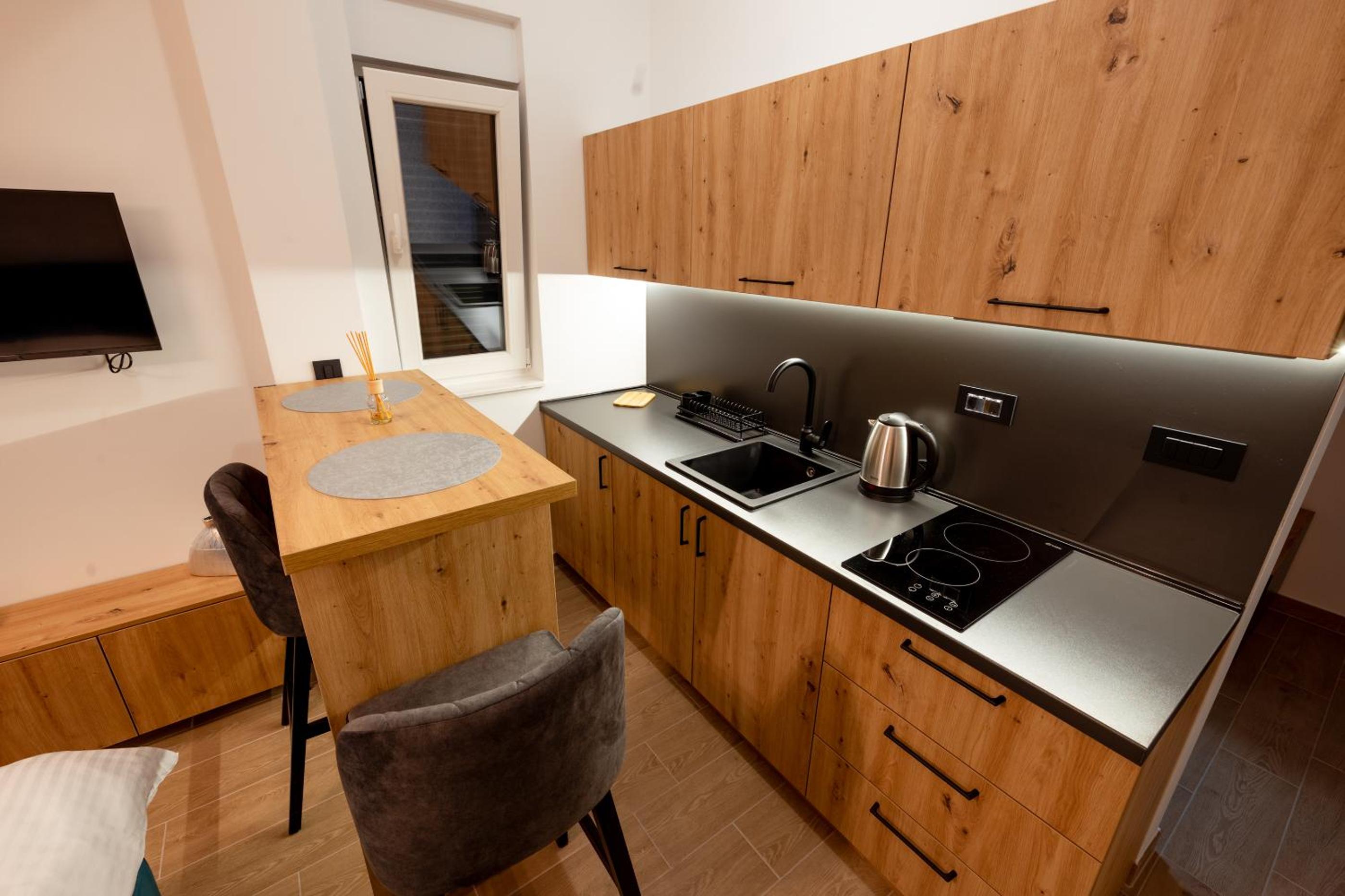 Ako ostajete duže i hteli bi da kuvate, kuhinja nije preterano opremljena pa nećete bas imati previše izbora.