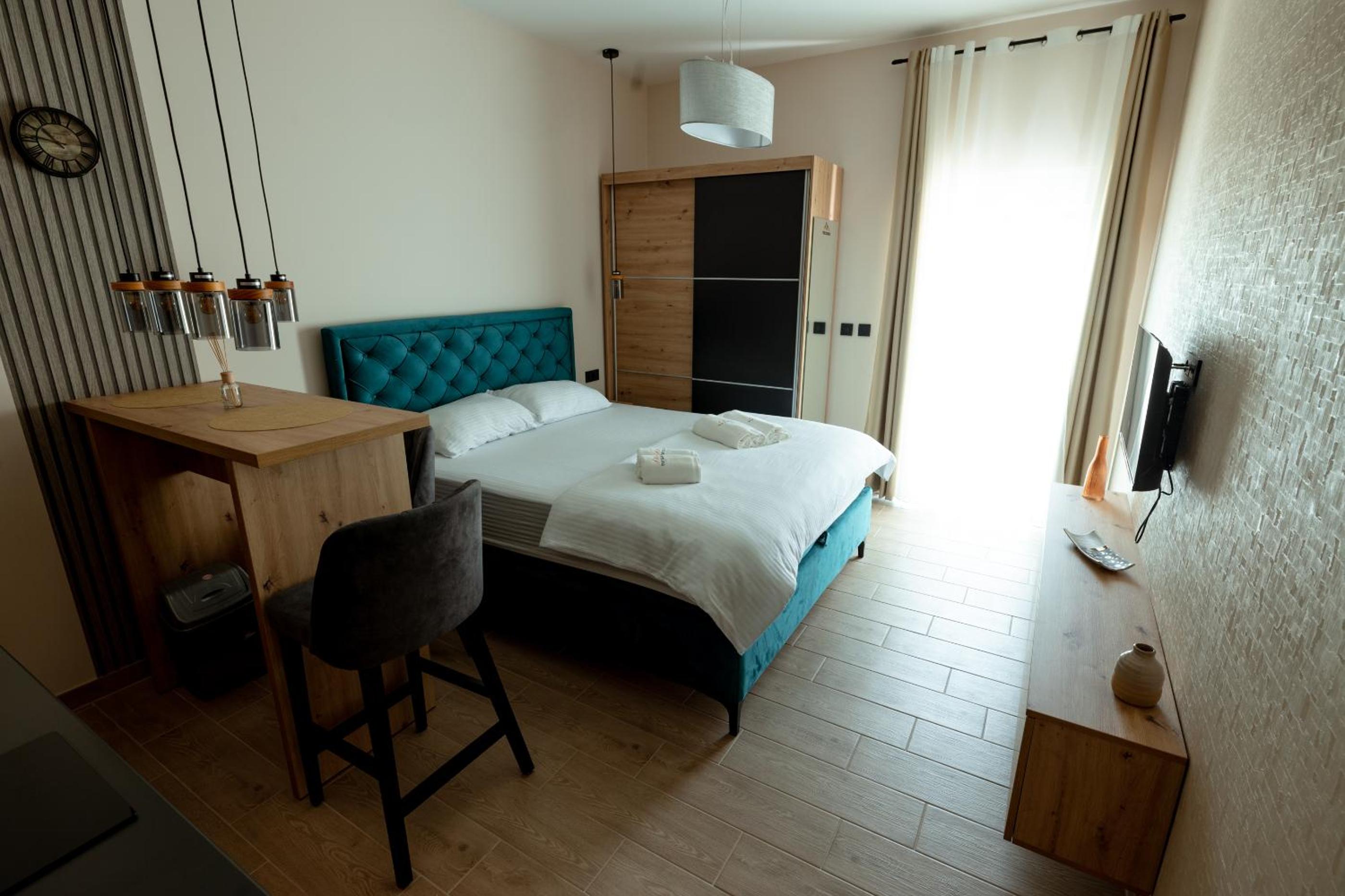 The apartments are new, modern, clean. Nice area.