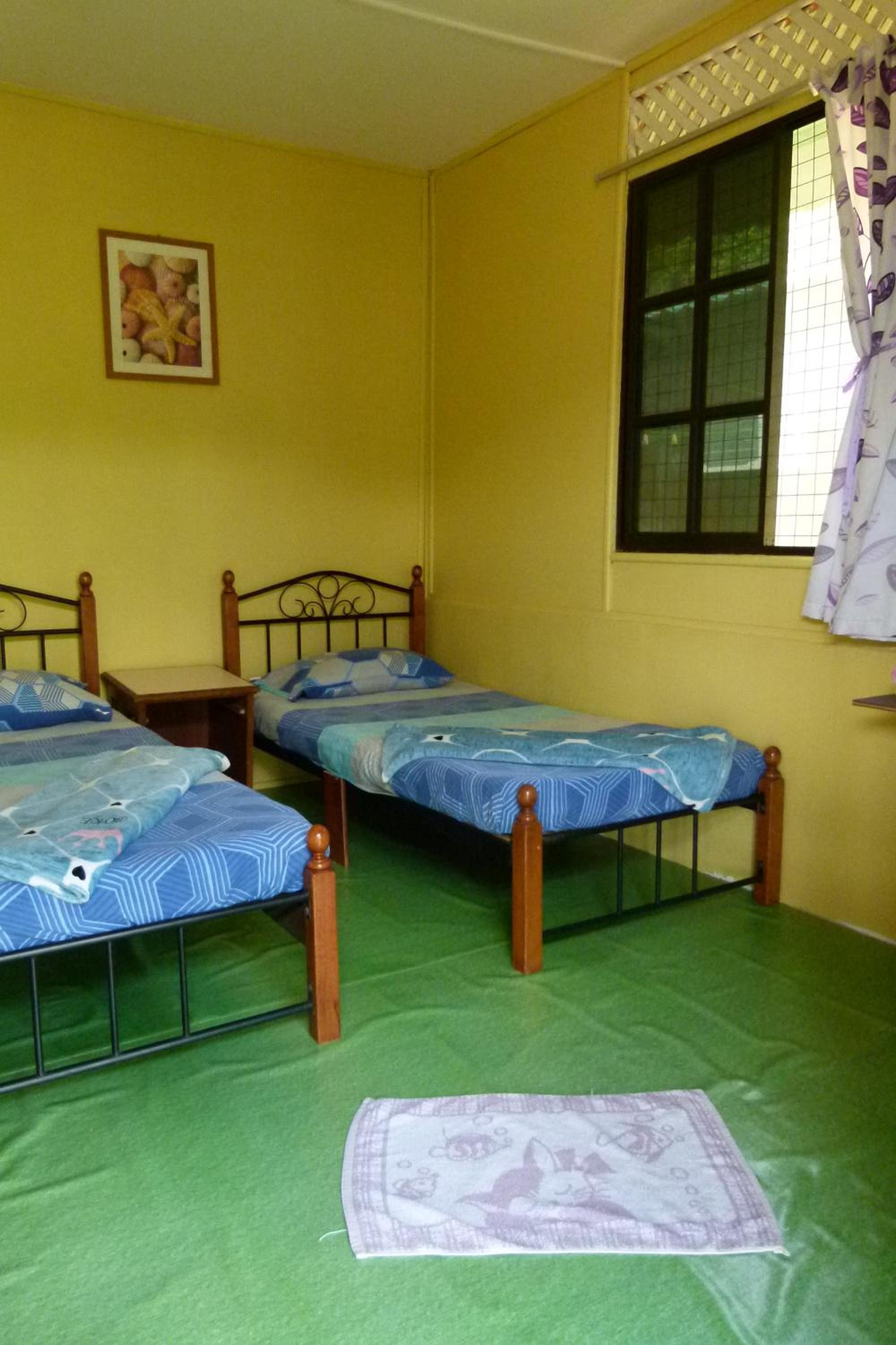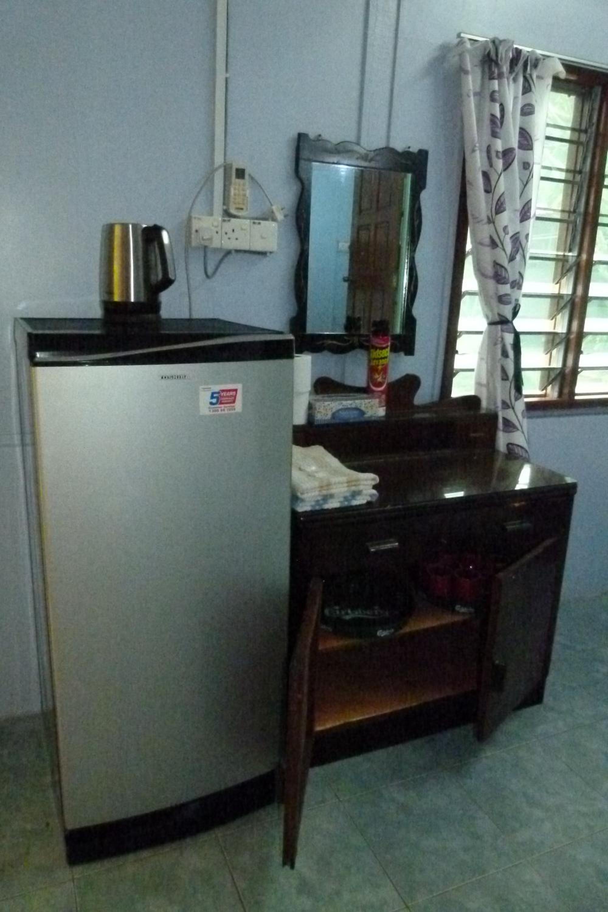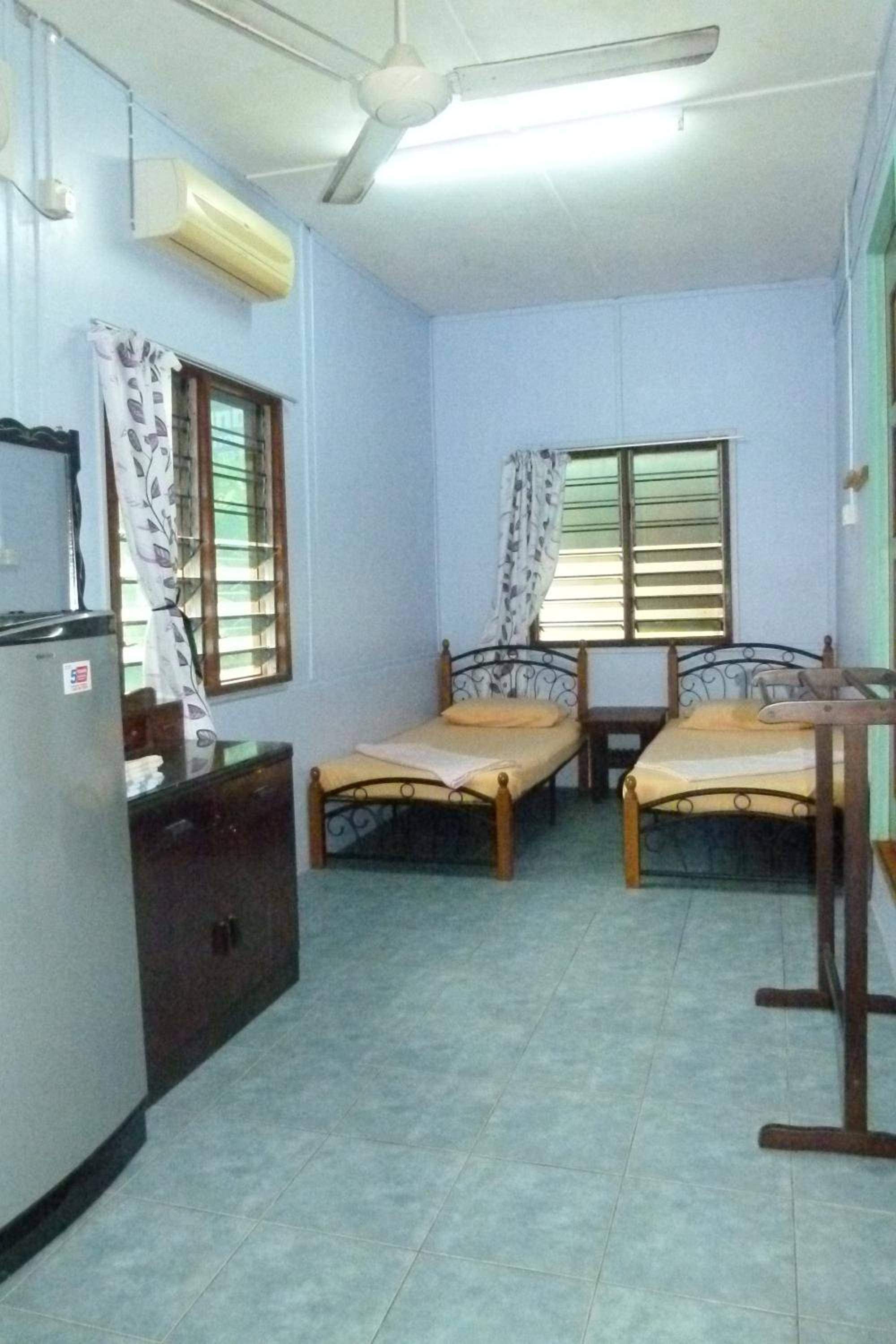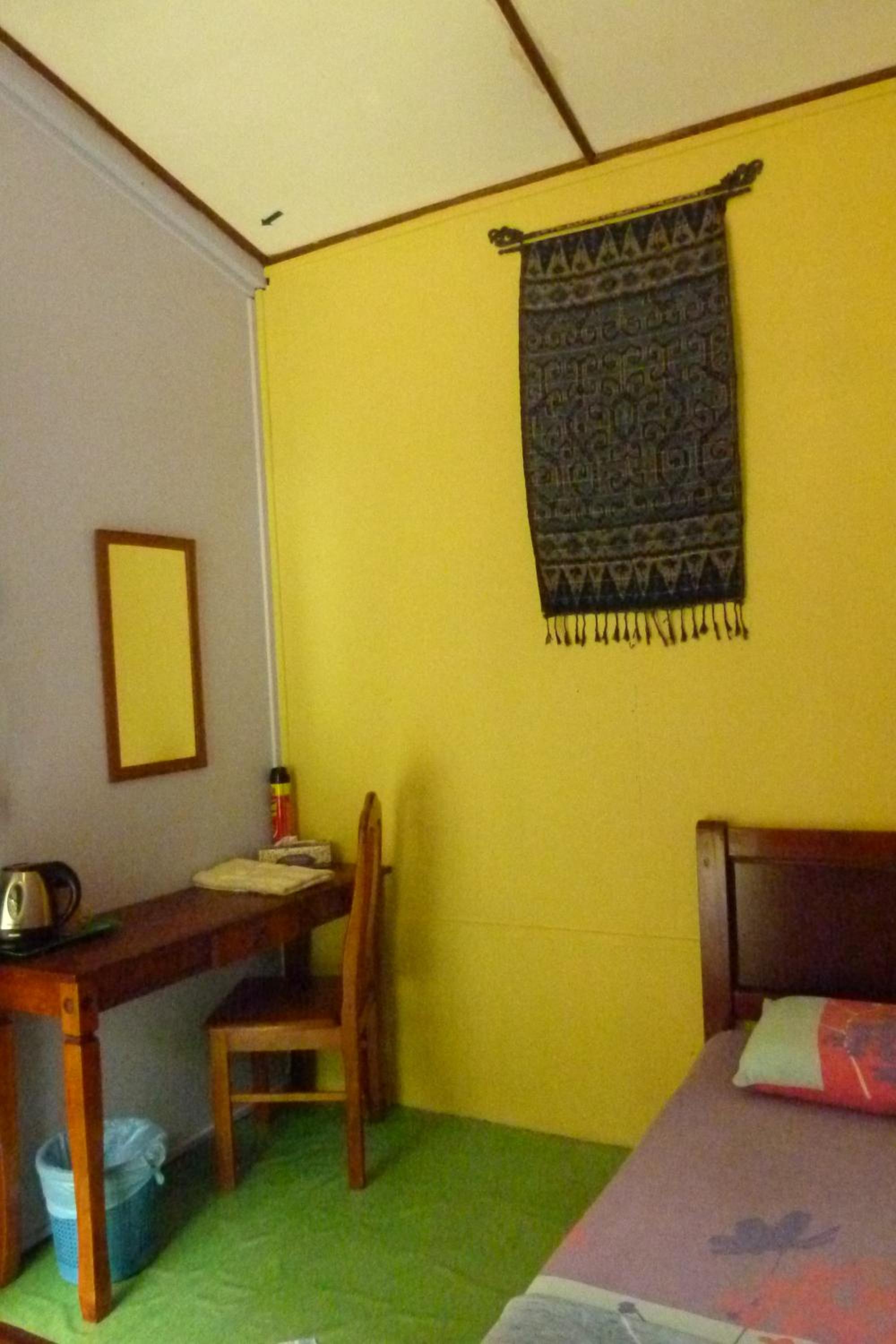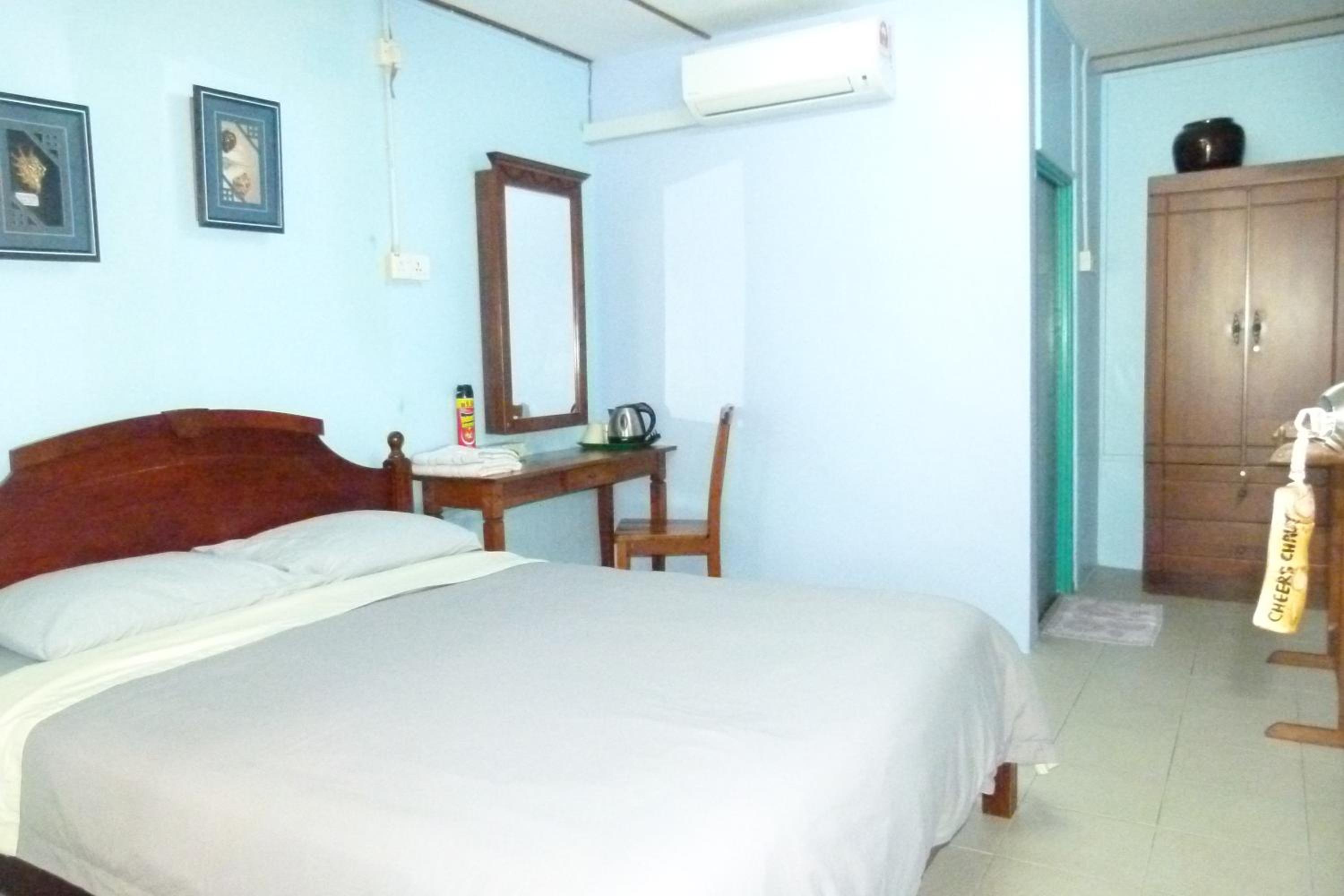 It is simple, but well kept. Very good value for the money. Nice location. About 10 mins walking from Tekek jetty, about 2 mins walking from a beach with nice sand and coral reef. Room was spacious, clean and comfy (Aircon, hot shower and fridge in the room). Rental of bikes, bycicles and snorkeling equipment available at the counter. Few restaurants in a walking distance, which are open even during monsoon season.