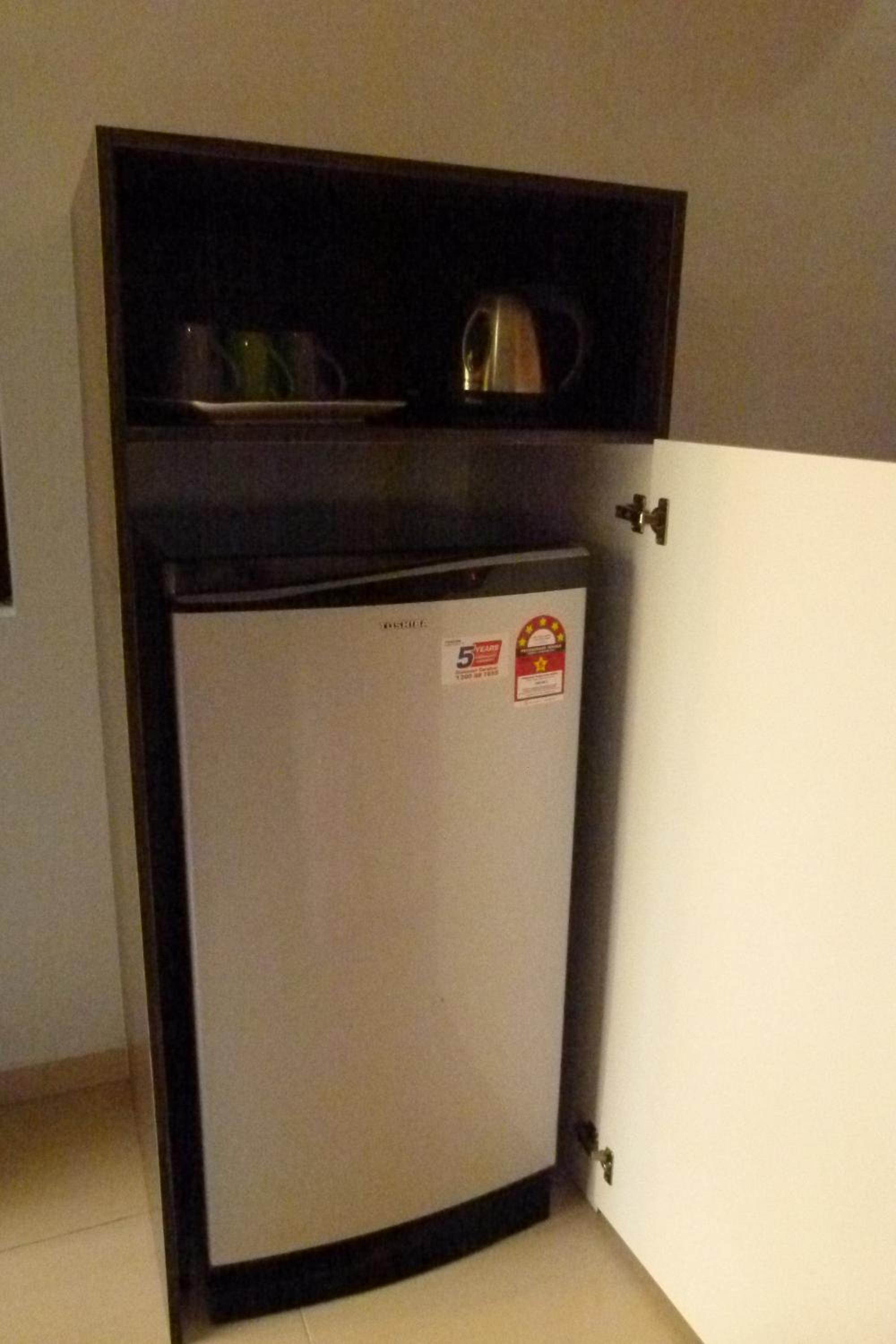 Frigo, bouilloire et toasteur à disposition