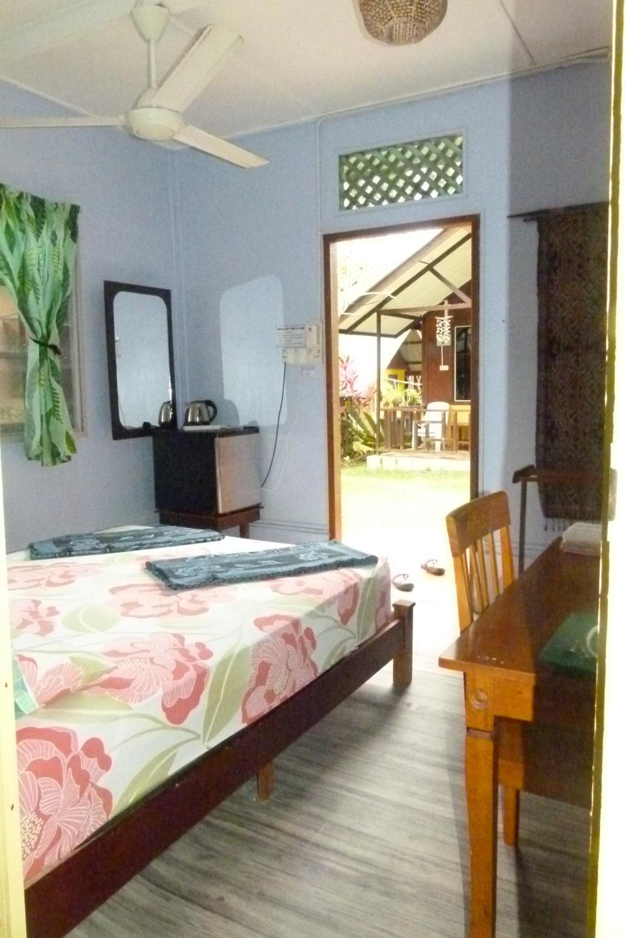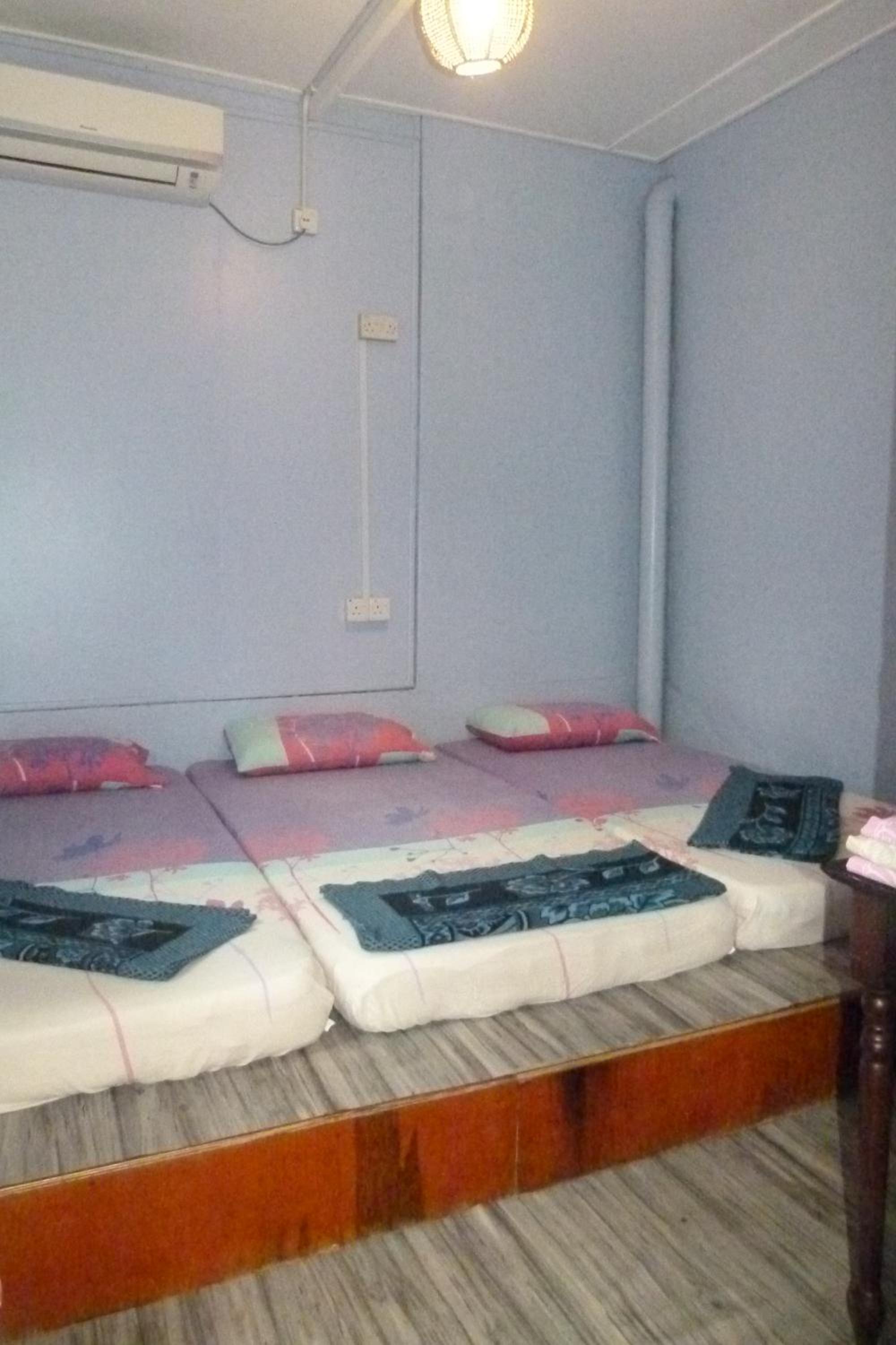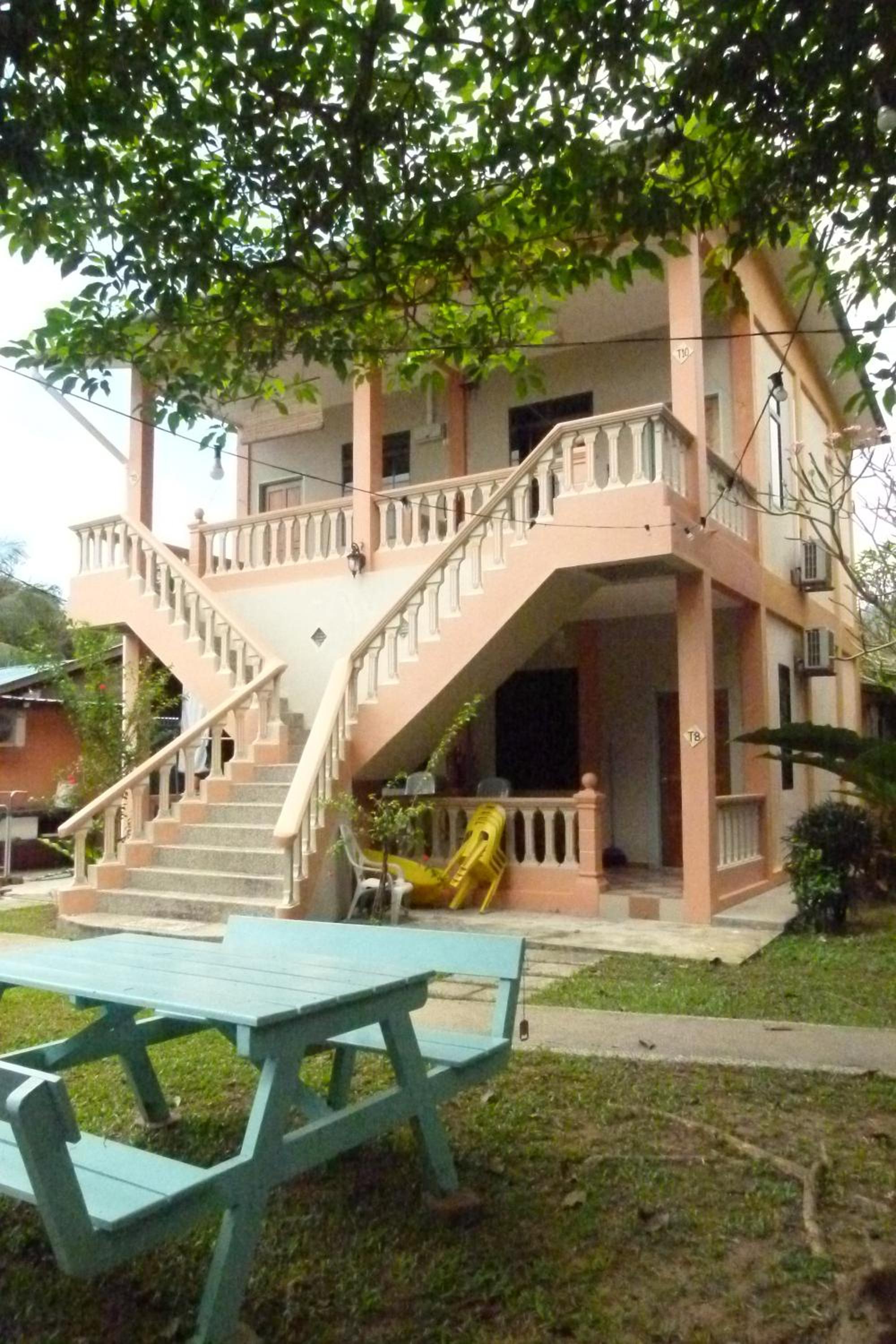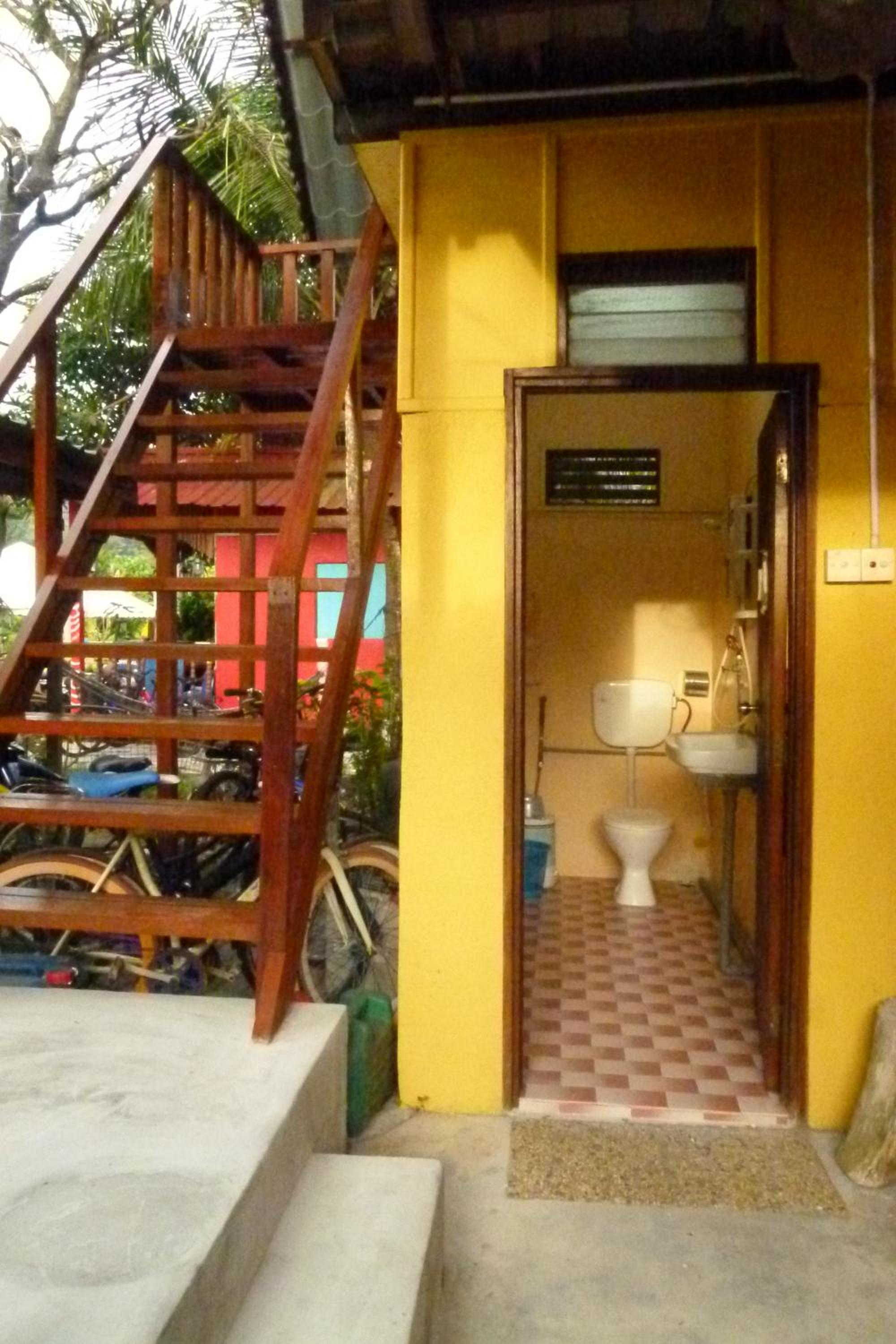 This place was so much better than expected. I booked the cheapest AC room, and it was perfect for me. Everything was clean. Nice private furnished patio right outside the room. Lights on the patio in the evening. The spacious common bathroom was literally next door and had a hot shower. Very good WiFi. It rained a lot while I was there. Seriously heavy downpours that could last for hours. Not at any point did the electricity go off or the WiFi go down. They also have a convenience store on site, which was very convenient on those rainy days. Very cheap beers there as well. You can walk here from the ferry.