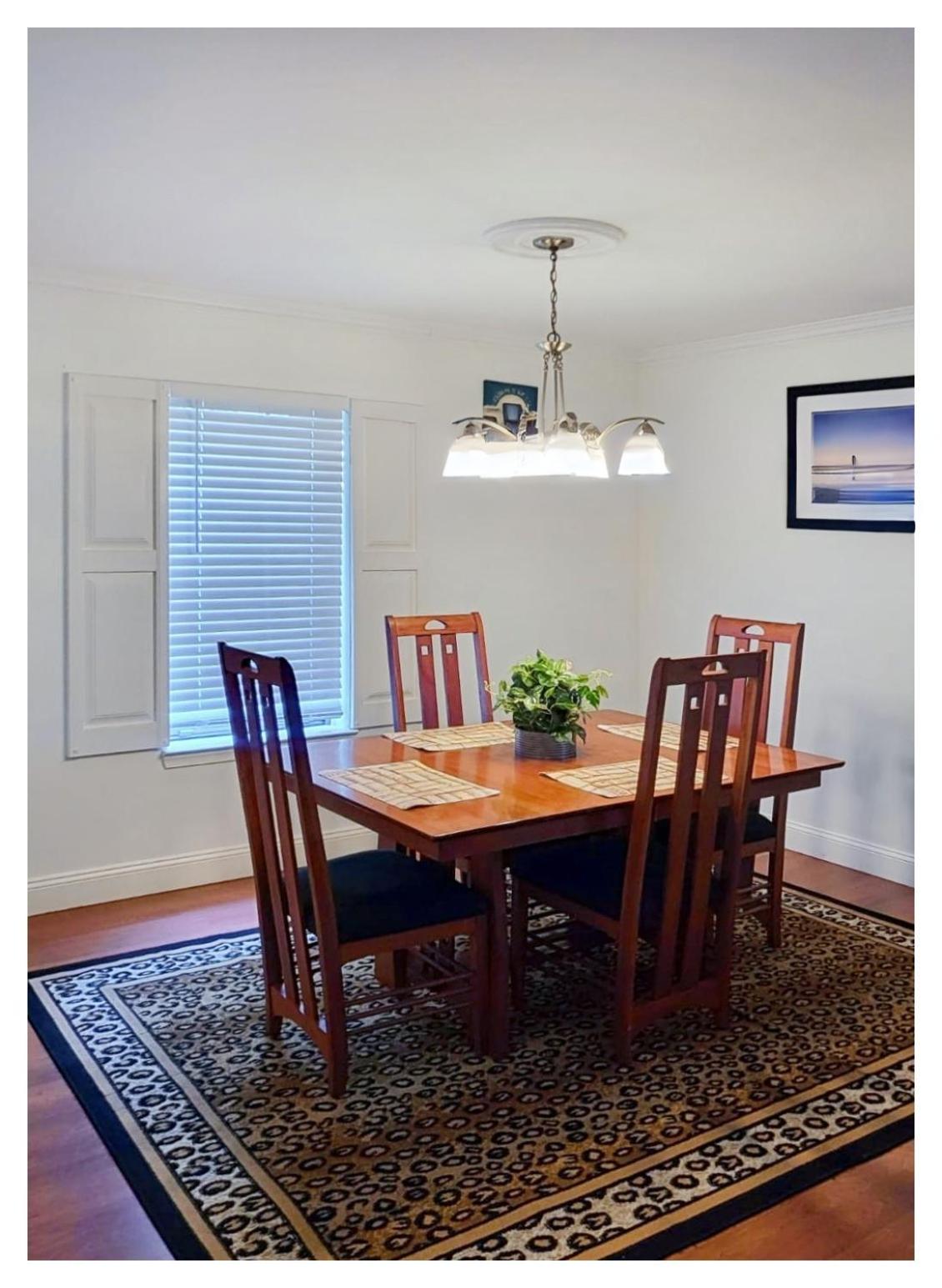 Located in a very quiet neighborhood. The bedroom was not fancy and a little small-ish, but nonetheless was quite comfortable. The sleeping room and bathroom were both very clean and well-maintained, as was the entire rest of the house. I liked the plastic-wrapped toothbrushes and little toothpaste tubes - a nice added touch. The common kitchen/dining area was outstanding, with virtually everything needed for cooking and dining - full-sized refrigerator, coffeemaker, microwave, full-sized range, plates, cups/glasses, flatware, spoons, spatulas, dining table and chairs etc. I didn't use the common "TV" room but it looked very comfortable and well-appointed. All in all, a very pleasant two nights.