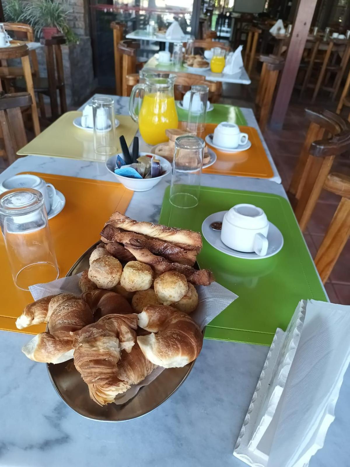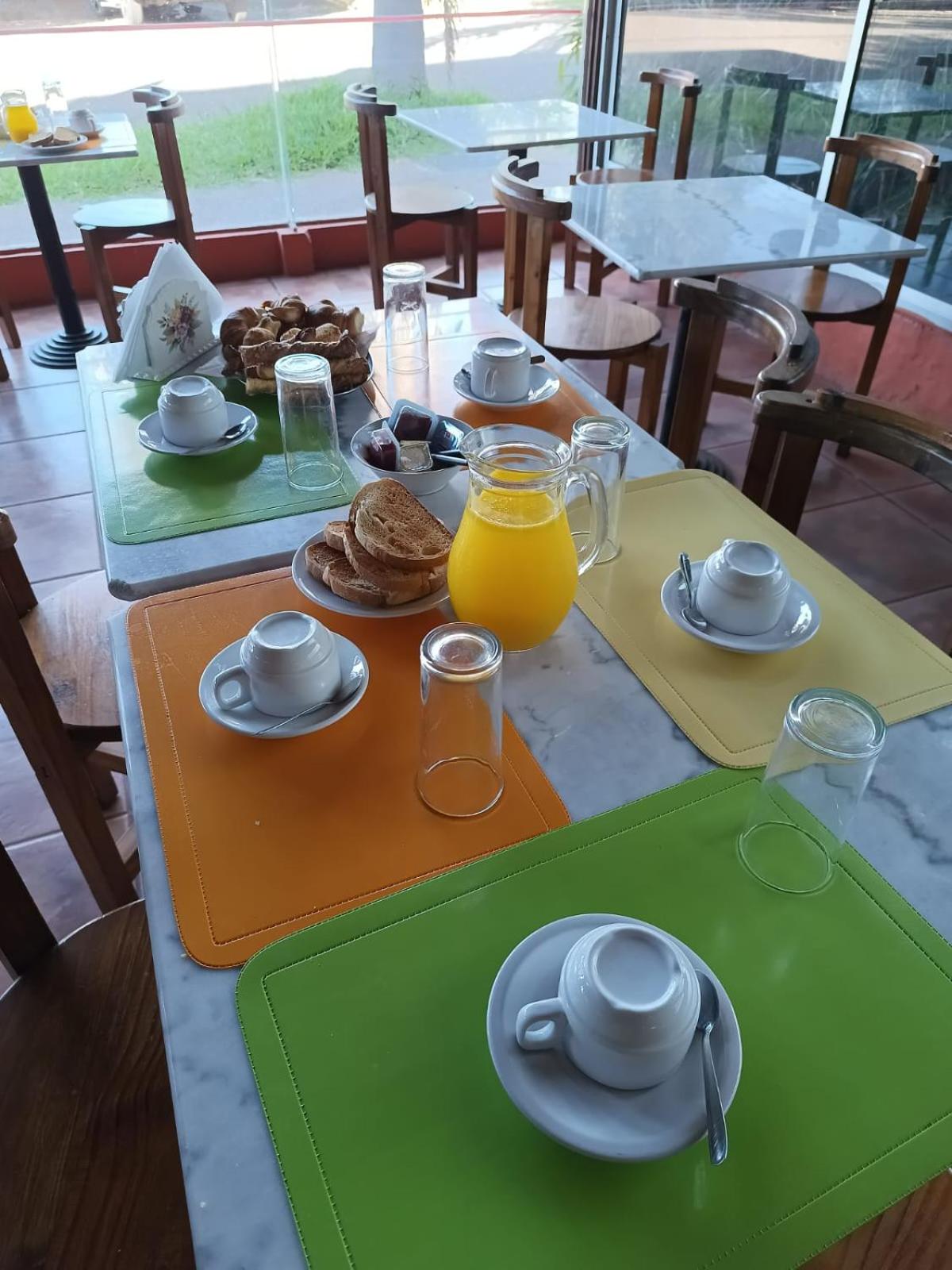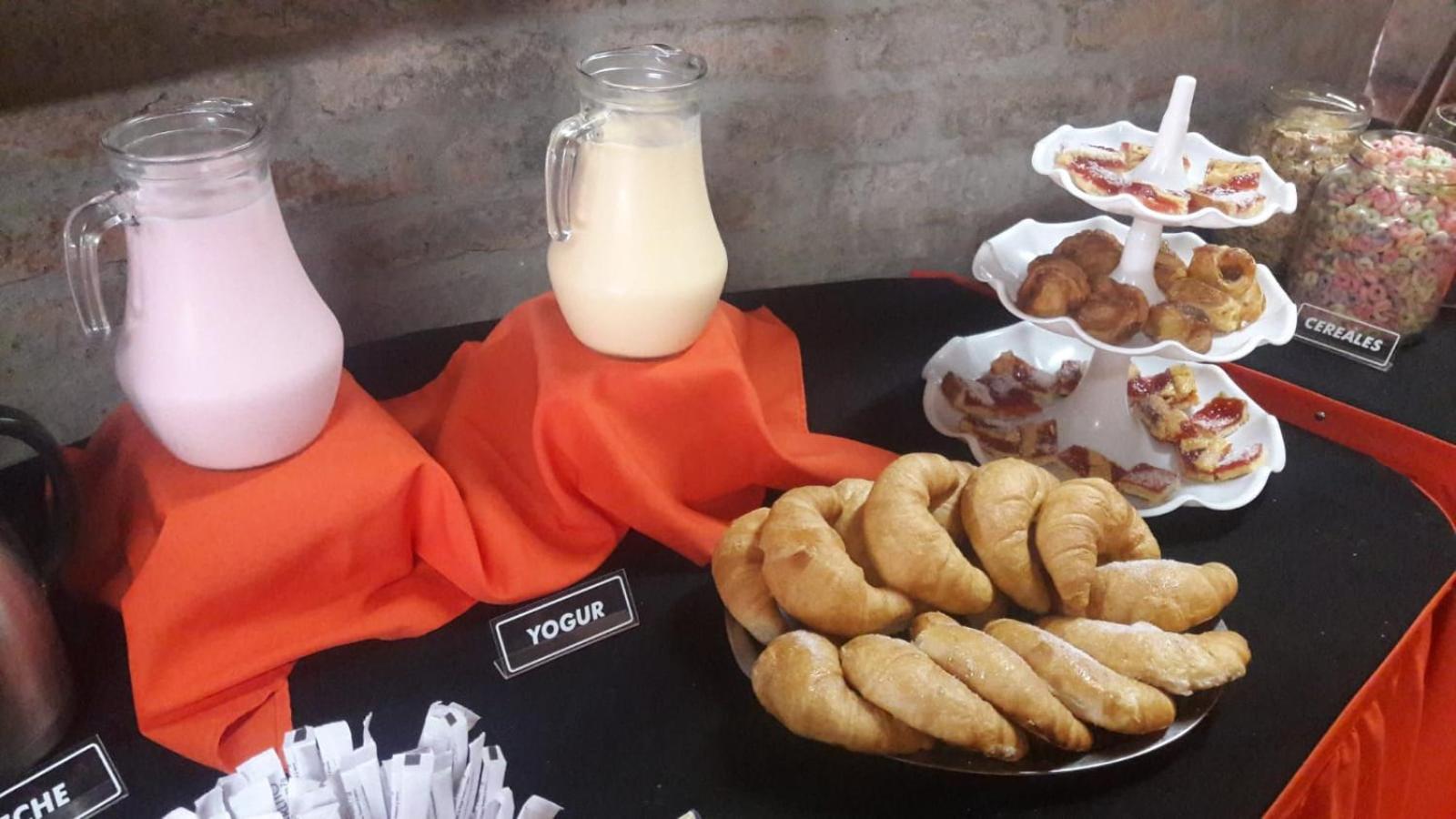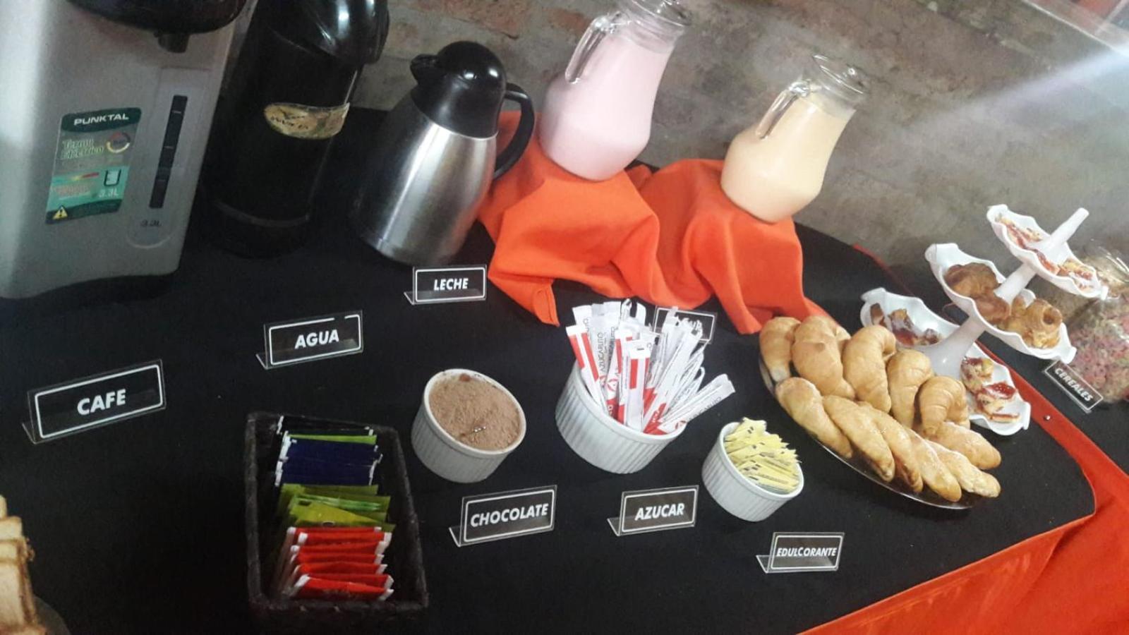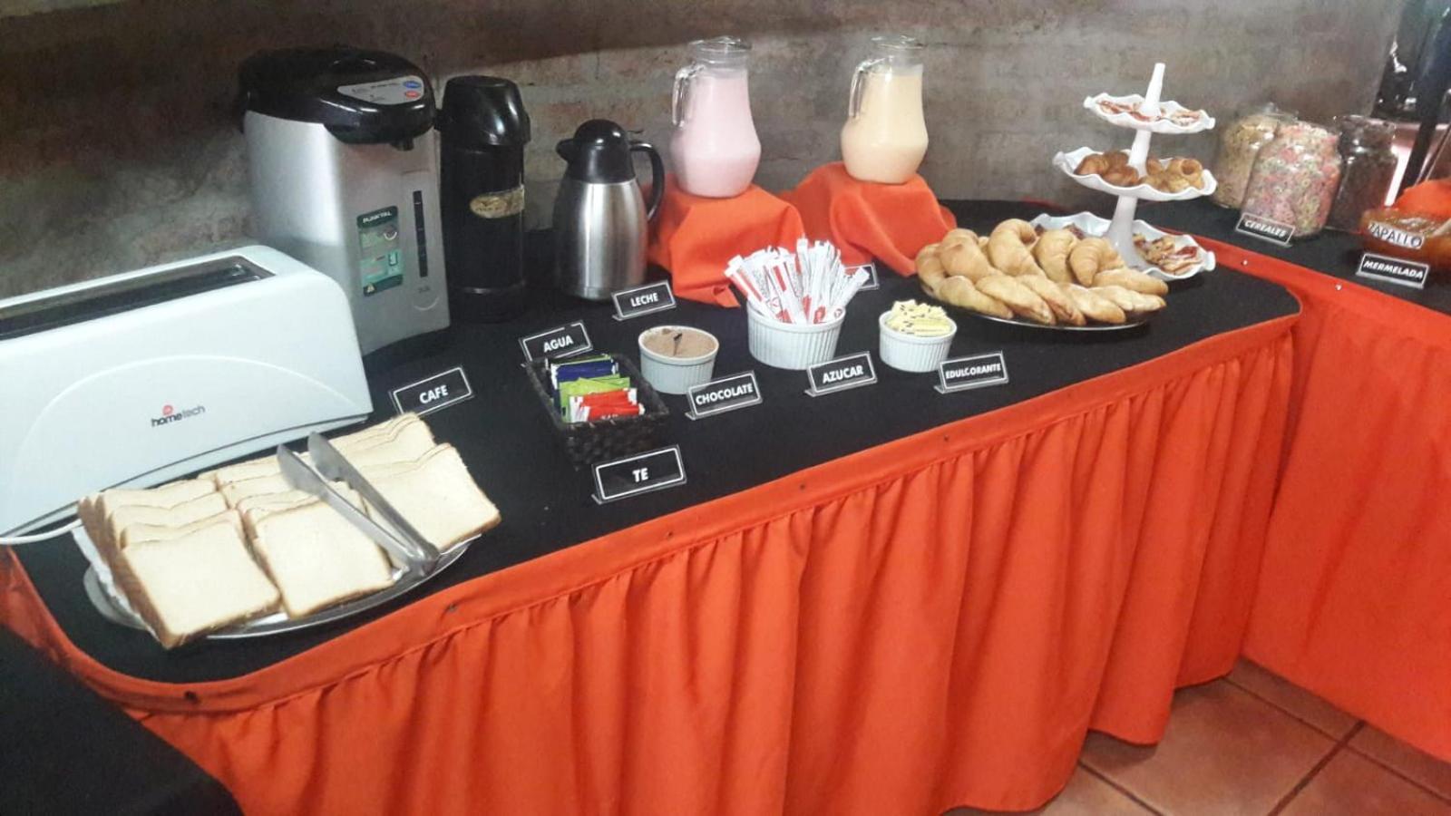 Desayuno básico ( bizcochos, tostadas) , sin opciones de fiambres ni quesos