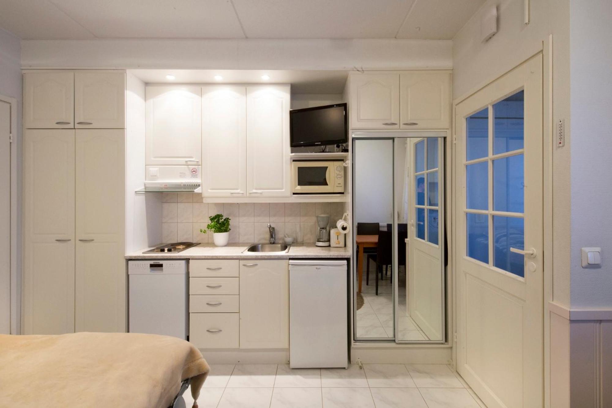 Perfect little apartment with a private sauna which we loved! The rooms were spacious and the kitchen had everything we needed!
