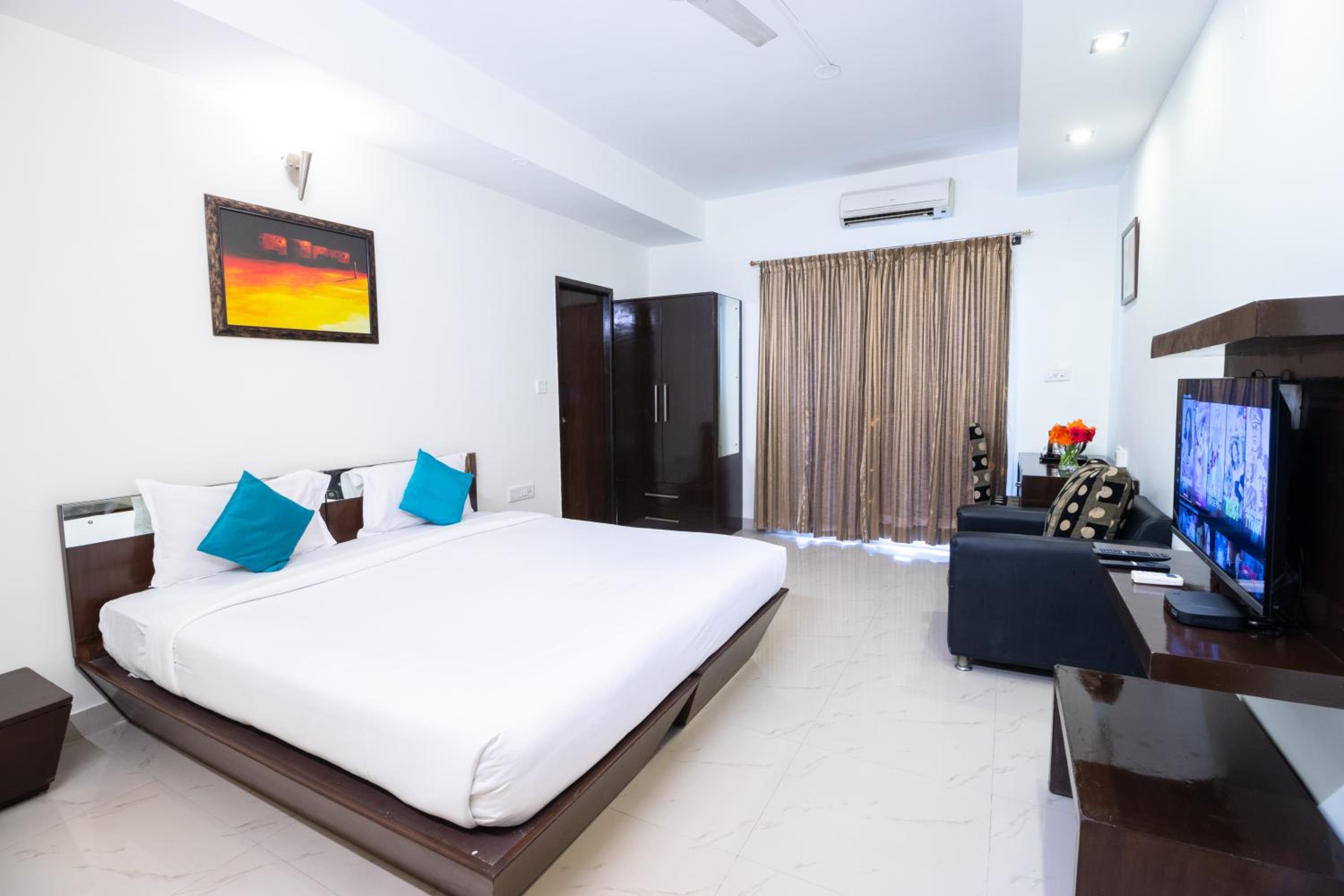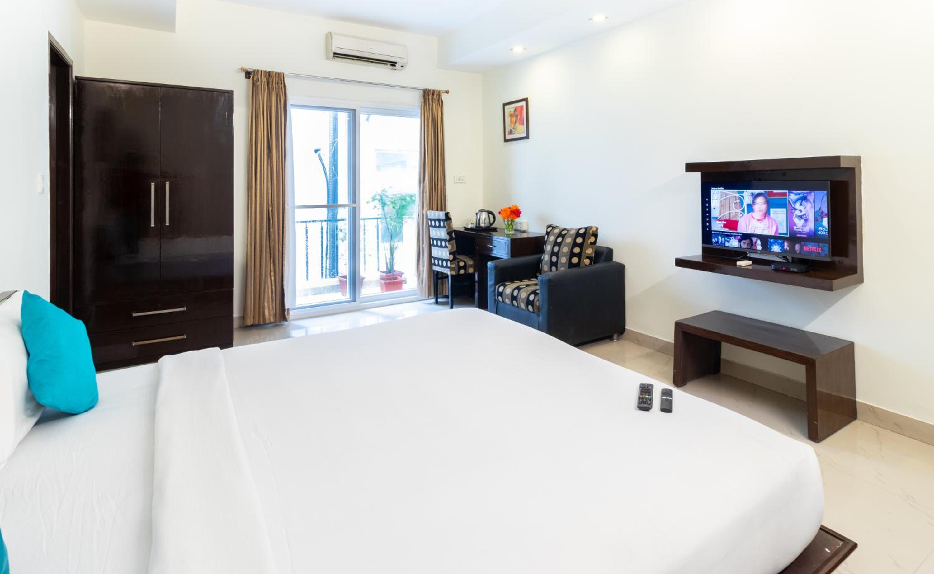 Sanctum Suites Domlur Bangalore offers air-conditioned rooms with free WiFi and private bathrooms. Some rooms feature balconies, perfect for enjoying the Bangalore weather. Each room is equipped with a flat-screen TV and cozy bed linen, ensuring a comfortable stay.
