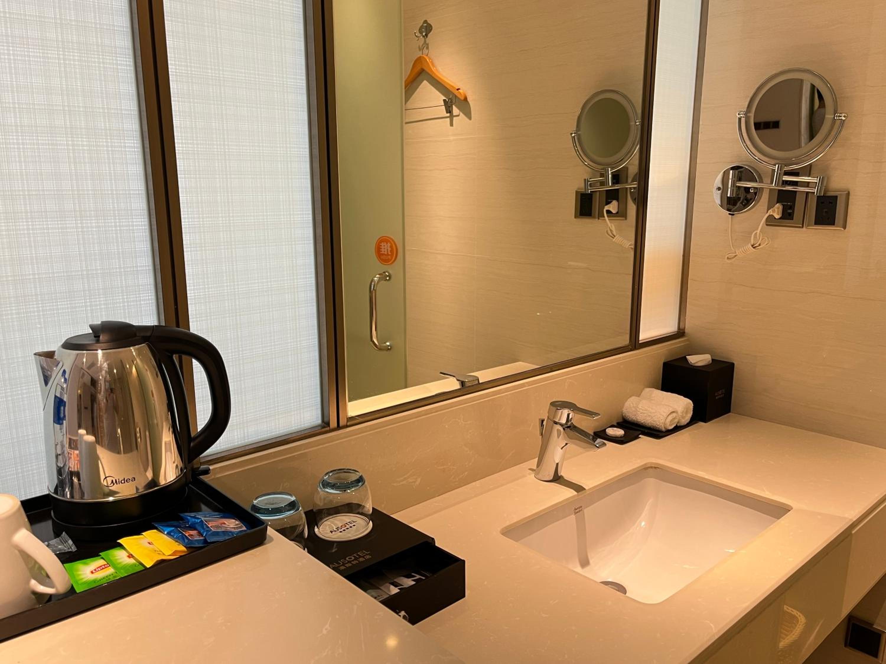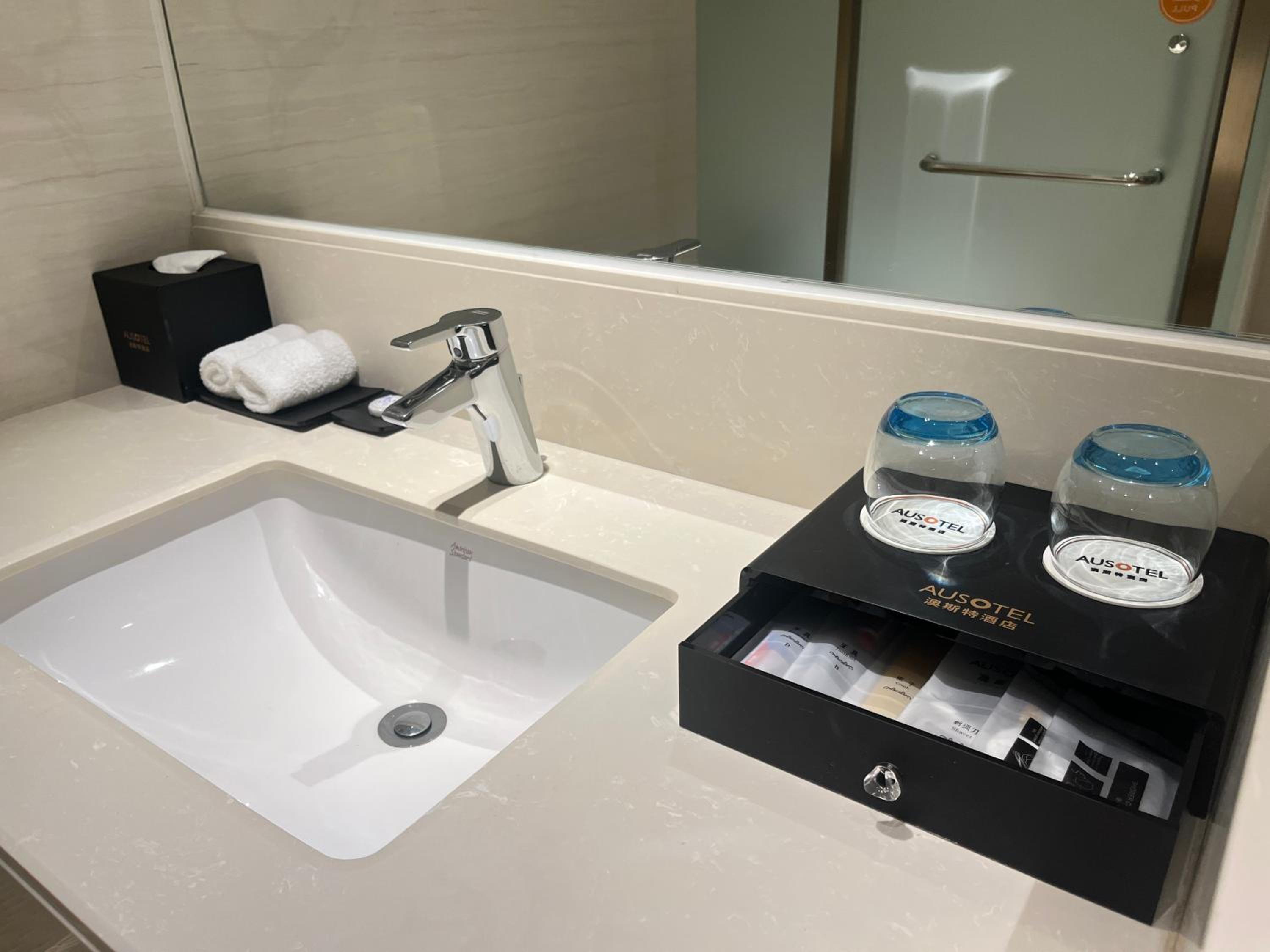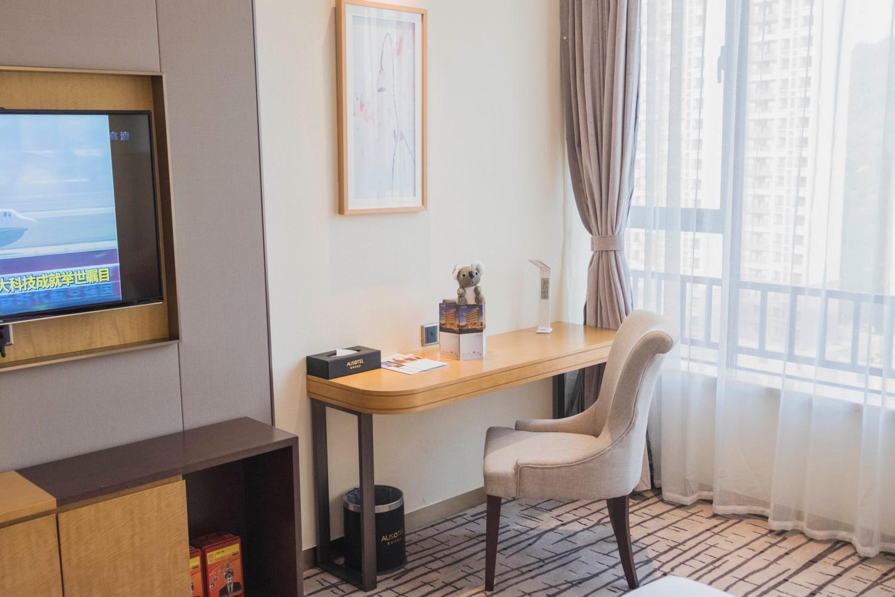Guangzhou Nanhong Ausotel Hotel offers air-conditioned rooms with modern amenities like a fridge, safety deposit box, and private bathroom. Enjoy a comfortable stay with quality bed linen and towels provided.