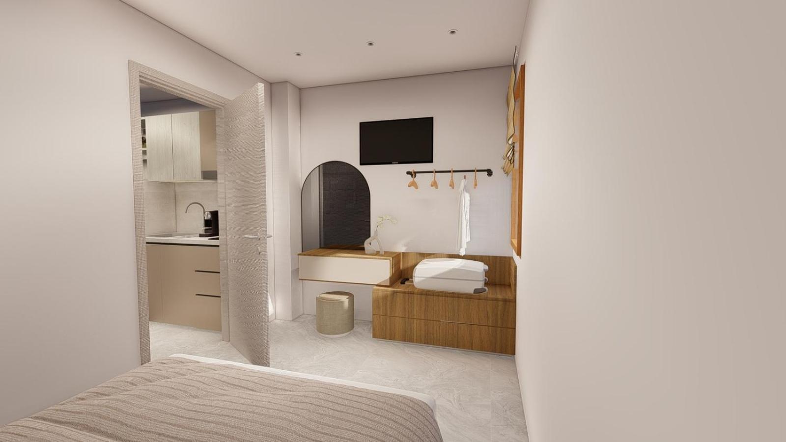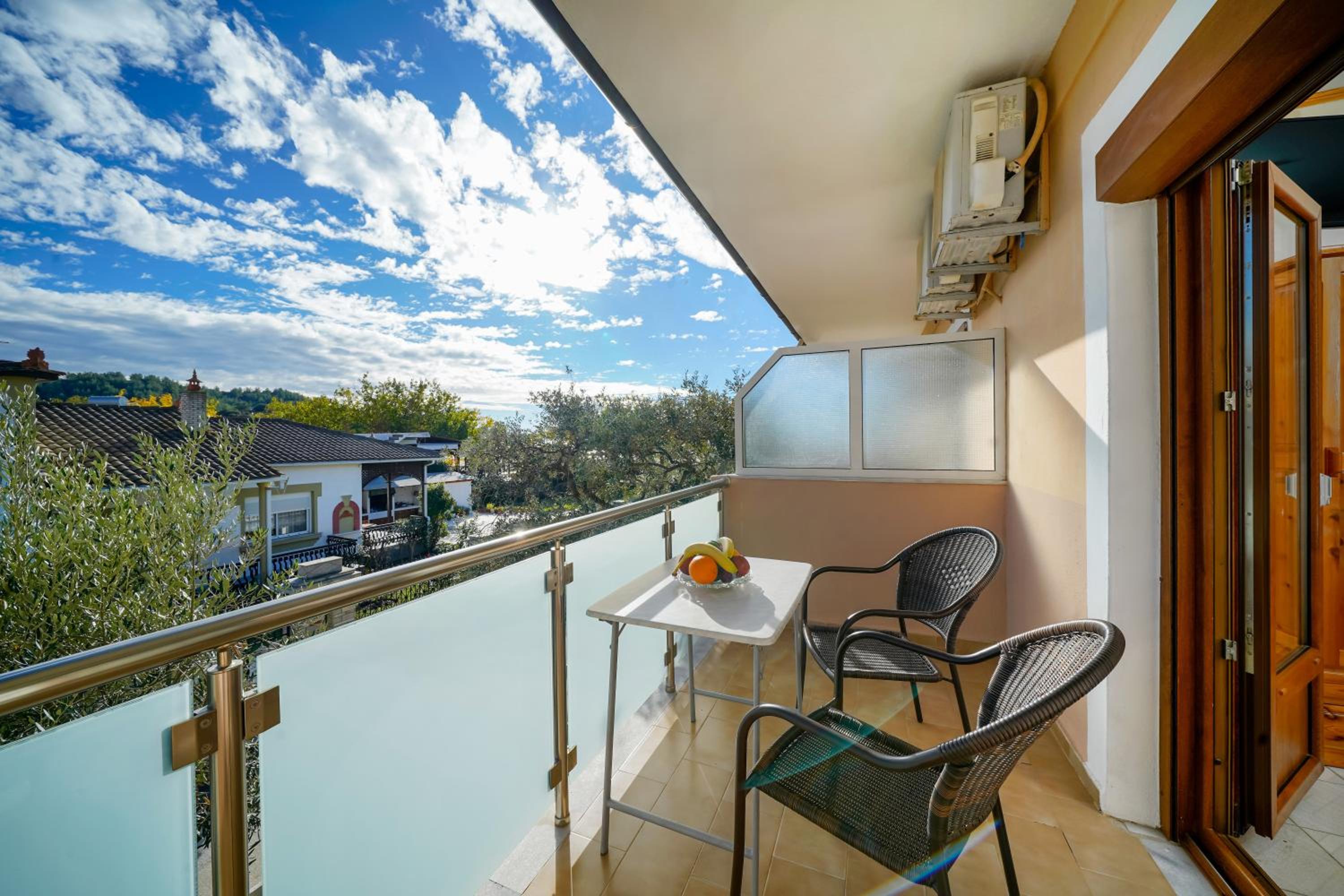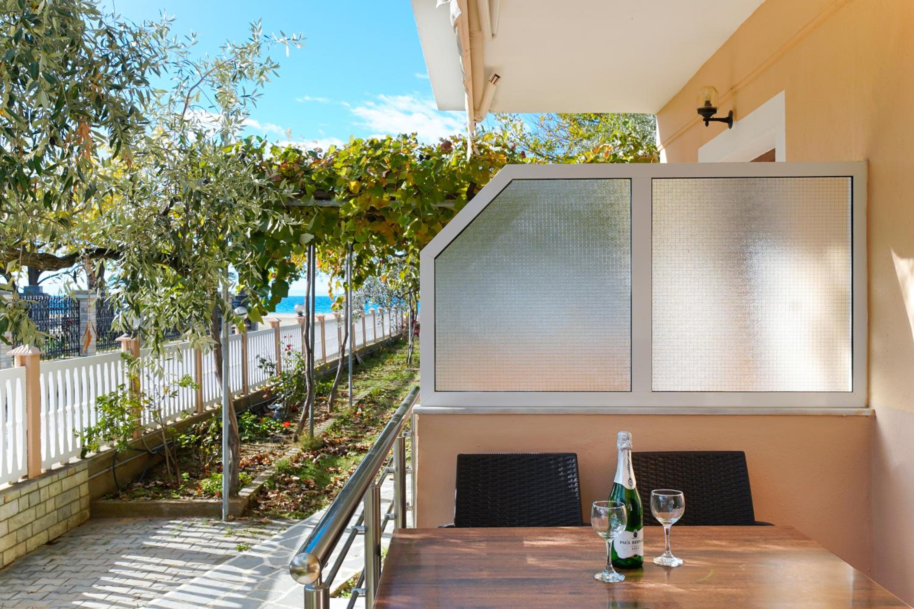 Camera este moderna si foarte curata, spatiul de bucatarie utilat cu tot ce e necesar, baia frumoasa si curata, aer conditionat si foarte important locatia direct pe plaja. Curtea racoroasa dotata cu gratar si sezlonguri. Foarte aproape cateva taverne unde poti servi masa.