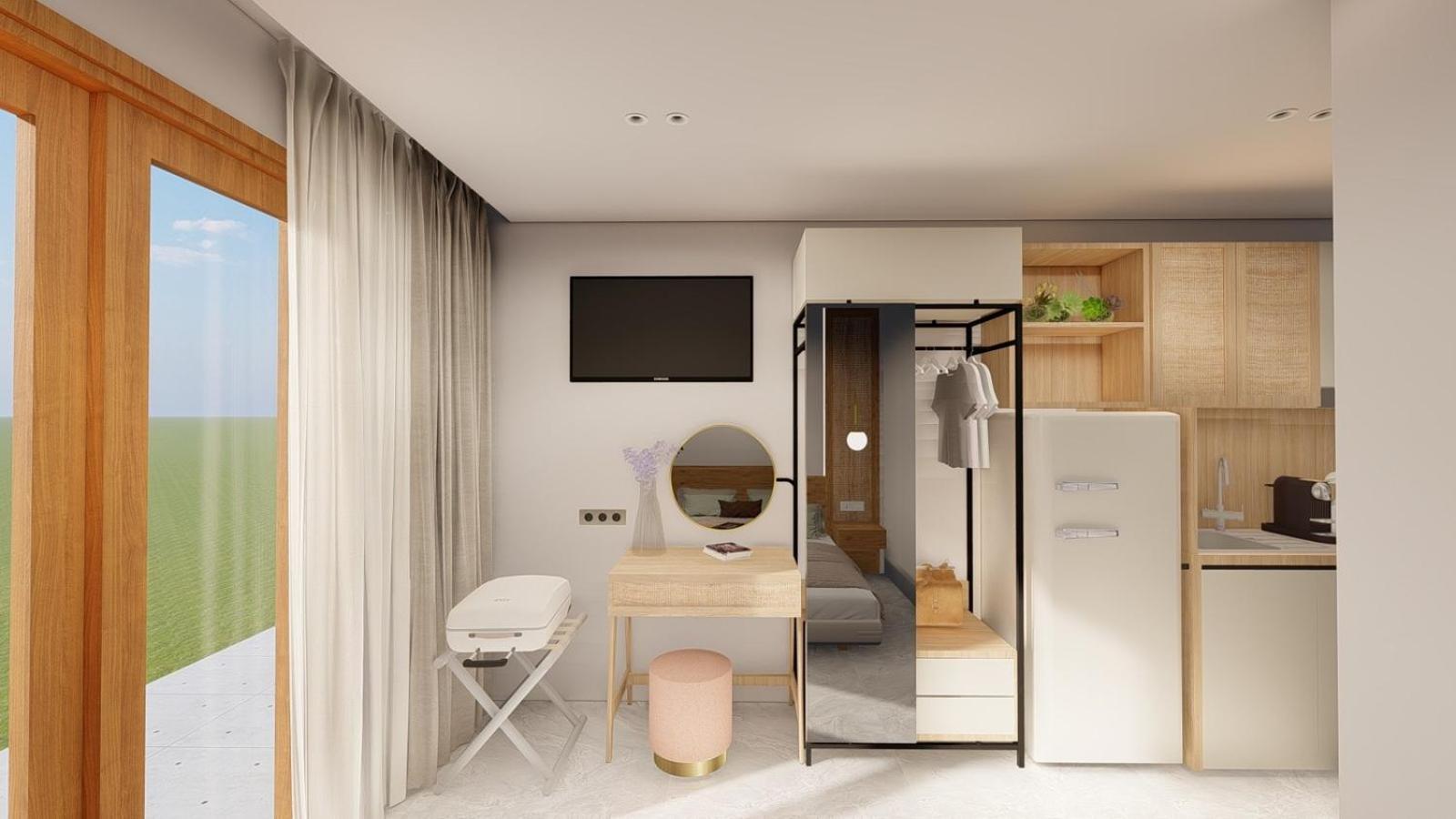 This is such an amazing place!!! We are a couple, so we took double studio for our vacation. The studio is super nice. Everything you need is there - I mean, they thought of every little detail. It's small with a nice balcony, but so well organised and designed that you just have to adore it. It's perfectly clean, and the owners are taking good care of housekeeping. The beds are so comfy. We slept like babies! Also, in the garden there are sunbeds and a bbq place, so you can buy some fresh sea food in the local fish market and make it on the grill. The garden takes you out to the beach, and you also have a nice shade whenever you want to move and cool down from the heat in the afternoon. Oh, and they gave us their olive oil and olives, which were so good. If you see this available, book immediately!!! Big thanks to Jorgos and his family!!!