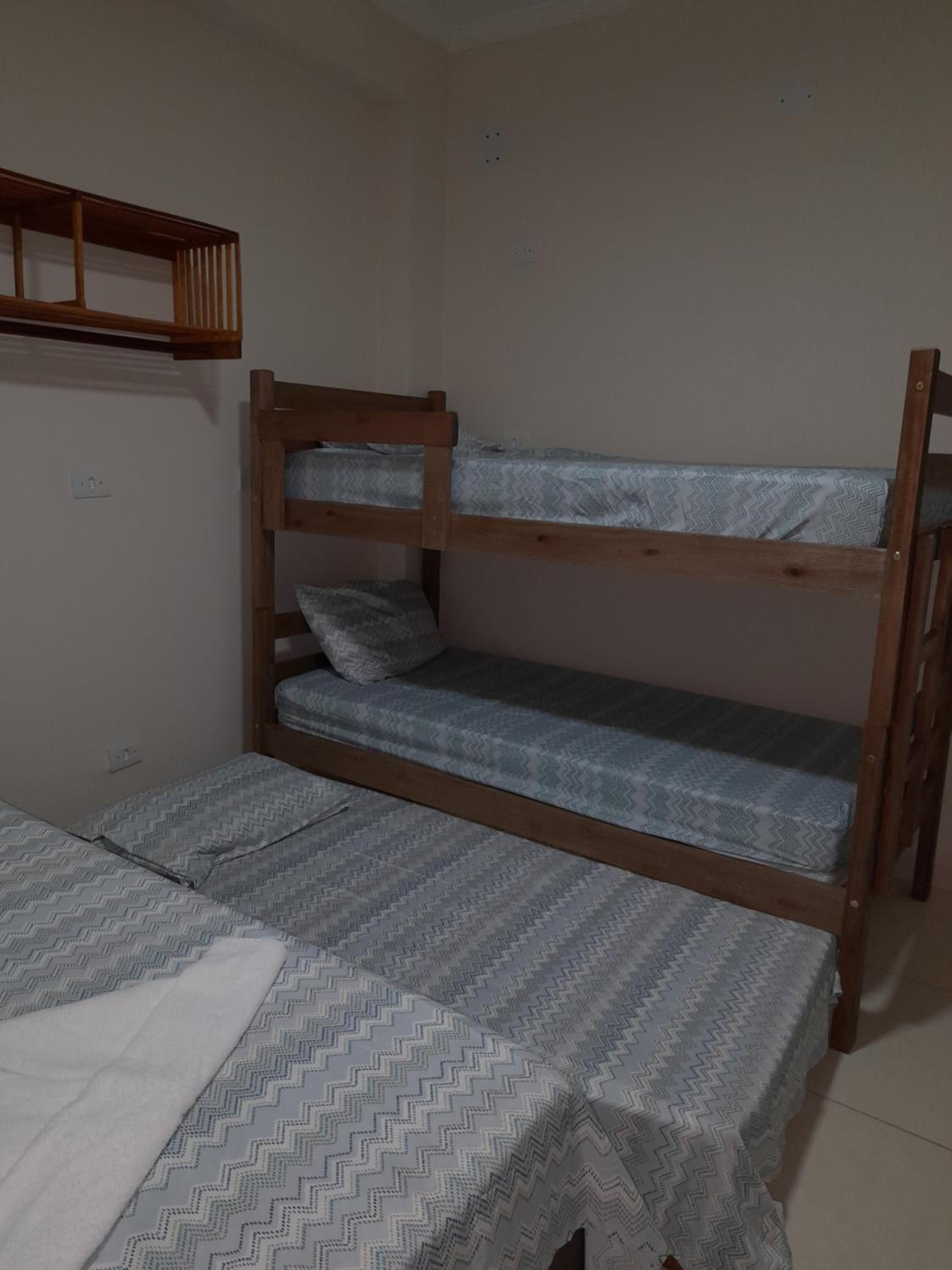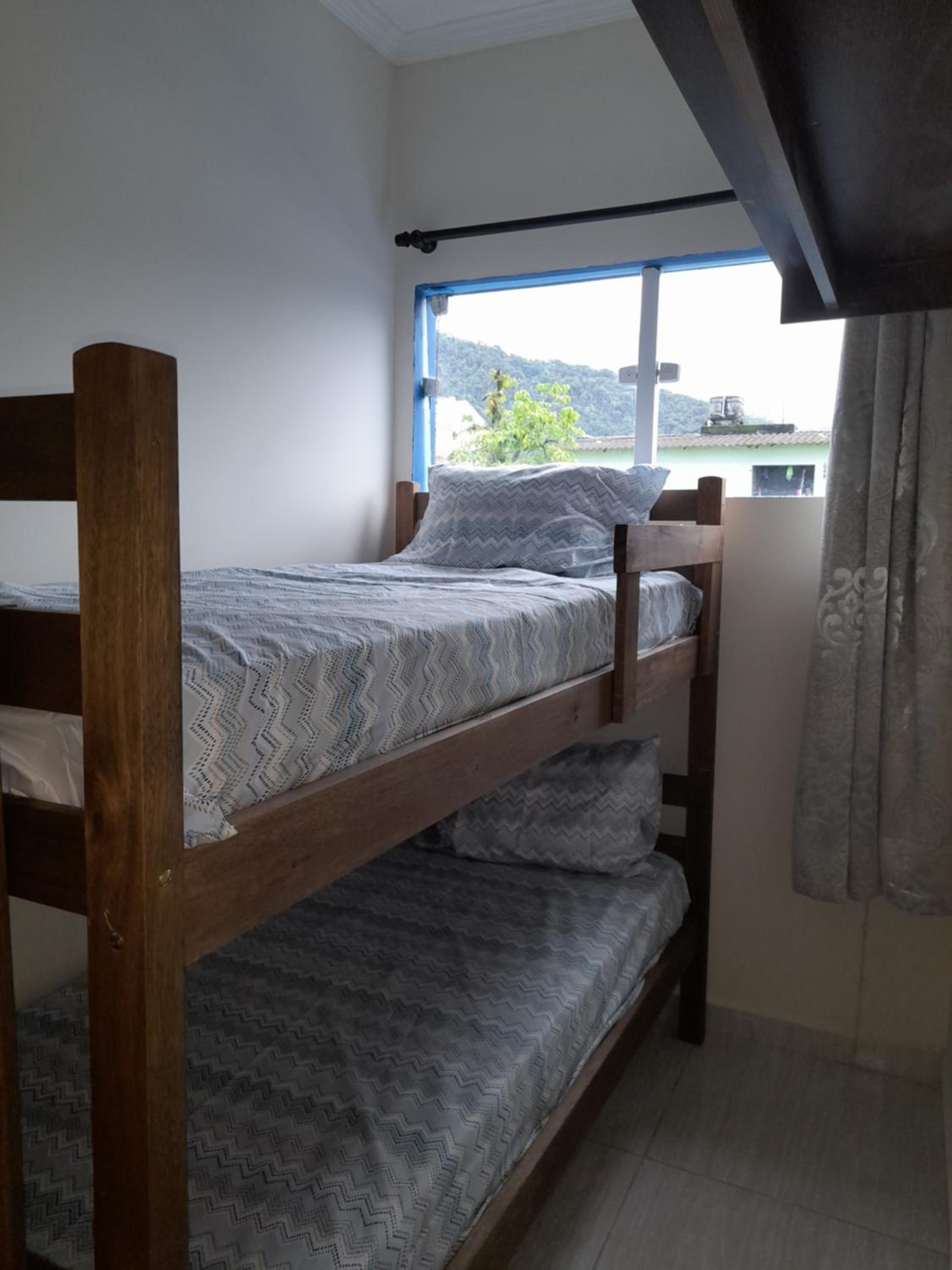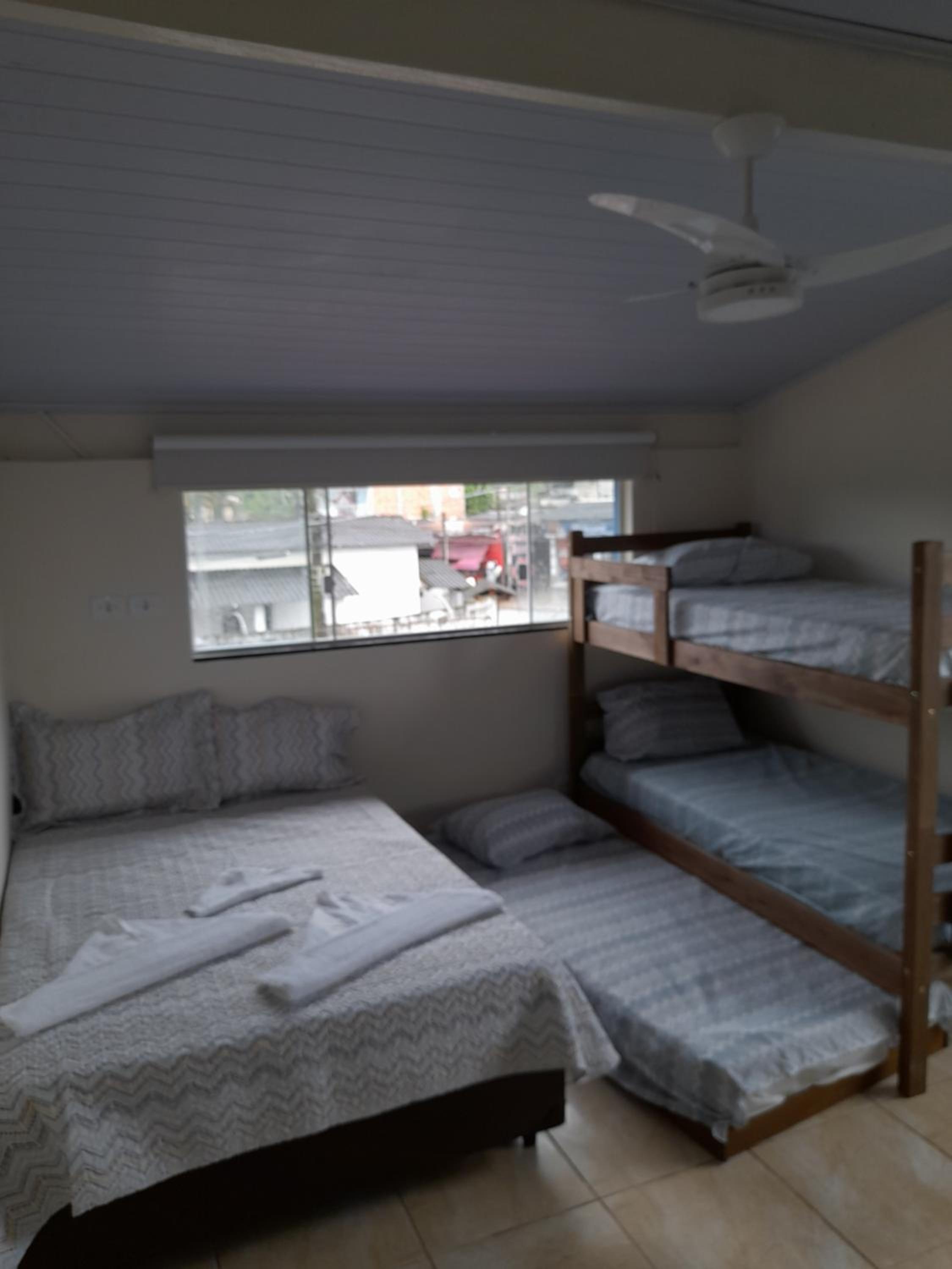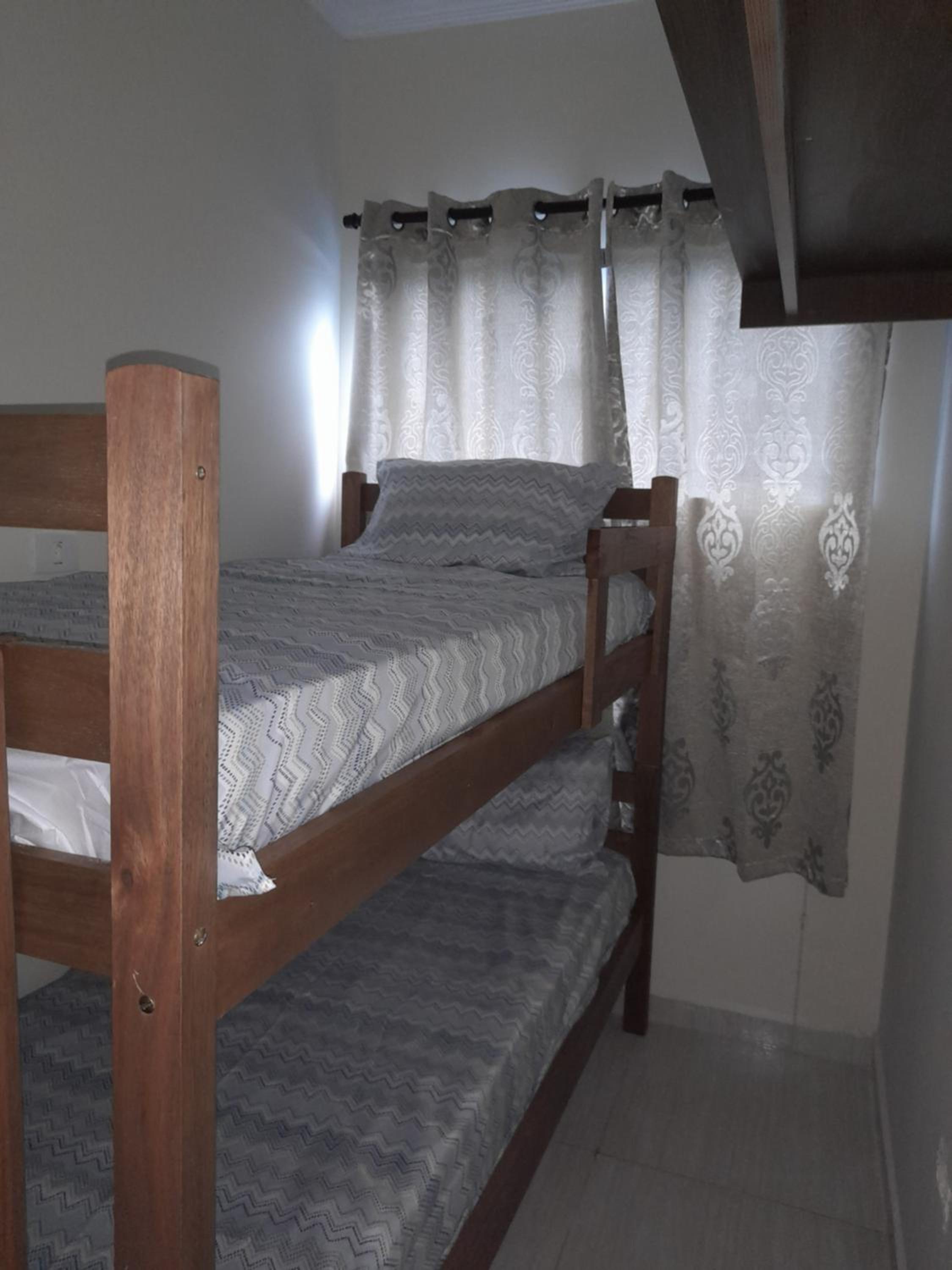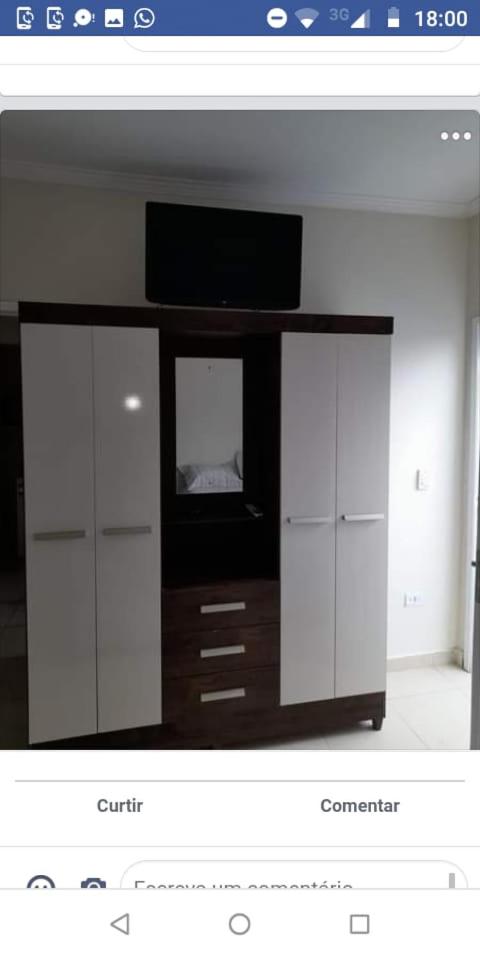 As instalações do quarto são precárias, o chuveiro tinha um vazamento e tivemos que tomar banho gelado por medo de levar os choque, o banheiro tem pouca ventilação o que deixa o quarto com cheiro ruim. O quarto com beliche é extremamente pequeno e quente pela pouca ventilação, e as roupas de cama e travesseiros ruim. A rua em que ele fica é de terra, não possui garagem. Mobilia da cozinha precisa de reparos.