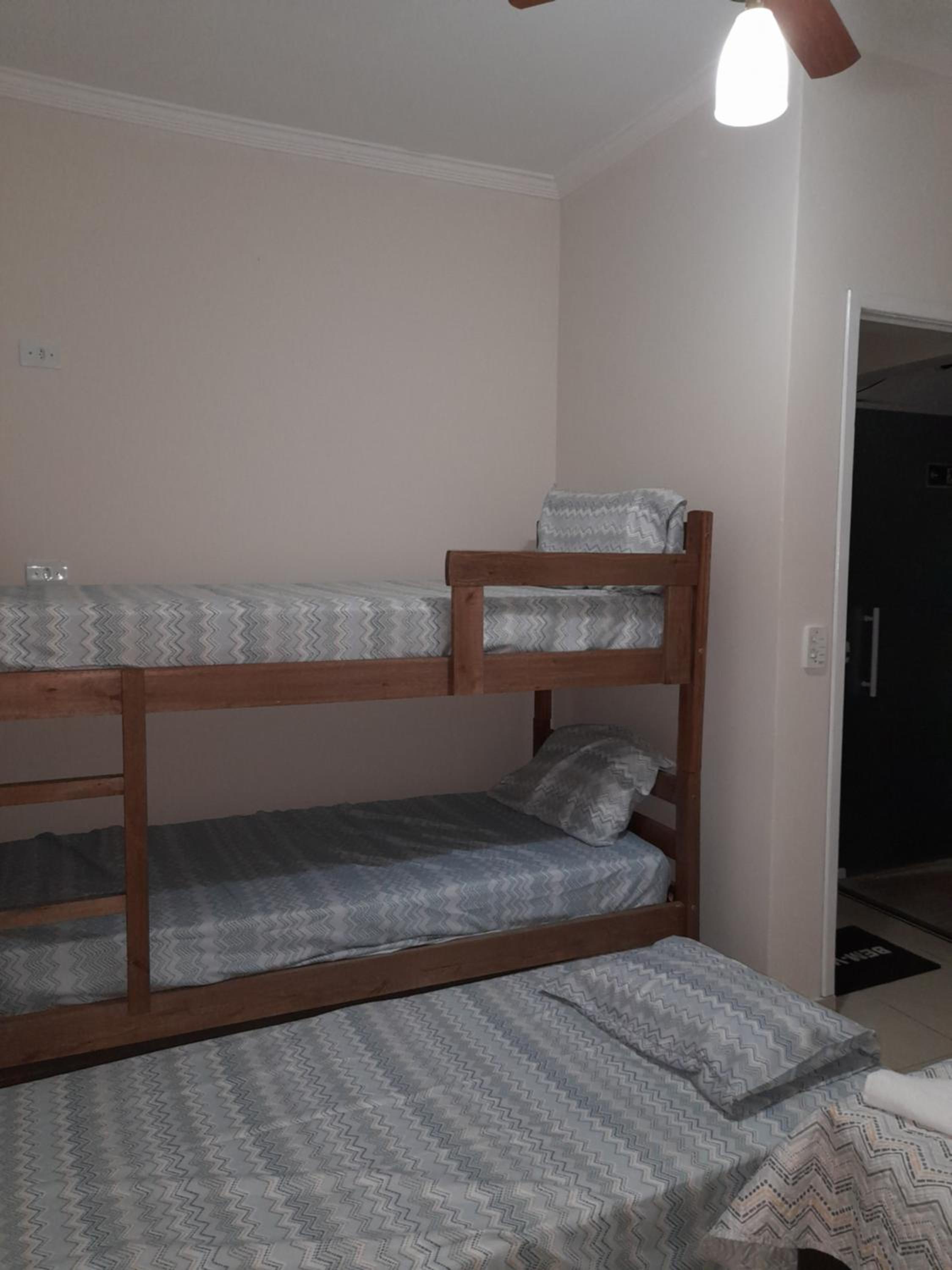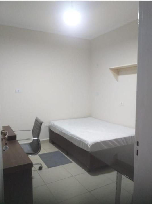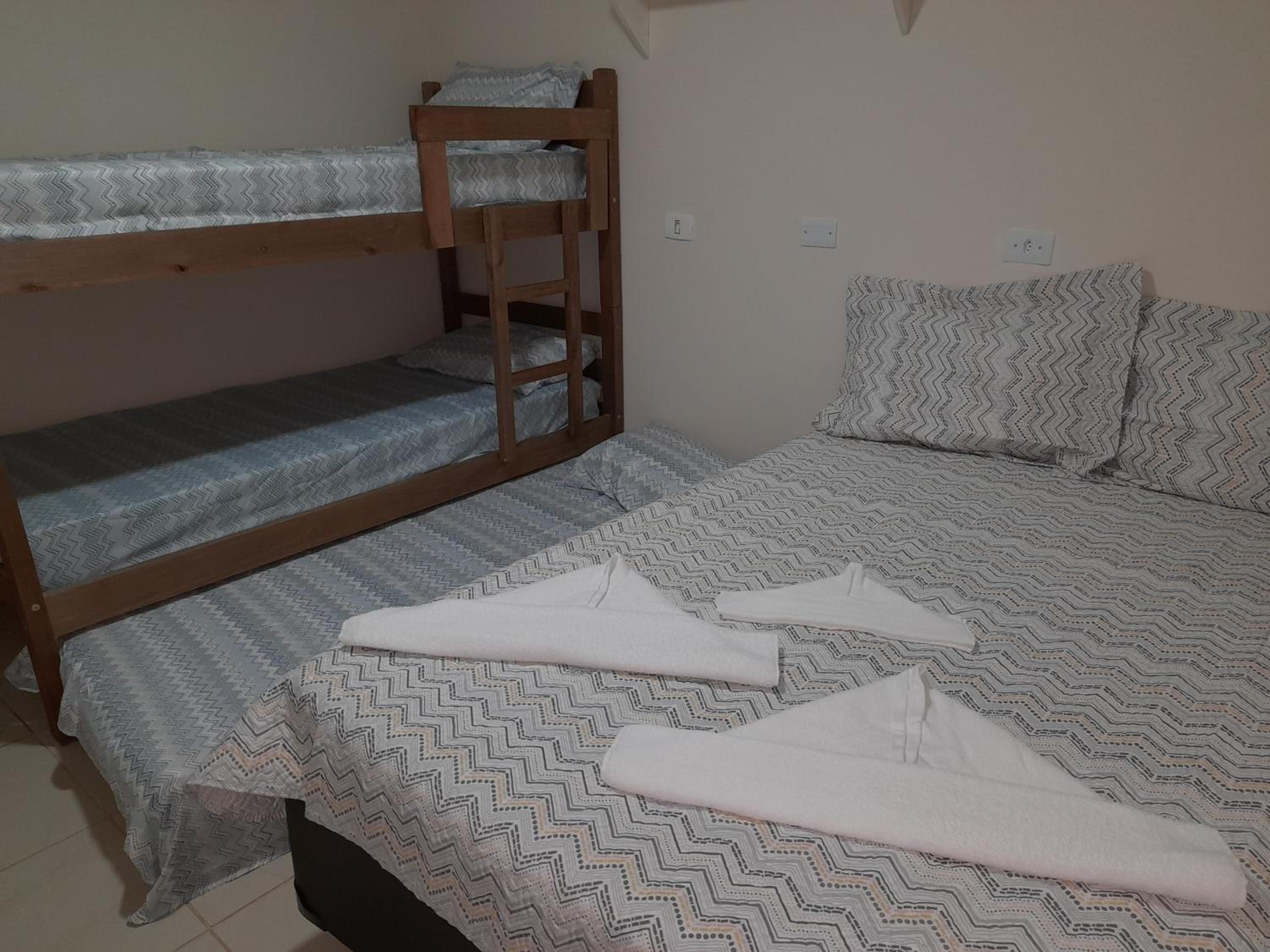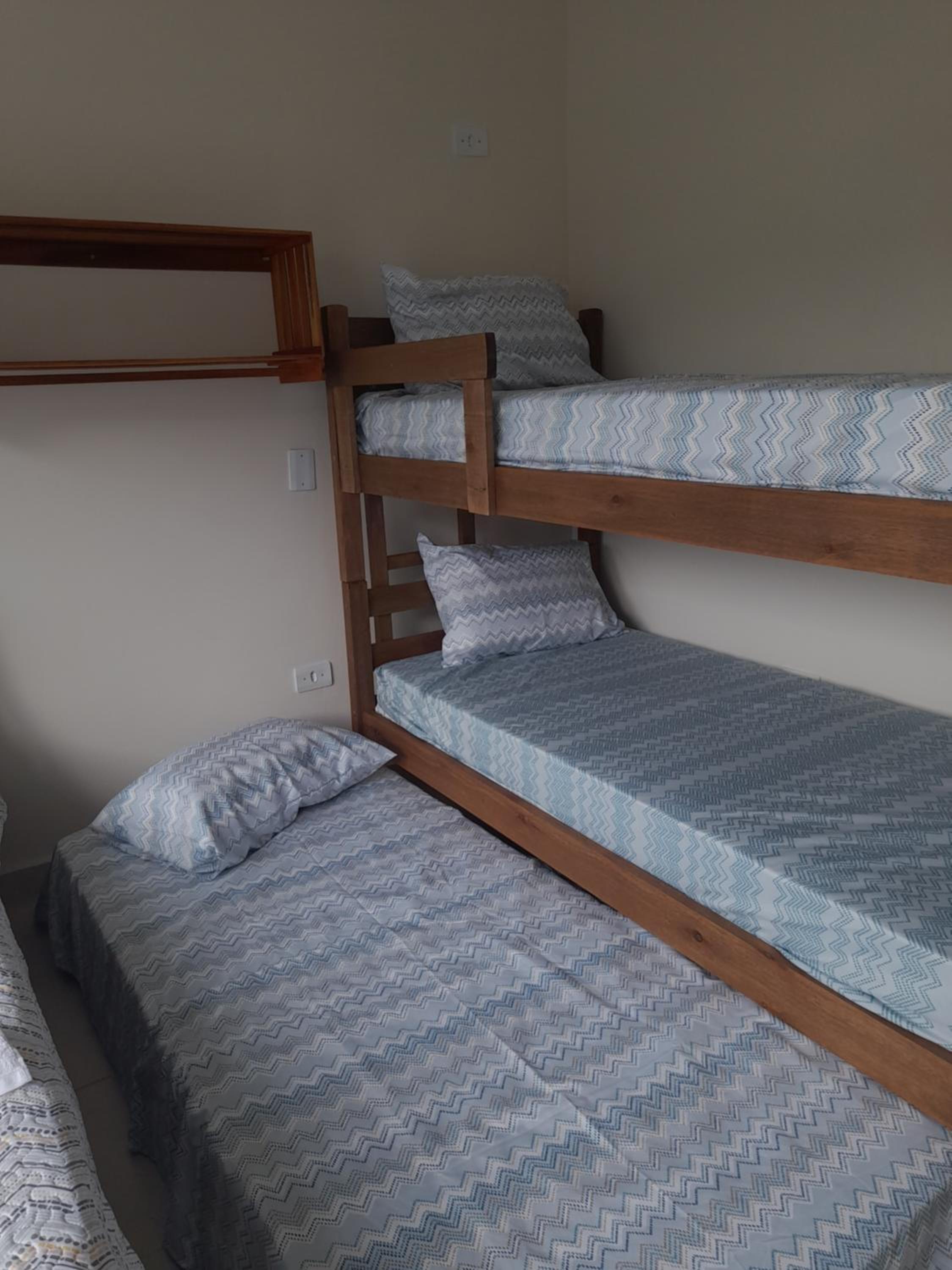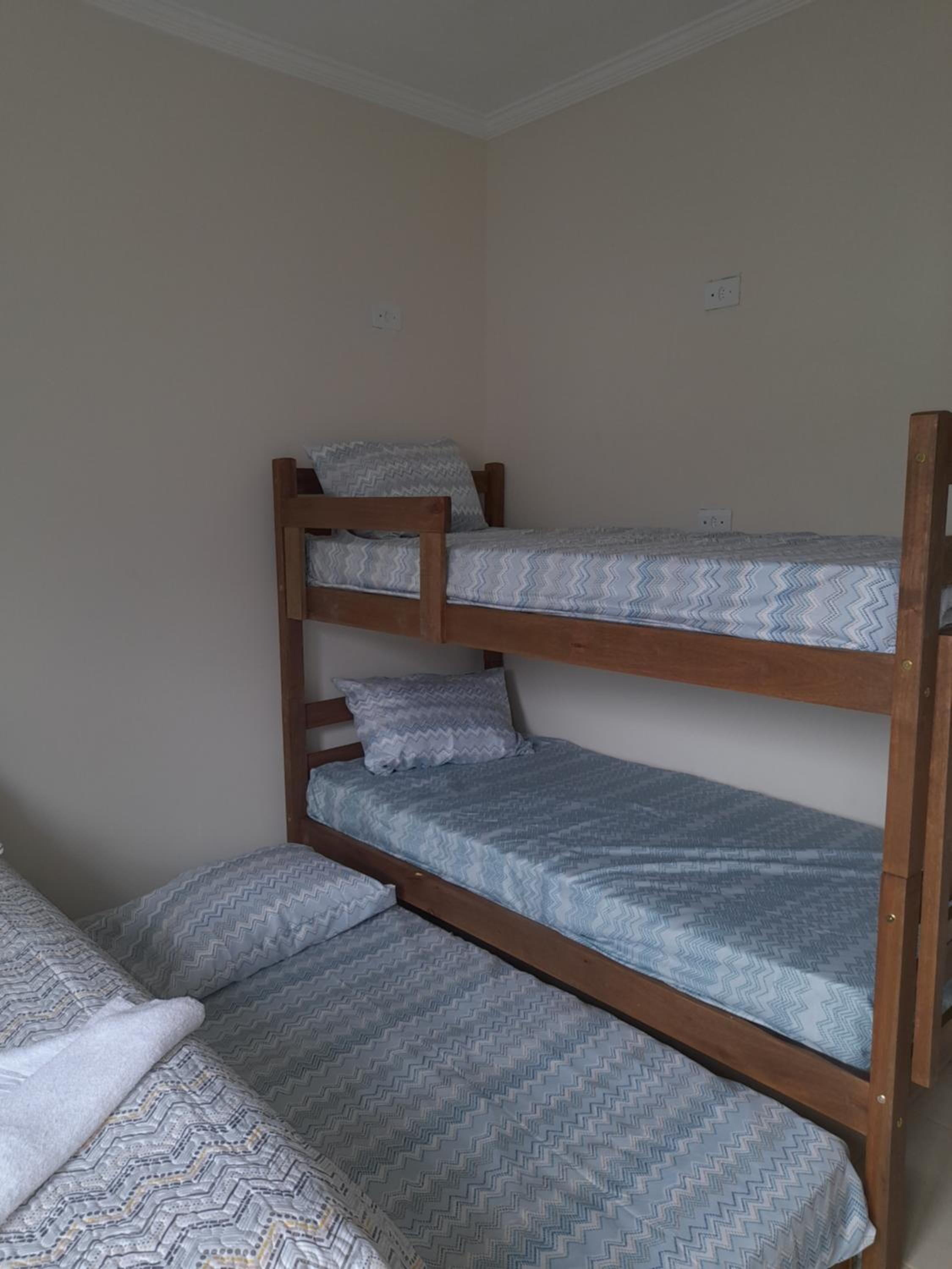 As instalações do quarto são precárias, o chuveiro tinha um vazamento e tivemos que tomar banho gelado por medo de levar os choque, o banheiro tem pouca ventilação o que deixa o quarto com cheiro ruim. O quarto com beliche é extremamente pequeno e quente pela pouca ventilação, e as roupas de cama e travesseiros ruim. A rua em que ele fica é de terra, não possui garagem. Mobilia da cozinha precisa de reparos.