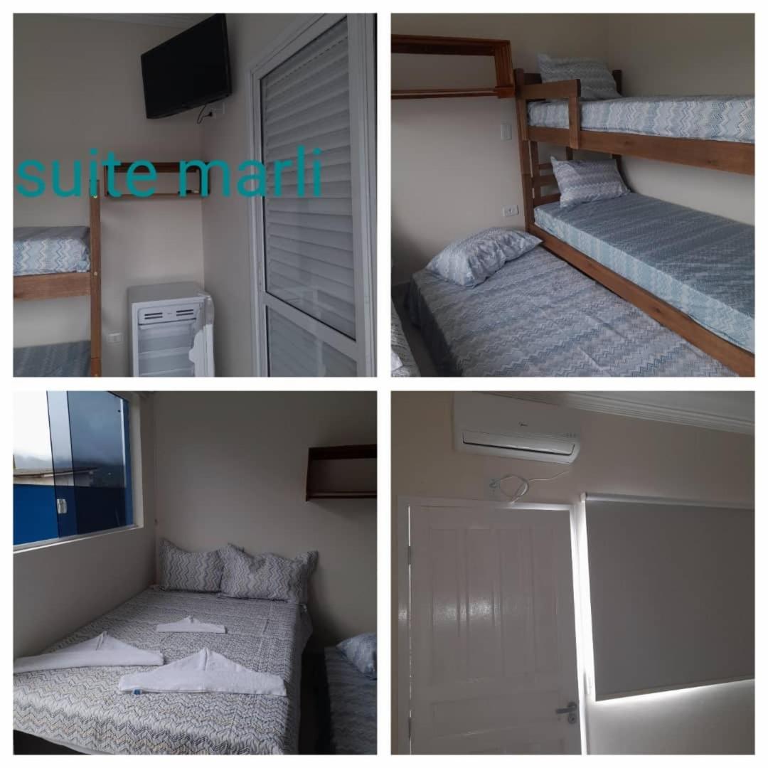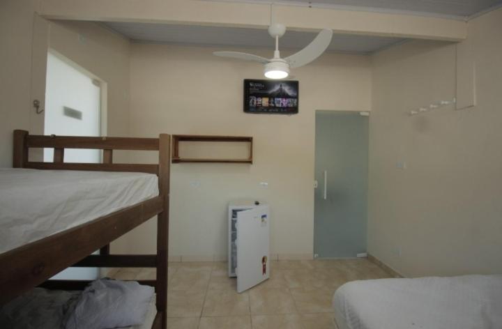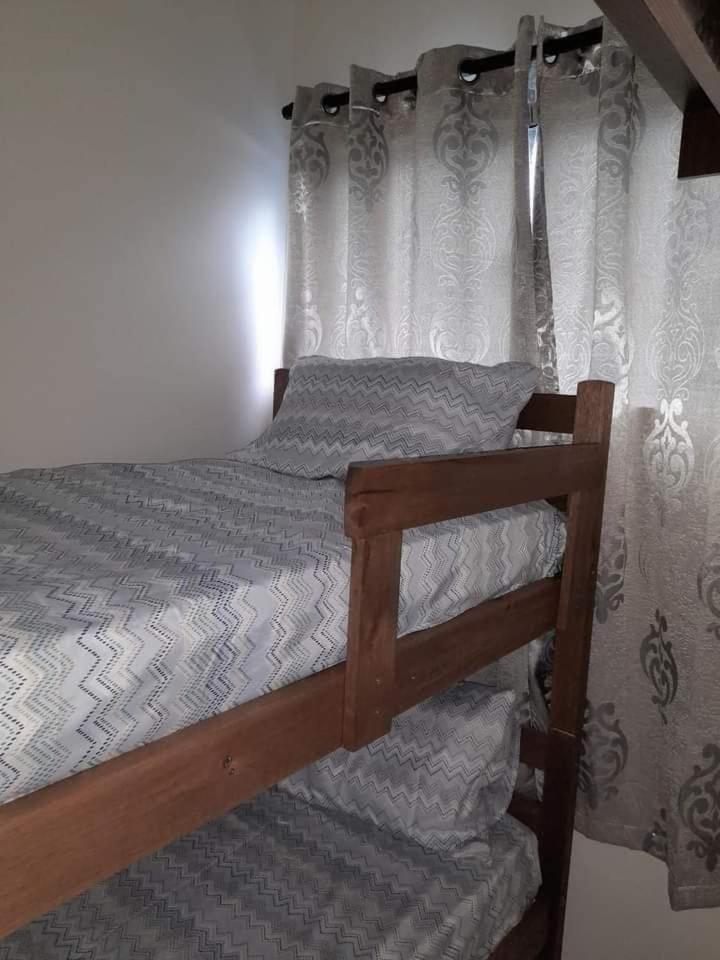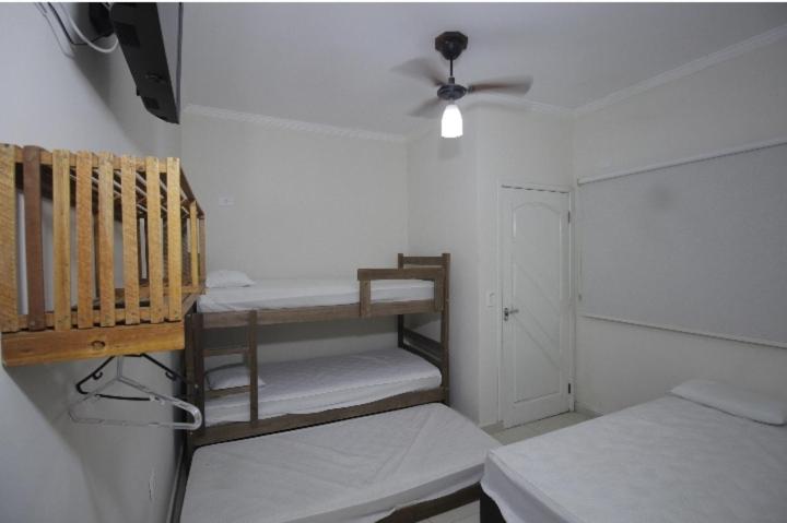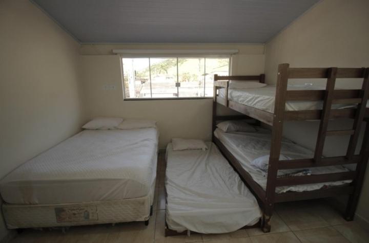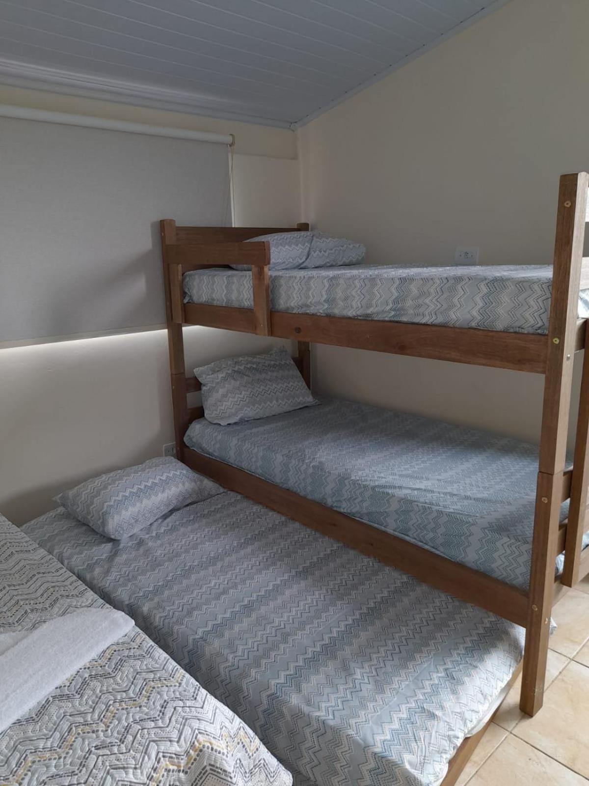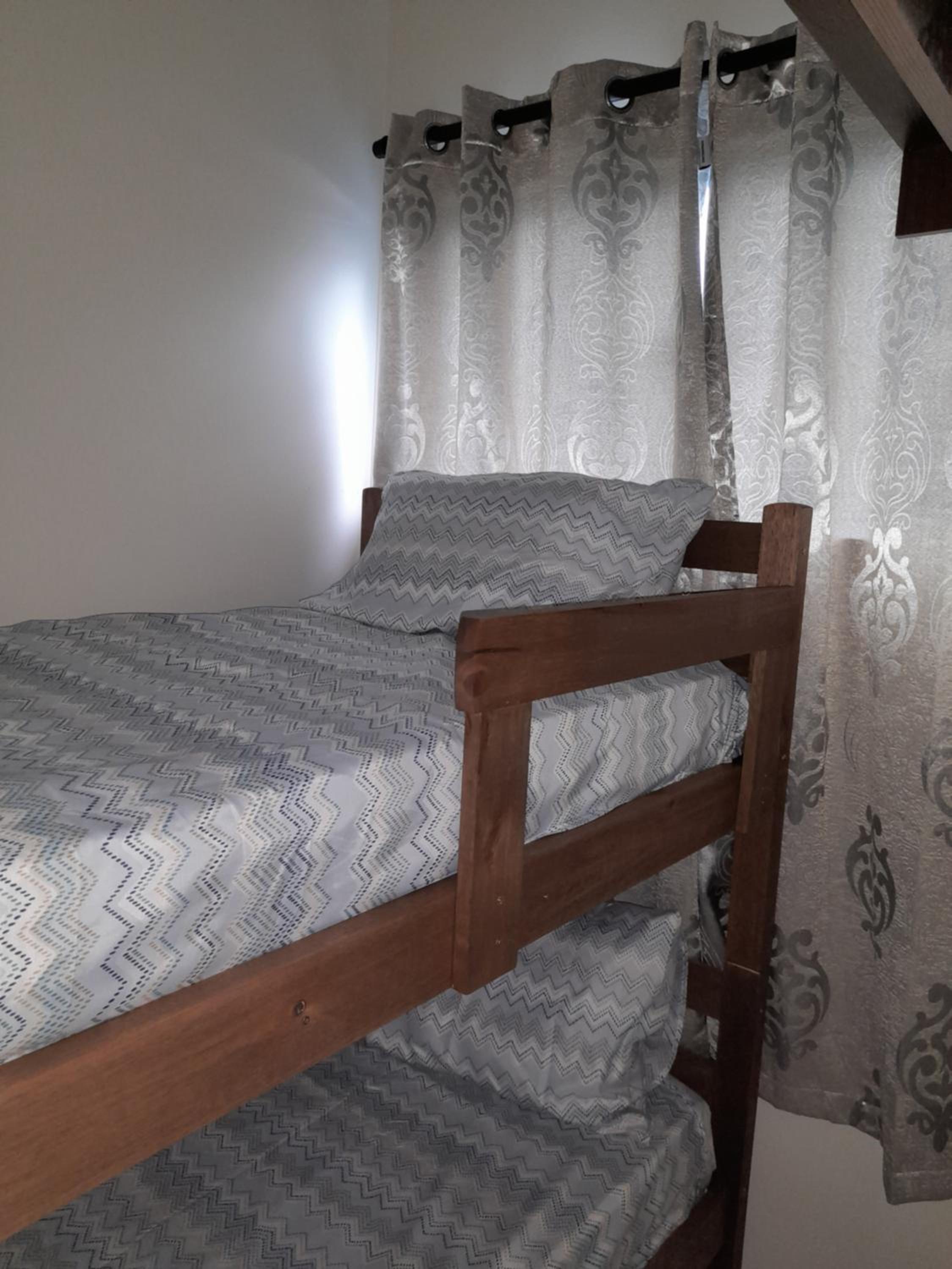 As instalações do quarto são precárias, o chuveiro tinha um vazamento e tivemos que tomar banho gelado por medo de levar os choque, o banheiro tem pouca ventilação o que deixa o quarto com cheiro ruim. O quarto com beliche é extremamente pequeno e quente pela pouca ventilação, e as roupas de cama e travesseiros ruim. A rua em que ele fica é de terra, não possui garagem. Mobilia da cozinha precisa de reparos.