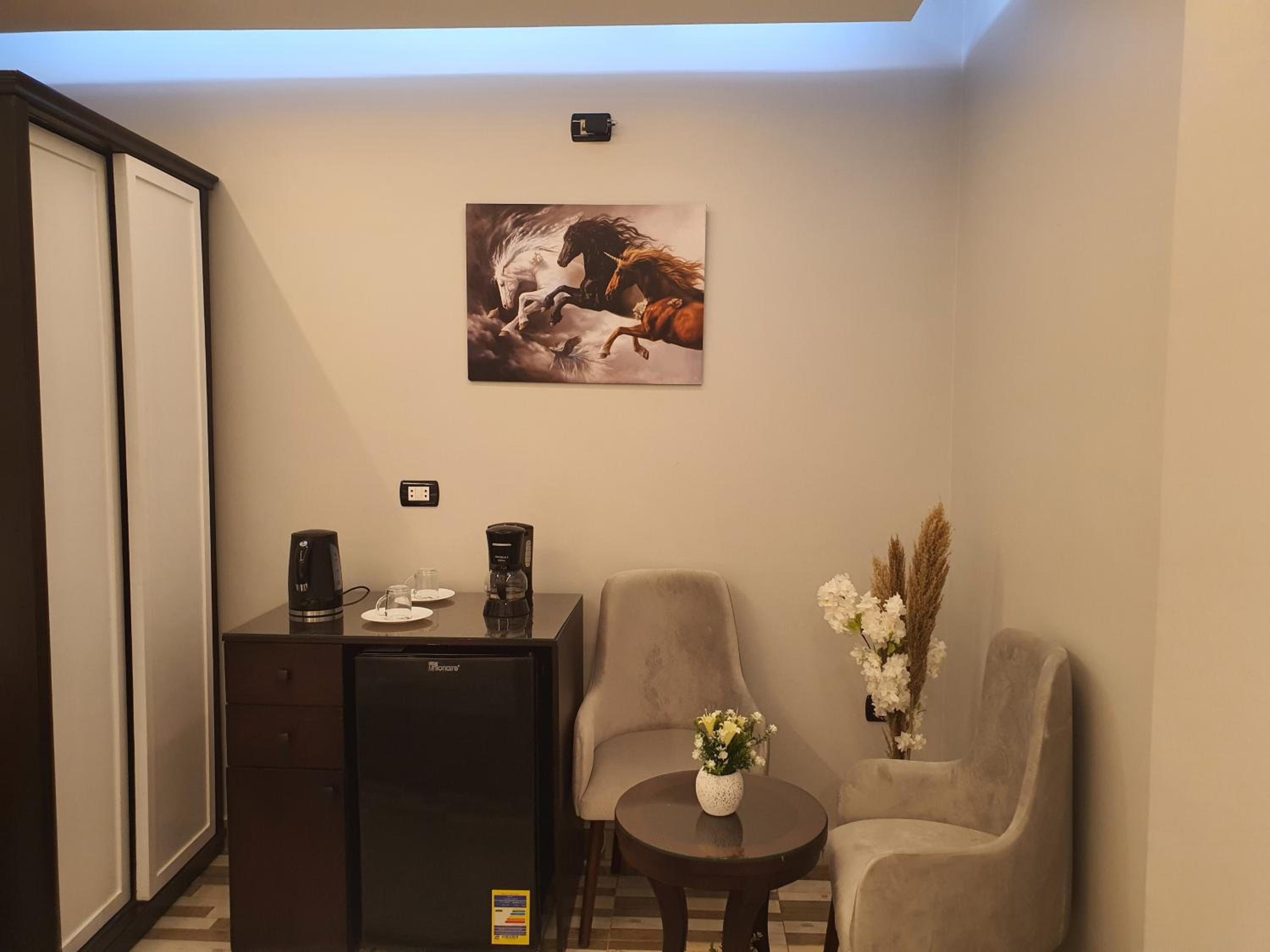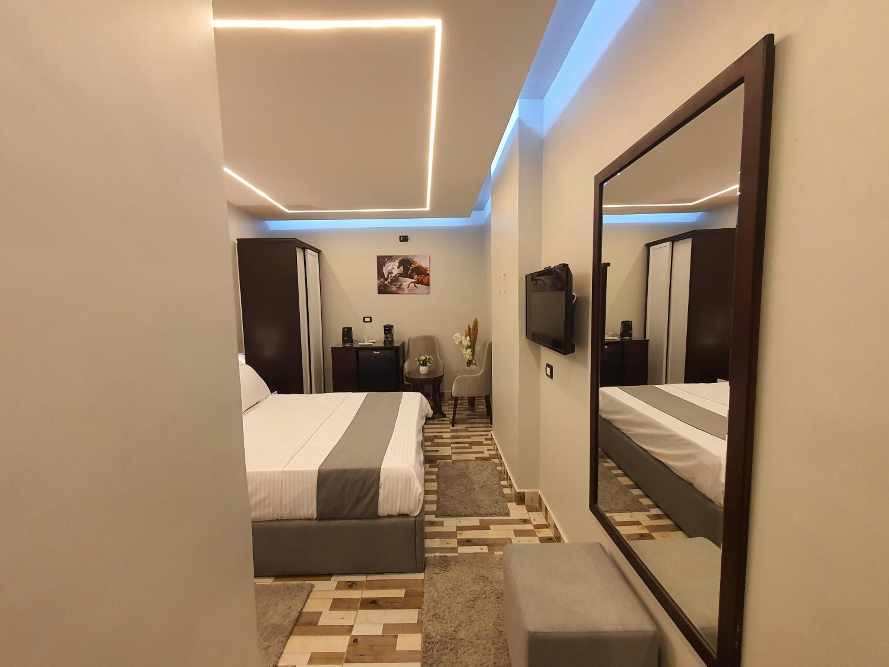 المكان مخدوم وحلو واصحاب المكان متعاونين وبيسعو لارضاء النزلاء ومحترمين جدا بالاضافة للغرف النظيفة وحارس العمارة ابو عمر الرجل الطيب المحترم والخدوم قليل نلاقي هيك ناس بهالايام ولكن اهل مصر اهل الخير والكرم والجود وربي يبارك برزقكم ويبارك بصحتك وبعيالك ياعم ابو عمر خليت عندي ذكرى طيبة انت واصحاب المكان لن تنسى .