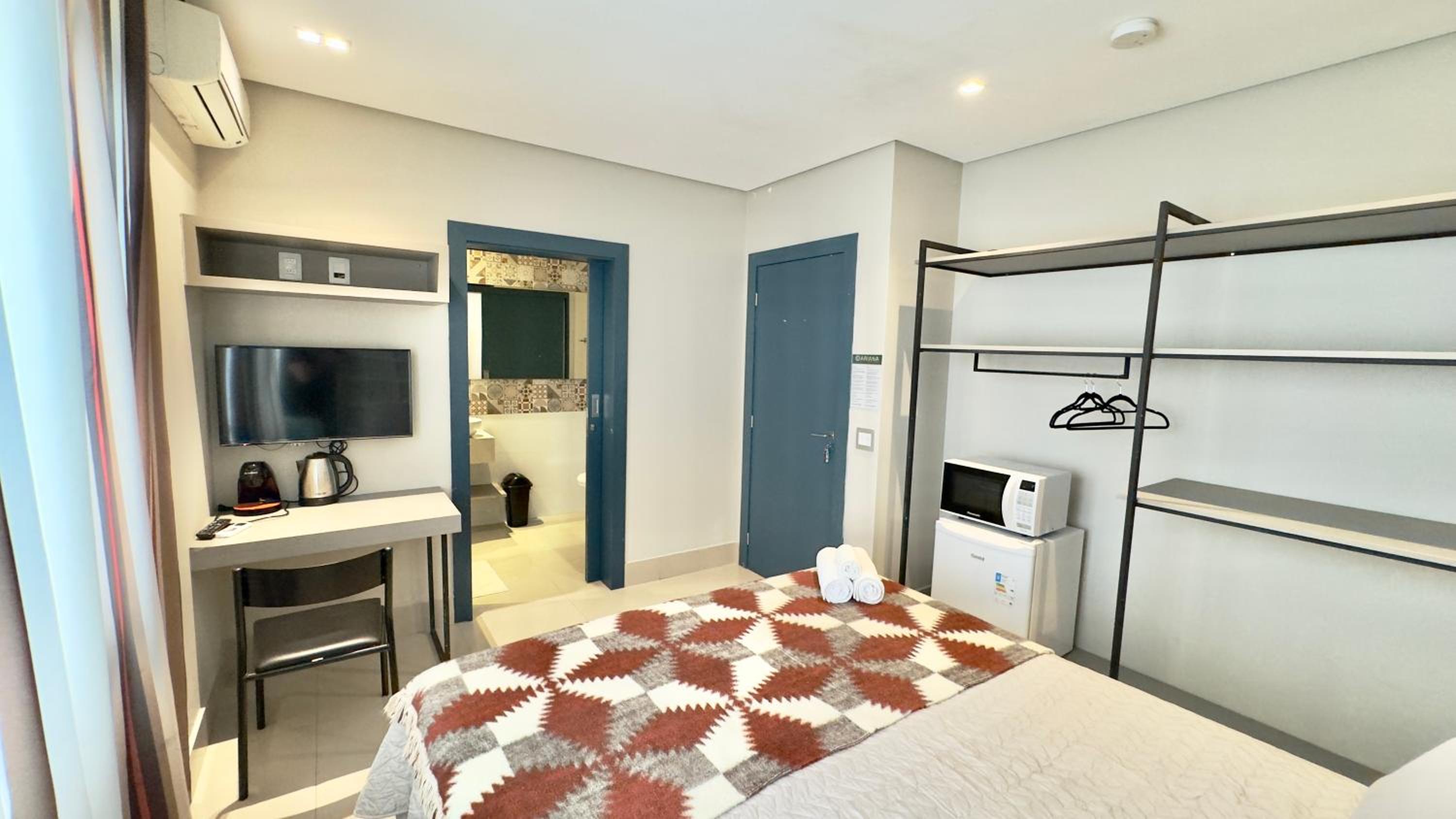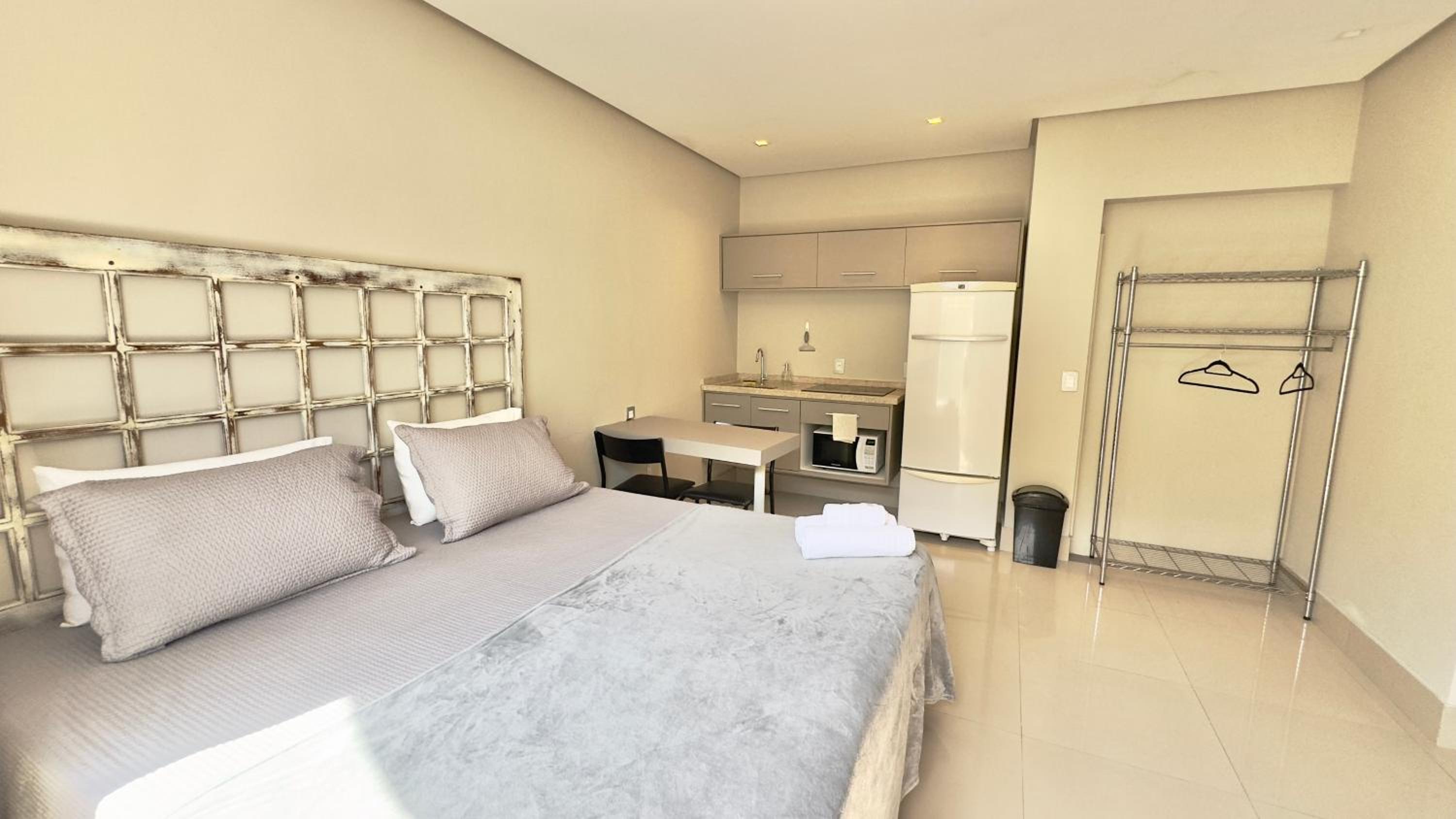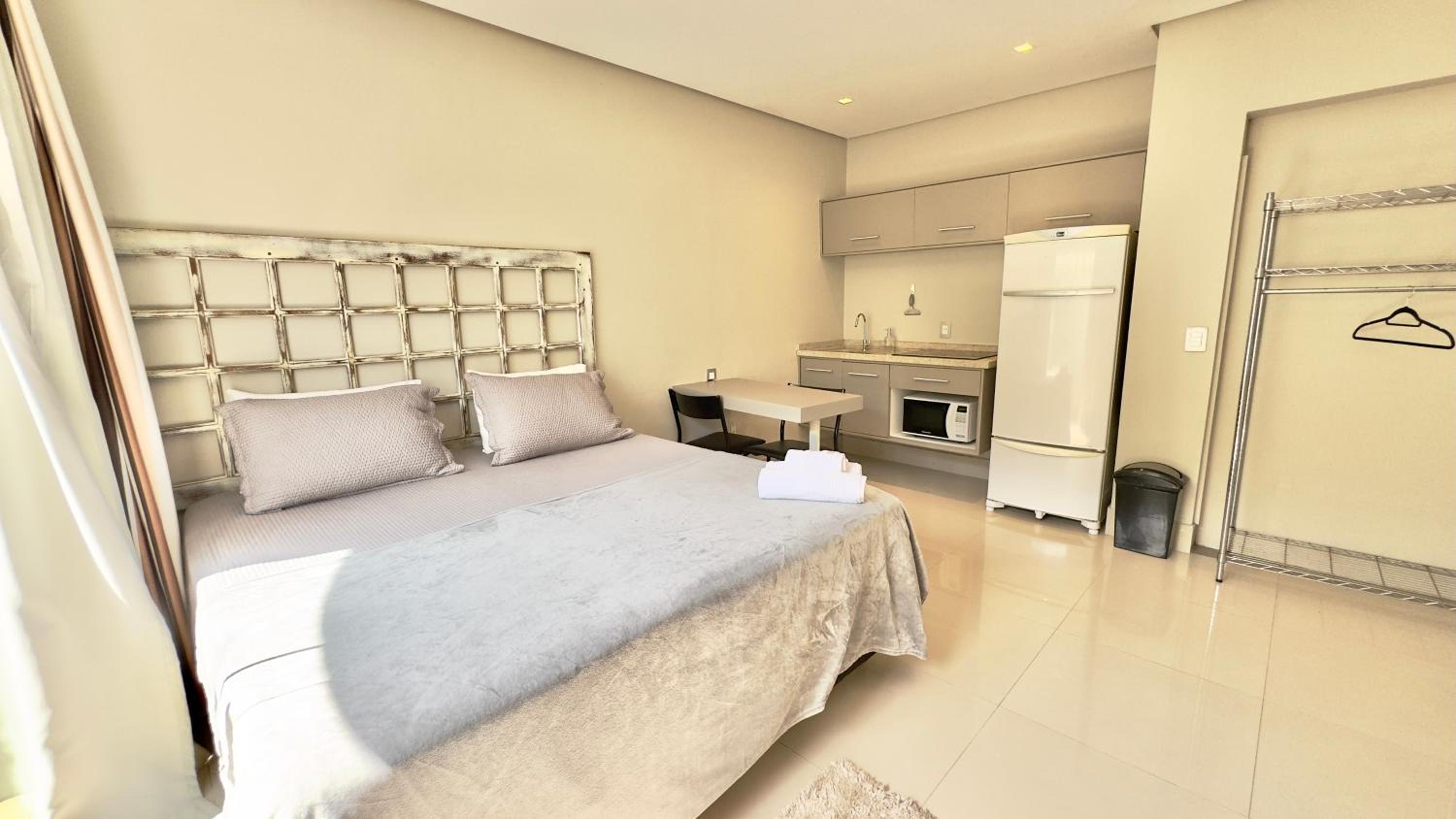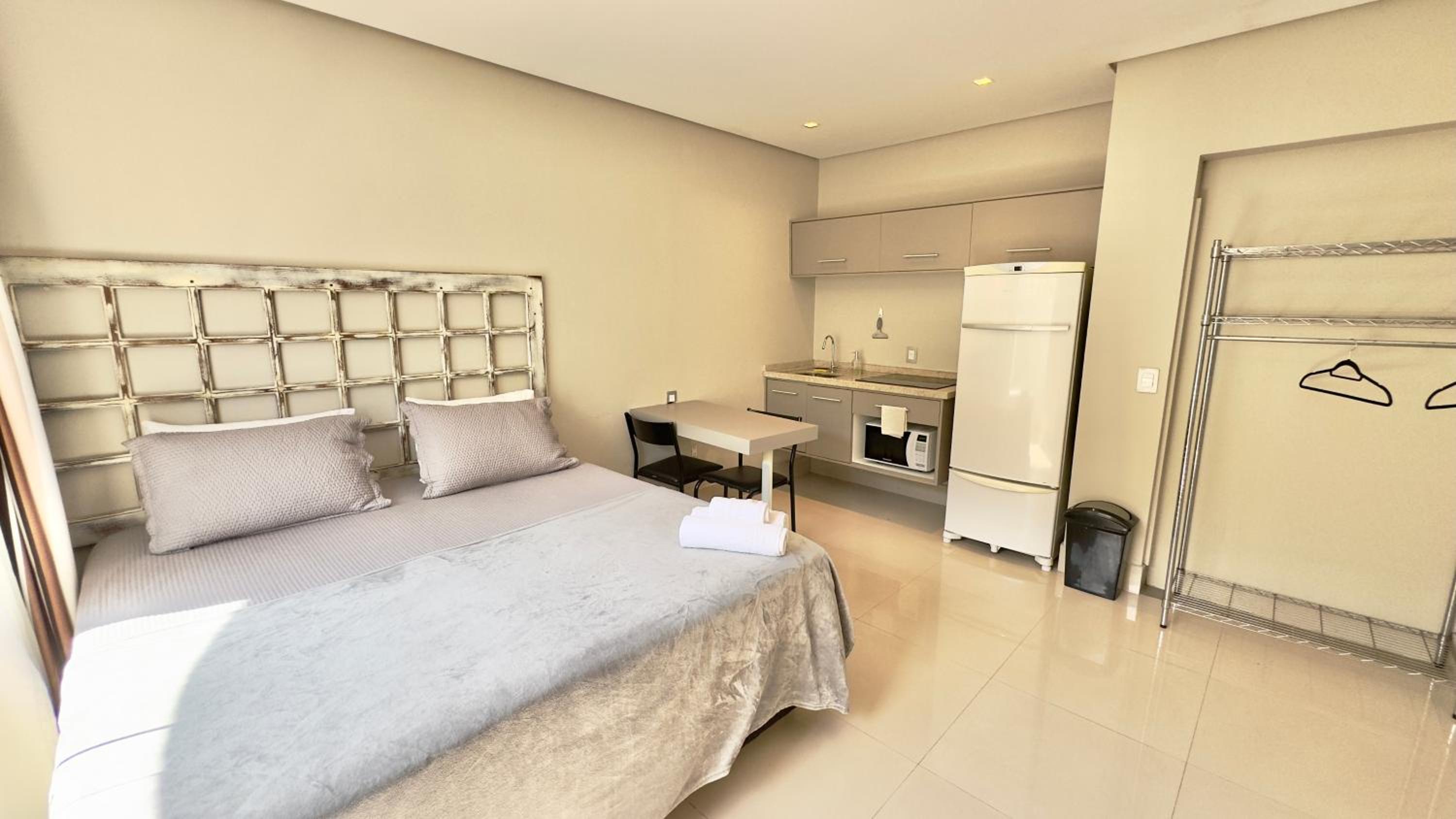 Quarto excelente, limpo, organizado e estruturado. Cozinha e geladeiras boas. Varanda espaçosa.