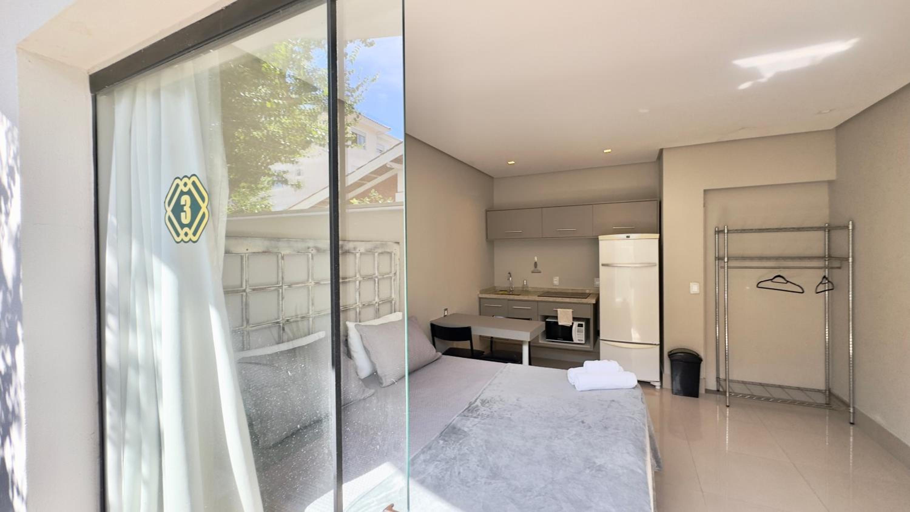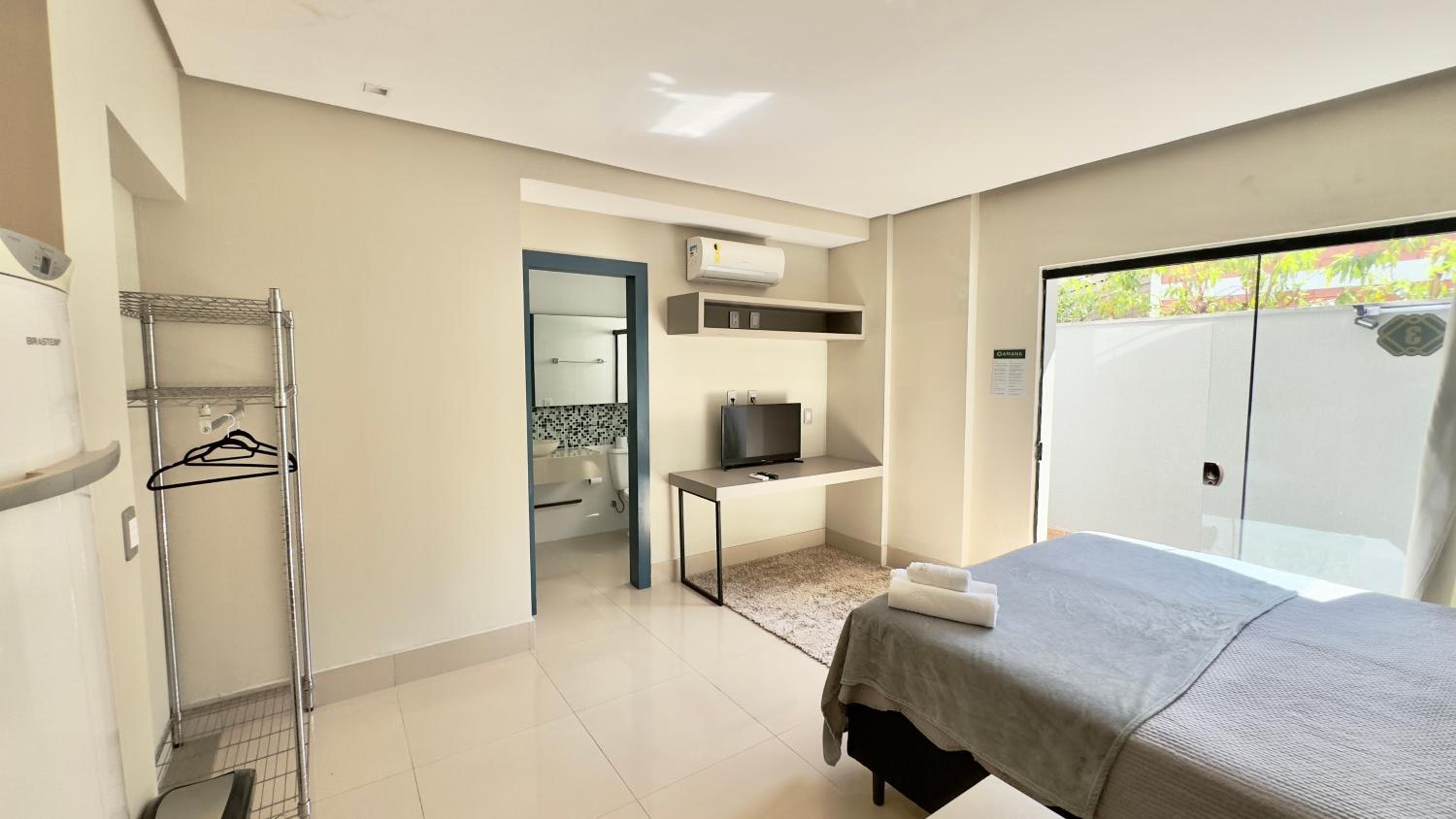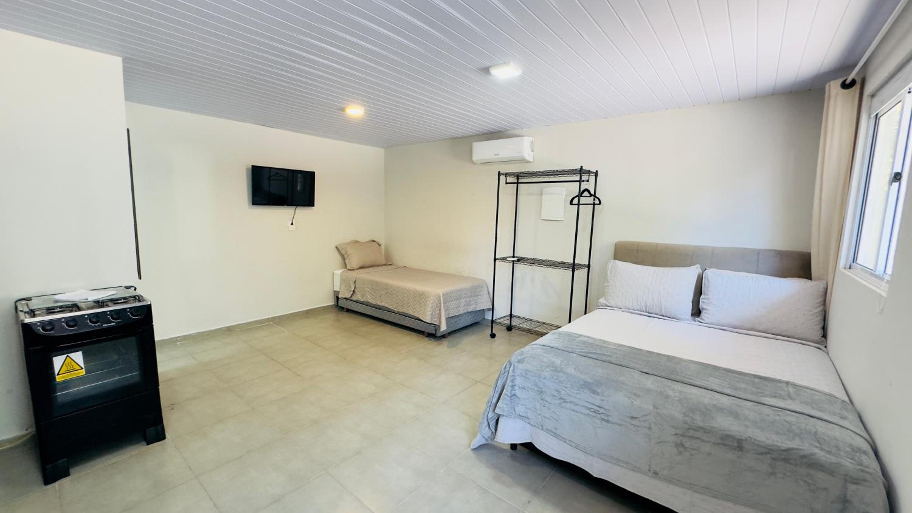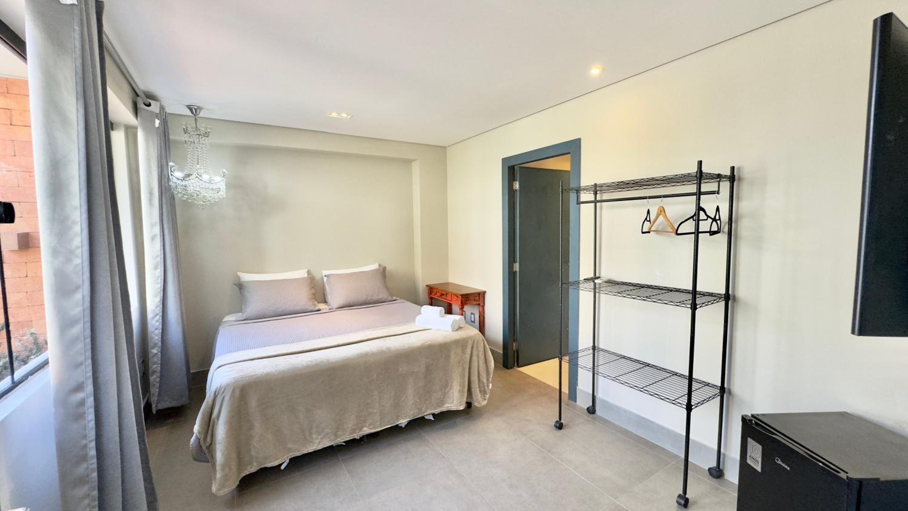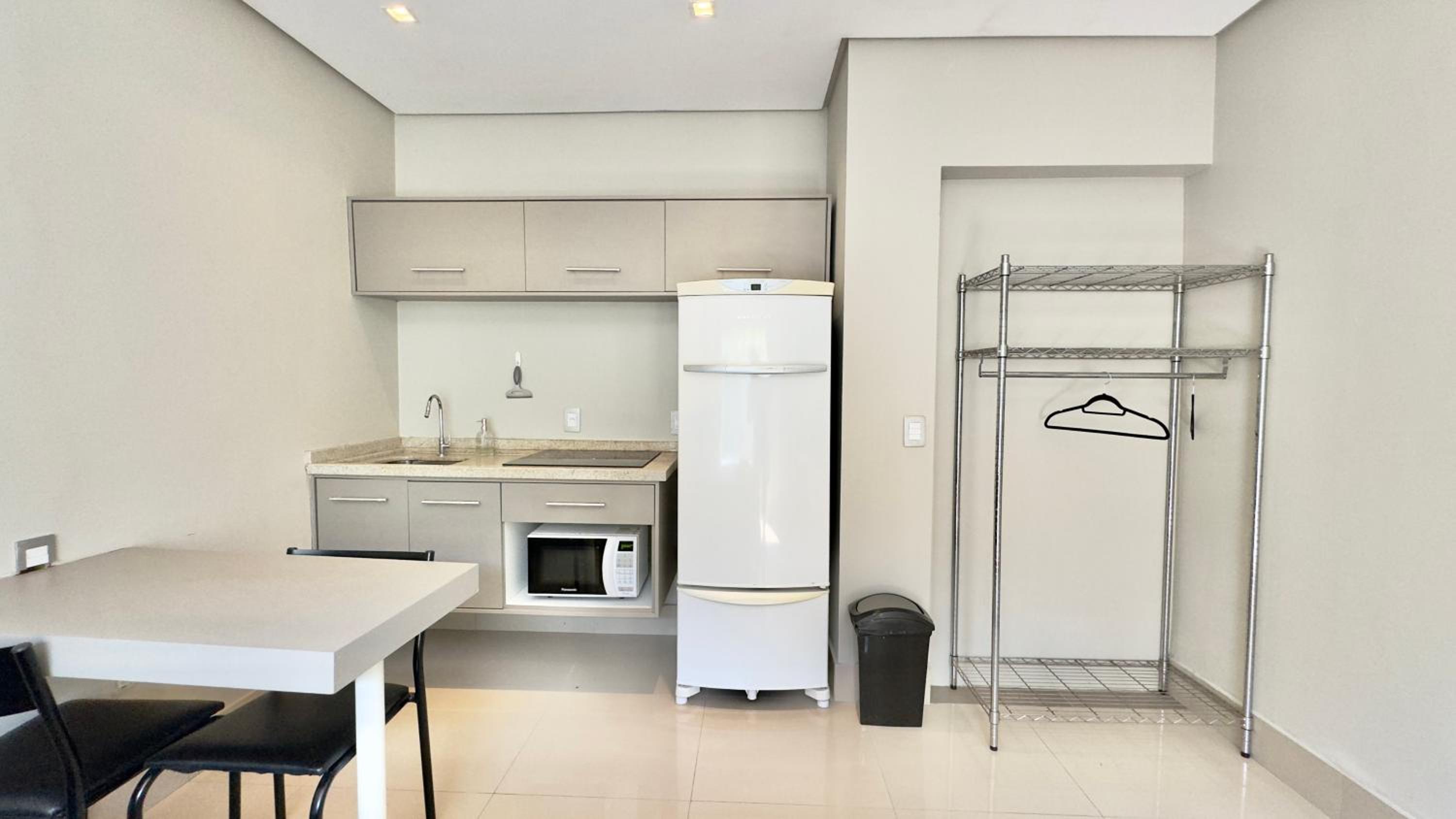 Quarto excelente, limpo, organizado e estruturado. Cozinha e geladeiras boas. Varanda espaçosa.