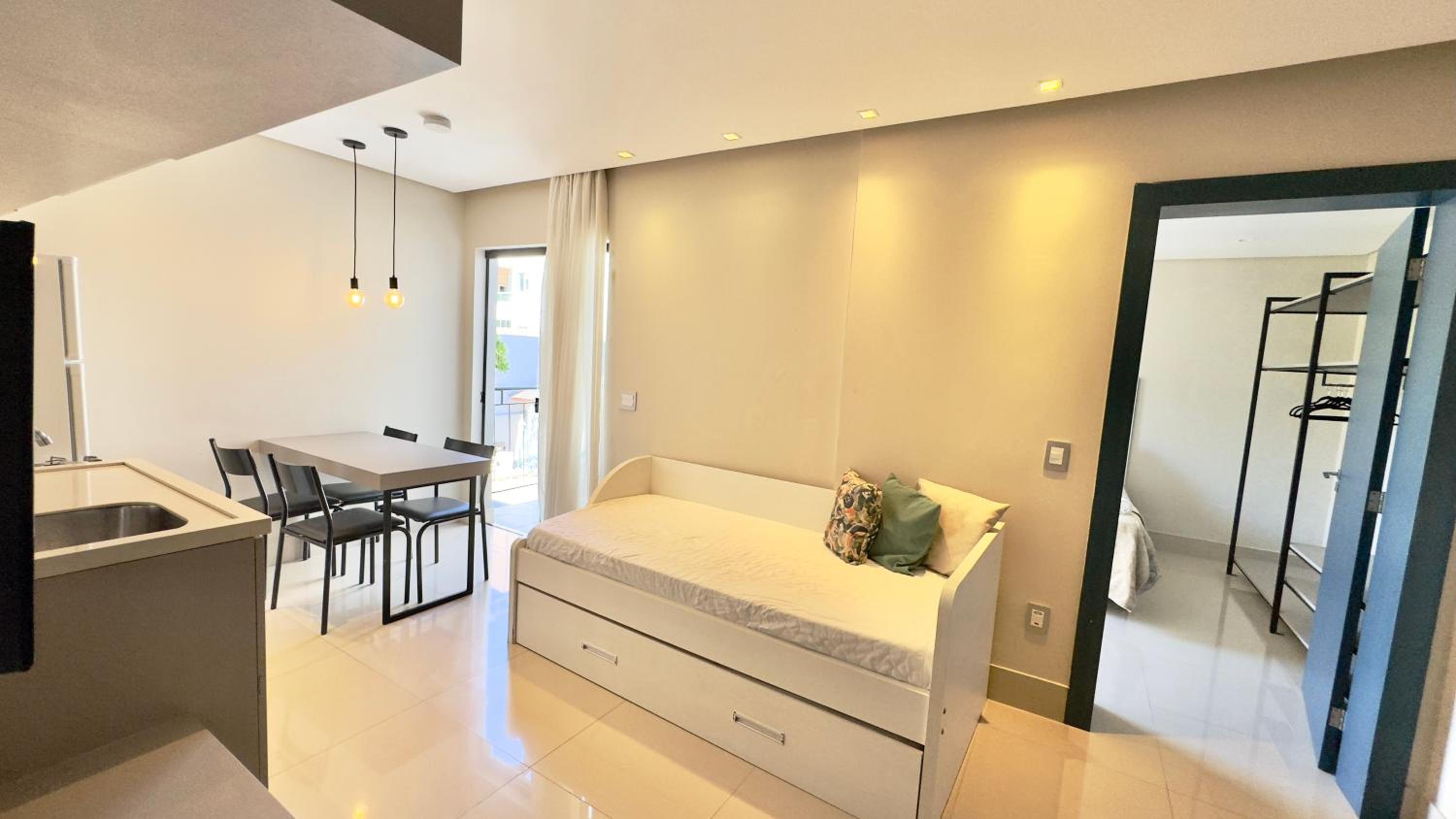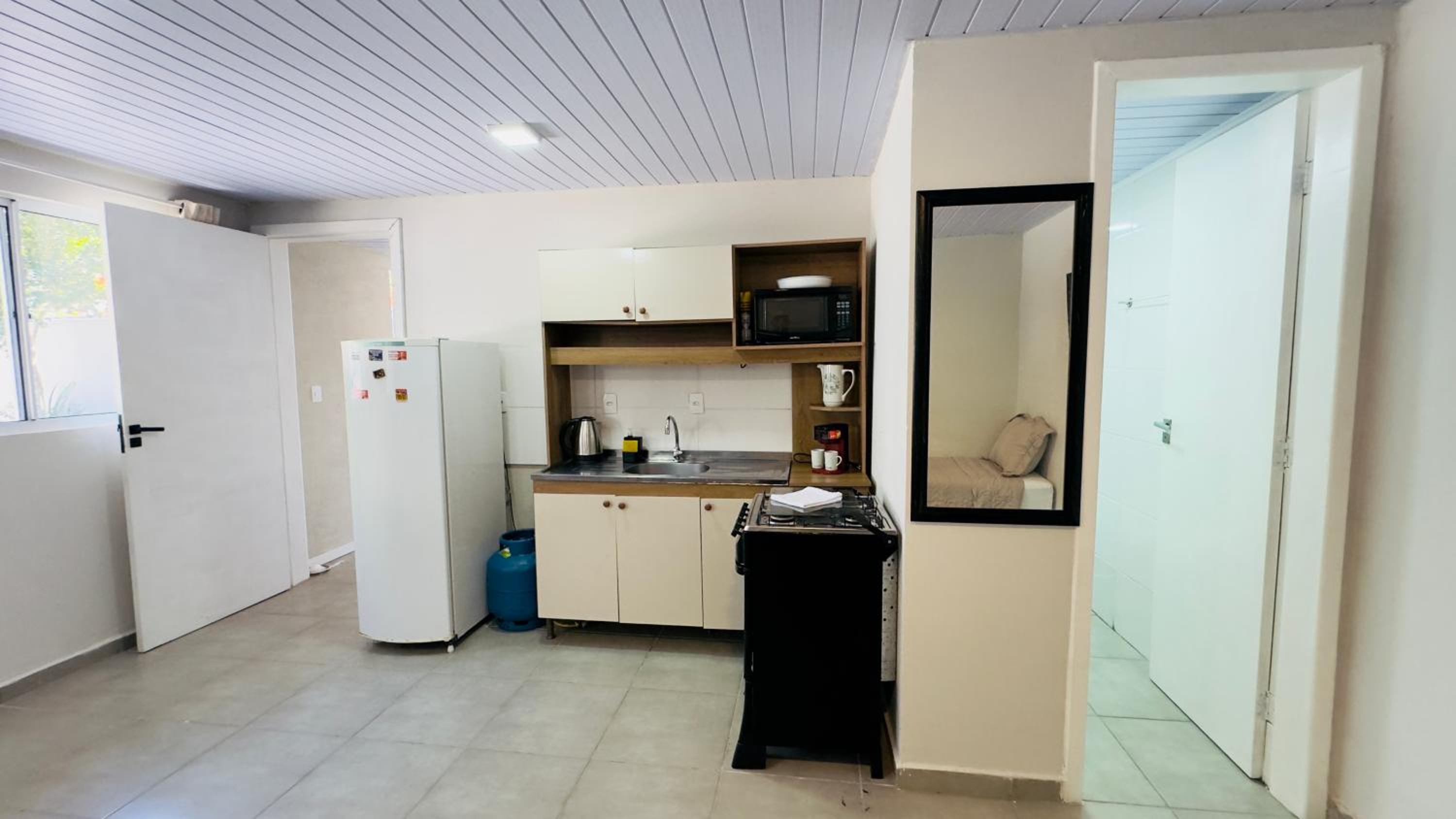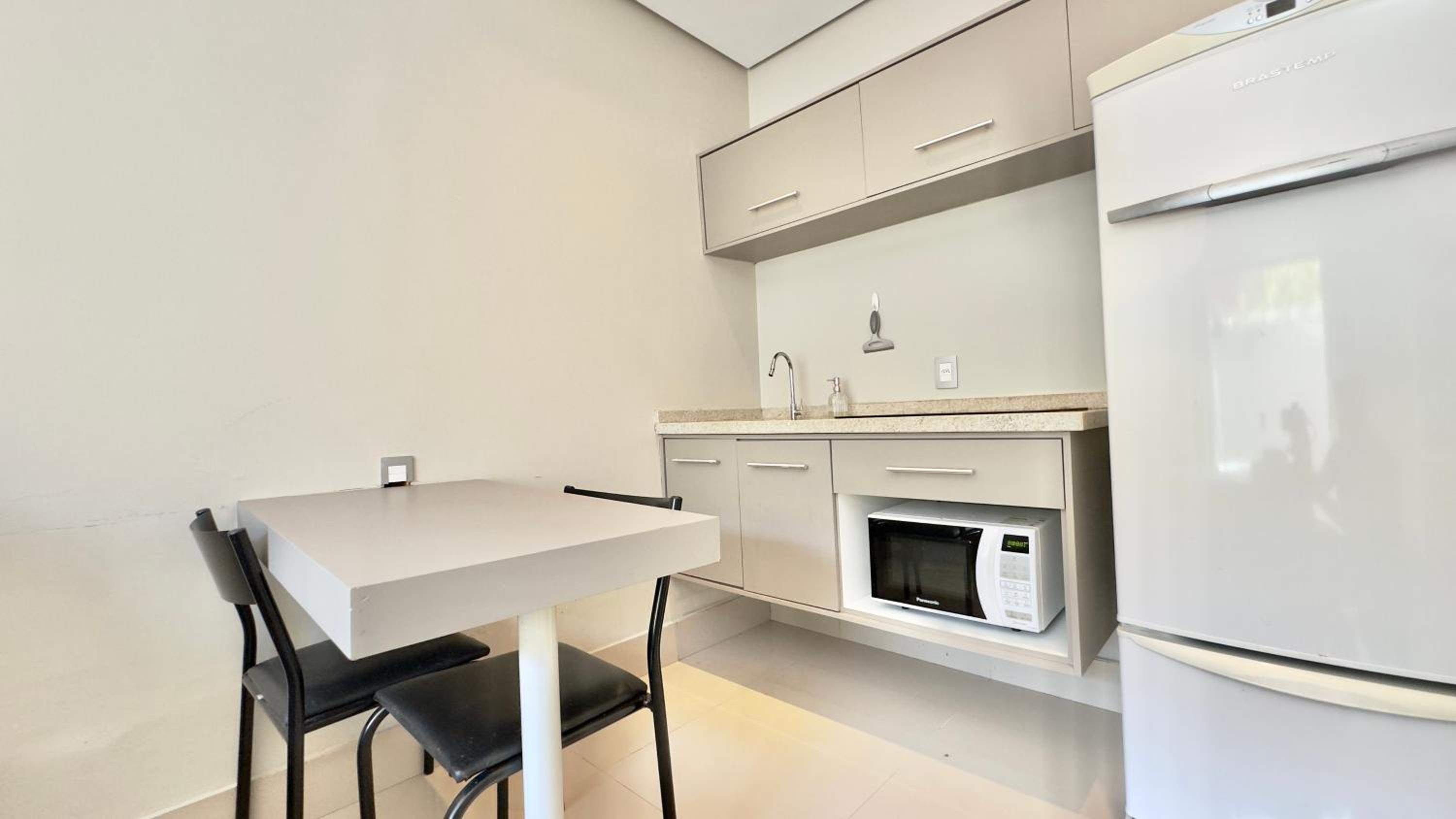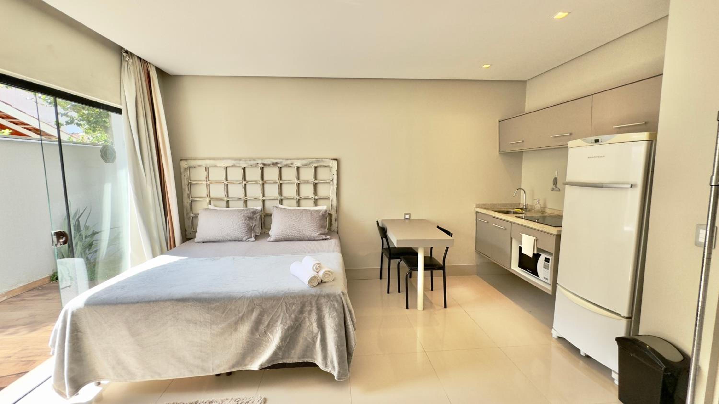 Quarto excelente, limpo, organizado e estruturado. Cozinha e geladeiras boas. Varanda espaçosa.