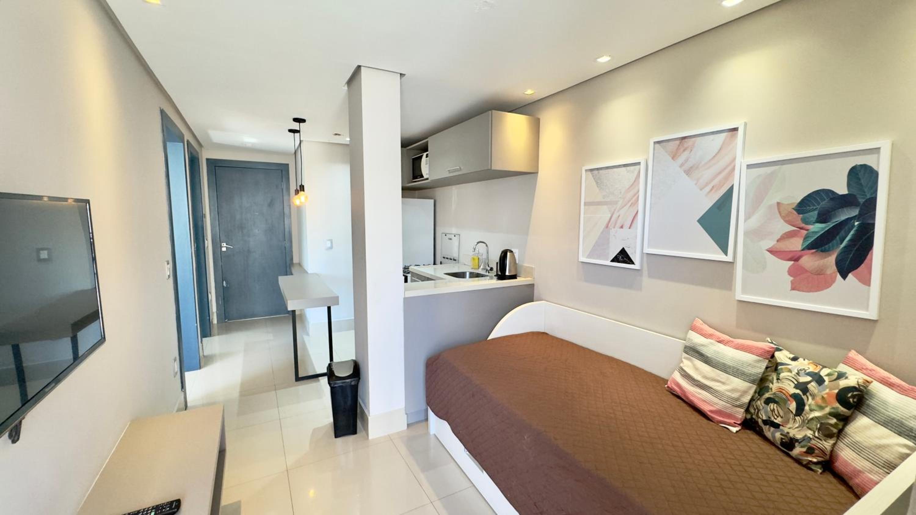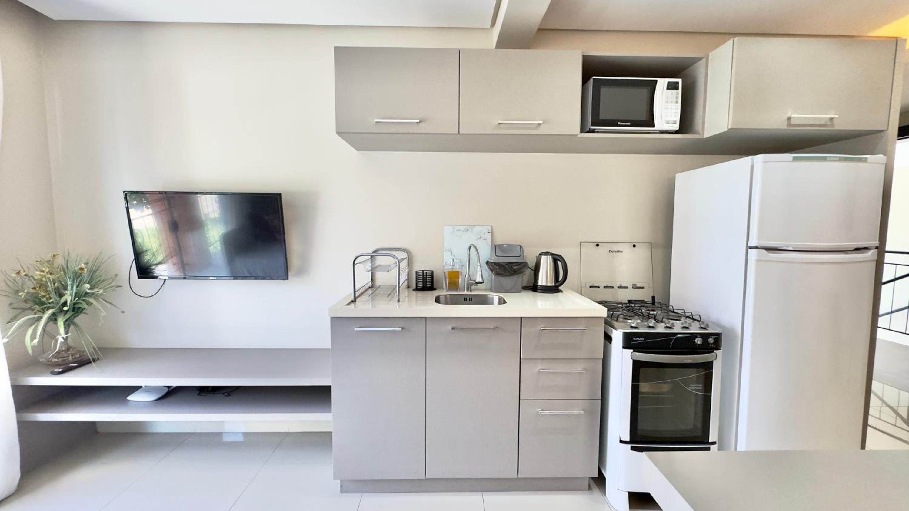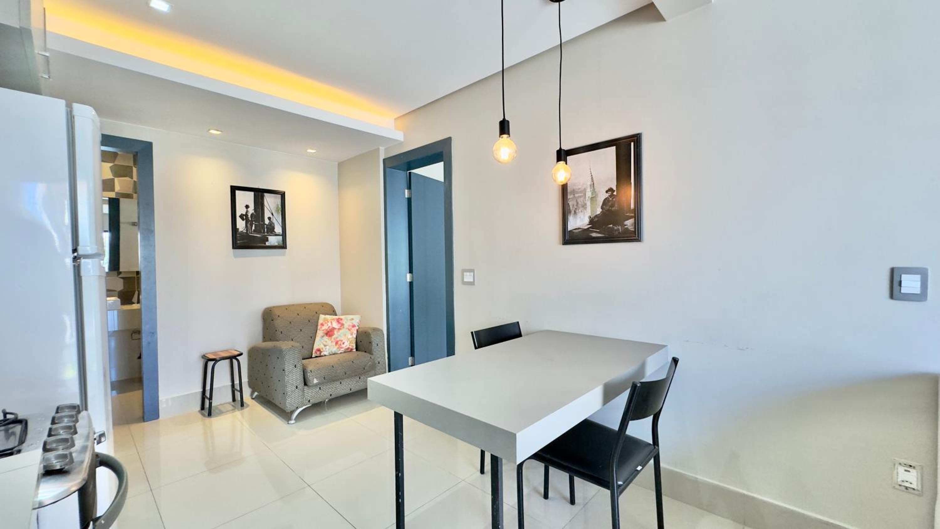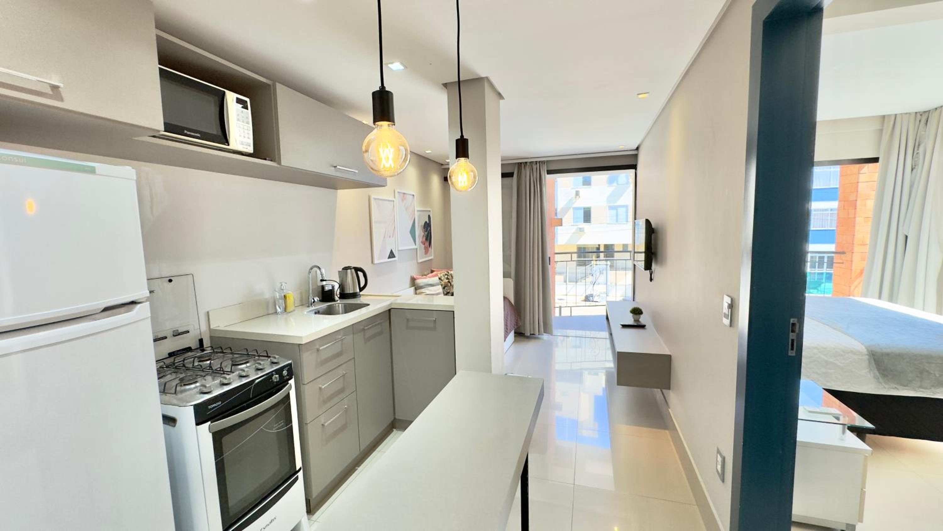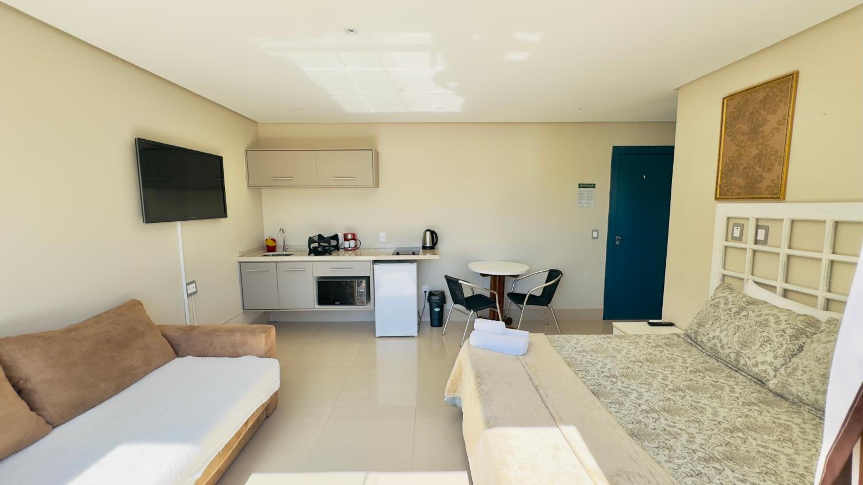 Quarto excelente, limpo, organizado e estruturado. Cozinha e geladeiras boas. Varanda espaçosa.