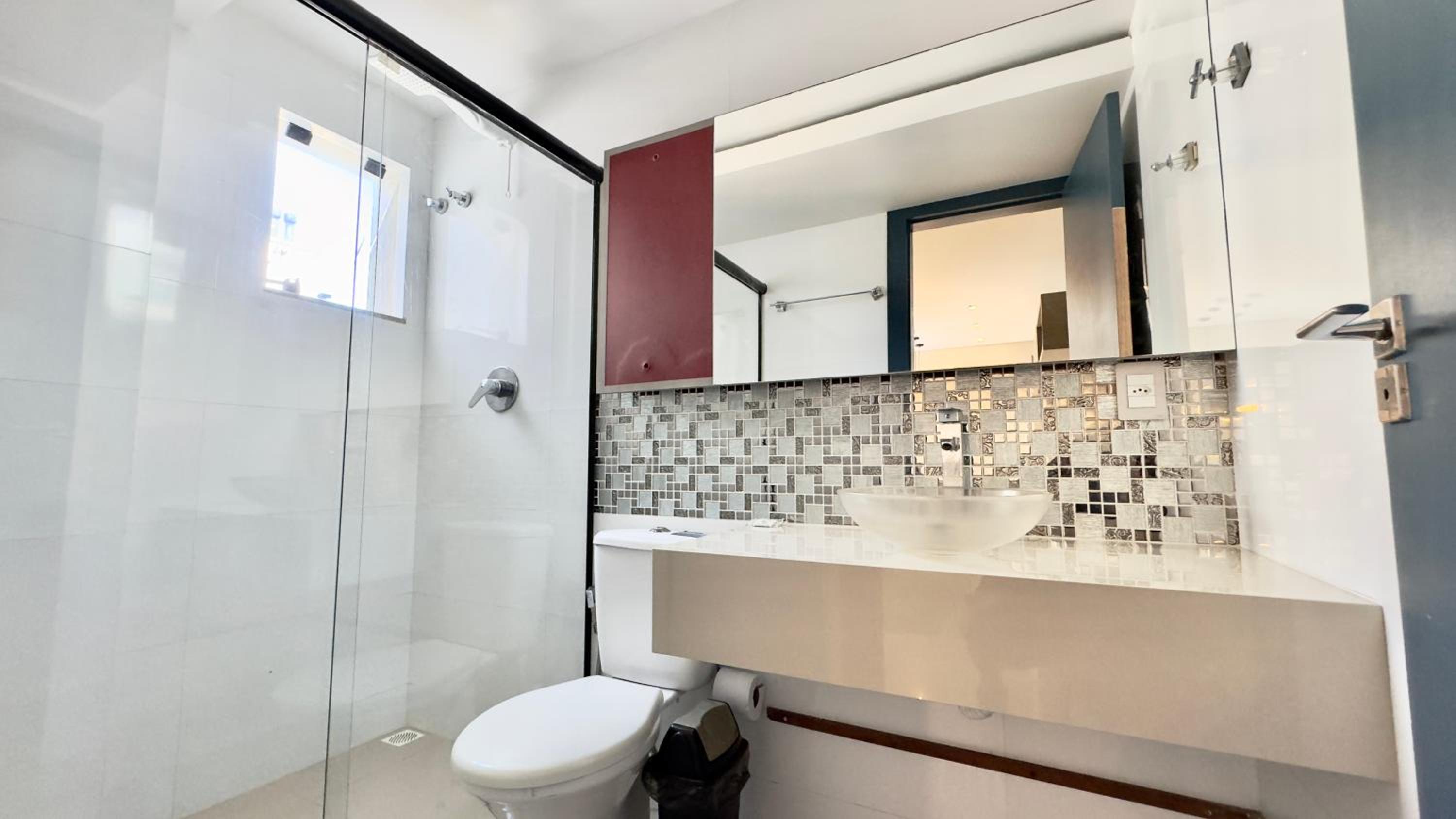 Falta de manutenção na unidade, a cortina estava saindo dos trilhos, louça quebrada e desgastada, piscina suja