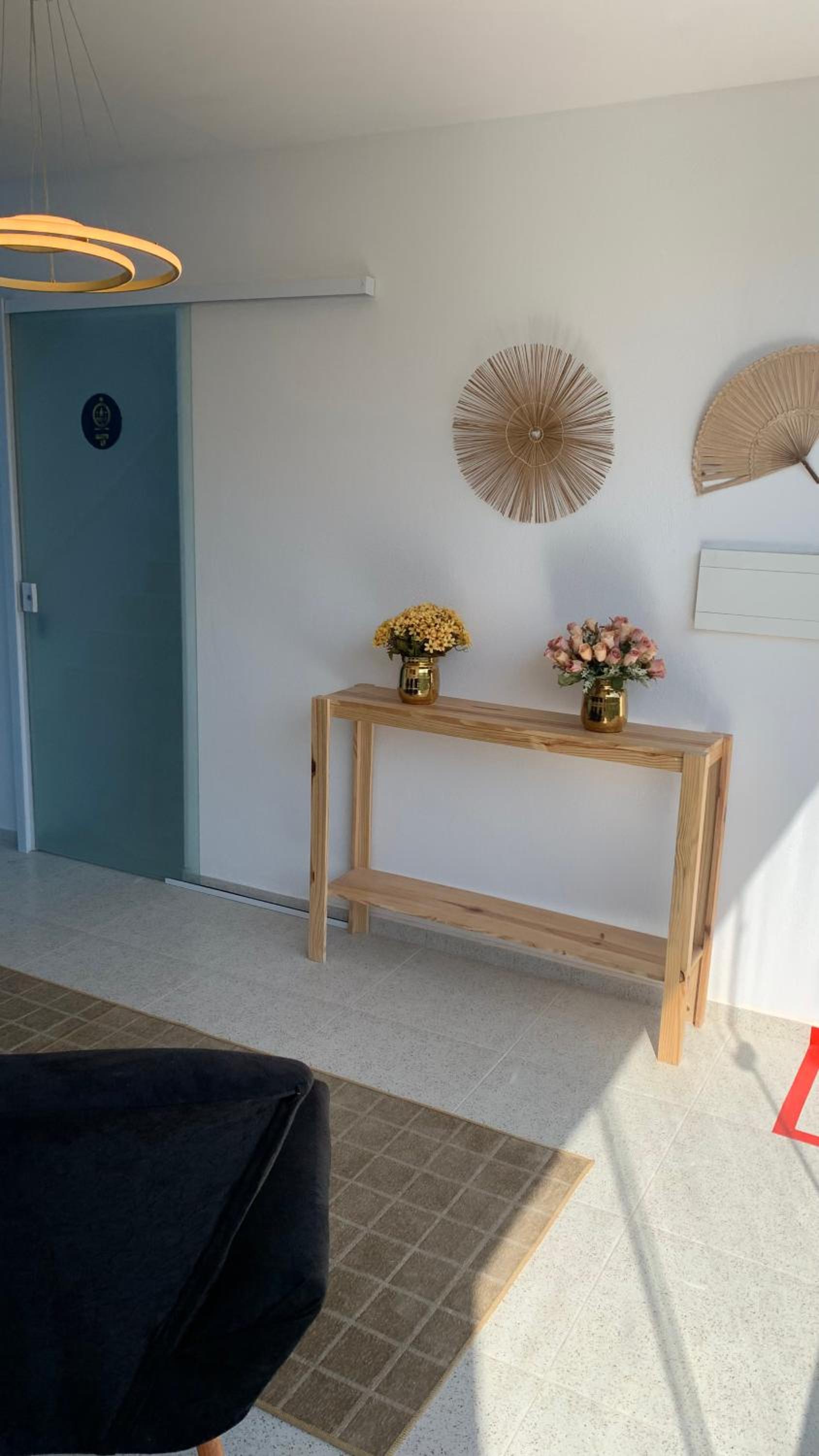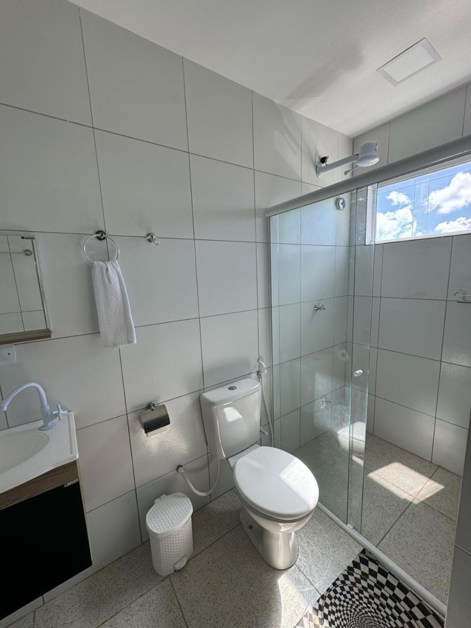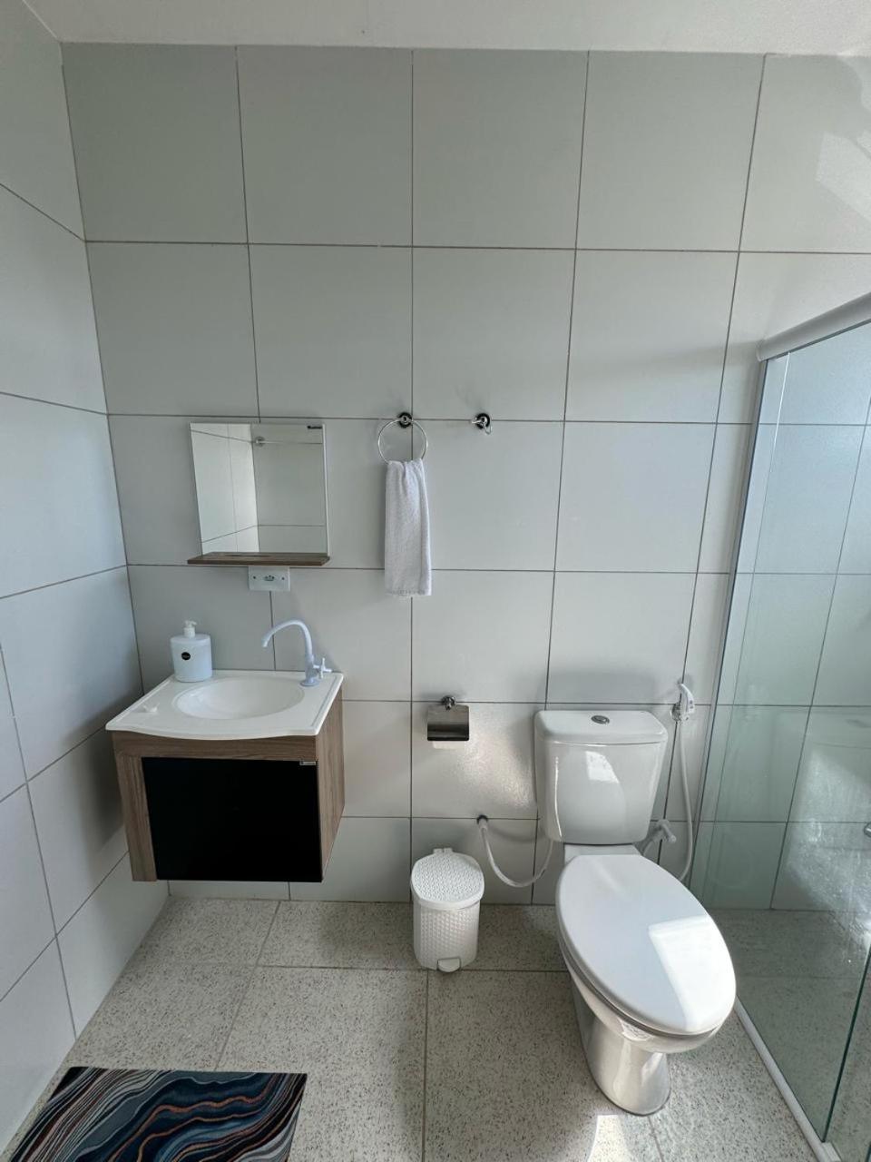 No banheiro, encontrei vários problemas funcionais: a porta sanfona de PVC estava emperrada e era difícil de correr no trilho. O banho também foi frustrante devido à baixíssima pressão da água. Além disso, a pia é minúscula e a torneira libera um fluxo tão reduzido que dificulta tarefas básicas como lavar o rosto ou enxaguar a boca. É um lugar com potencial, mas que precisa urgentemente de manutenção e renovação no mobiliário.