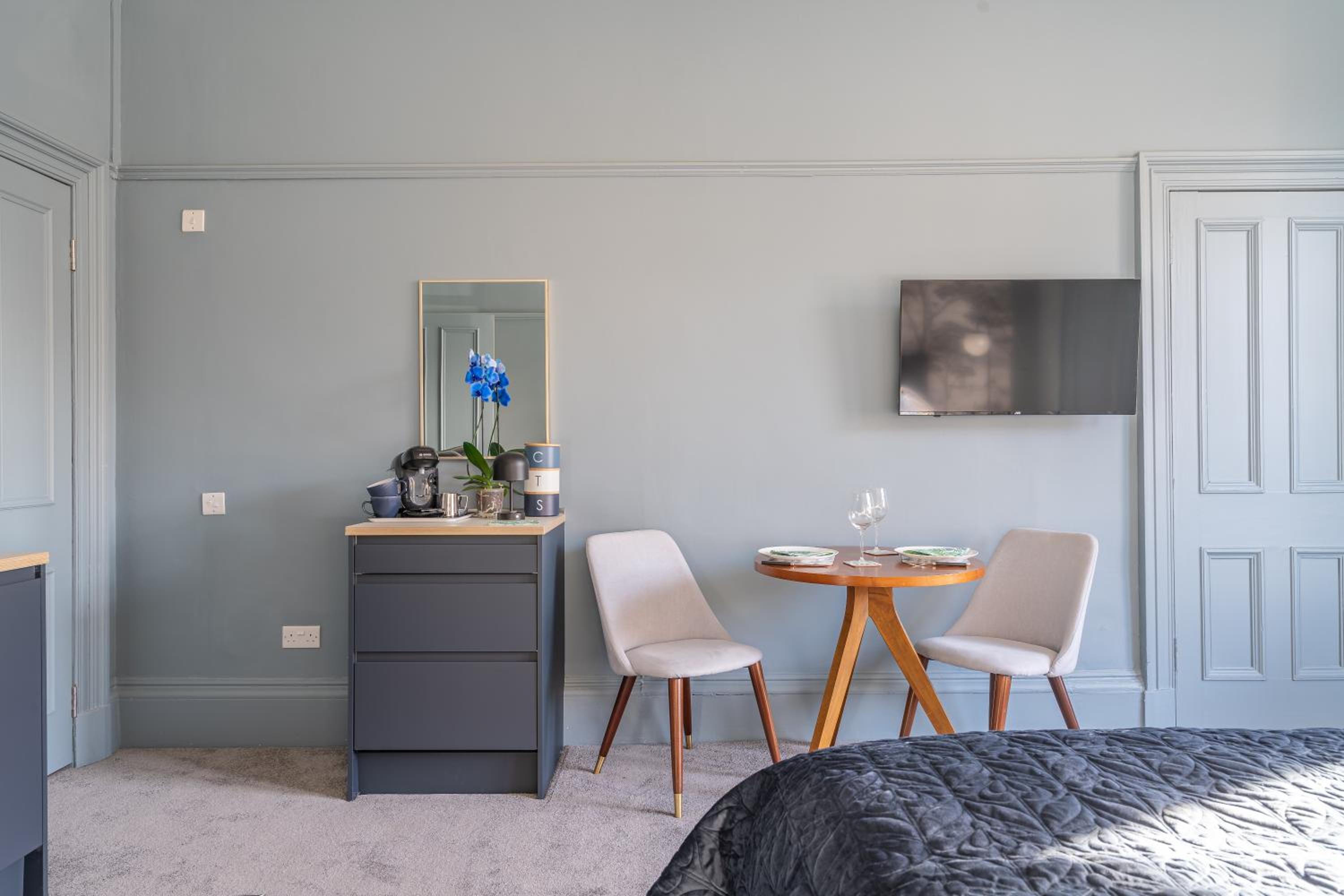 The location of this room is ideal for us, and we have stayed here a couple of times. It's a lovely, big room. Toaster, kettle & fridge are all very useful. The bathroom is tiny but functional.