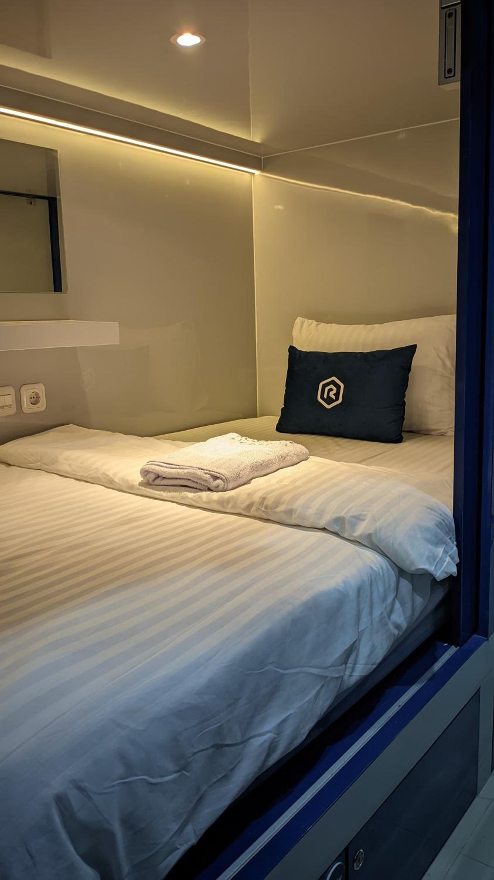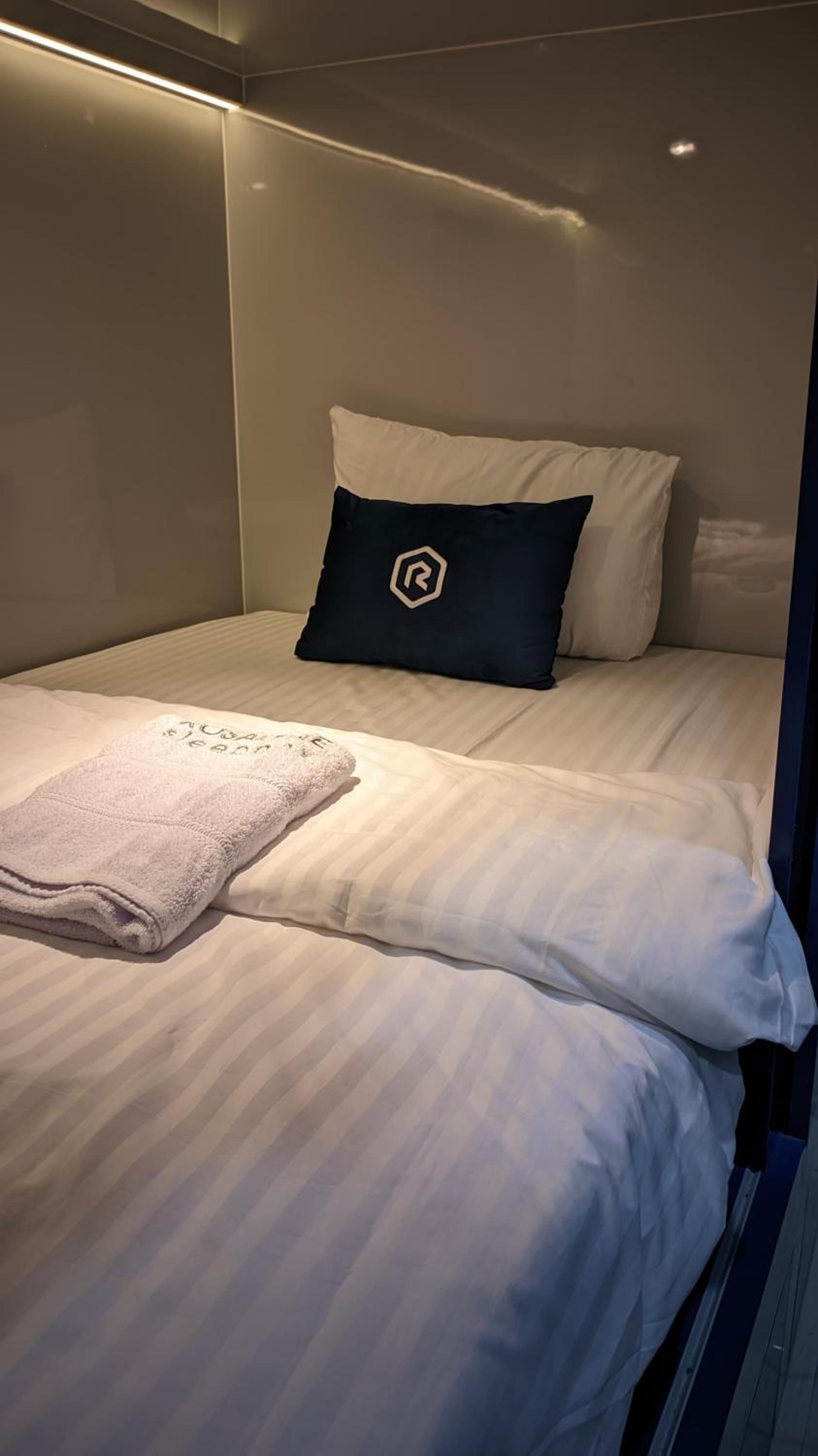 Great place! I was impressed with the silence of my stay besides one night when someone’s alarm was going off at 3 AM. I asked the front staff to assist and they were able to shut it off. The capsule and bathrooms were clean, comfortable and the staff was friendly and helpful.