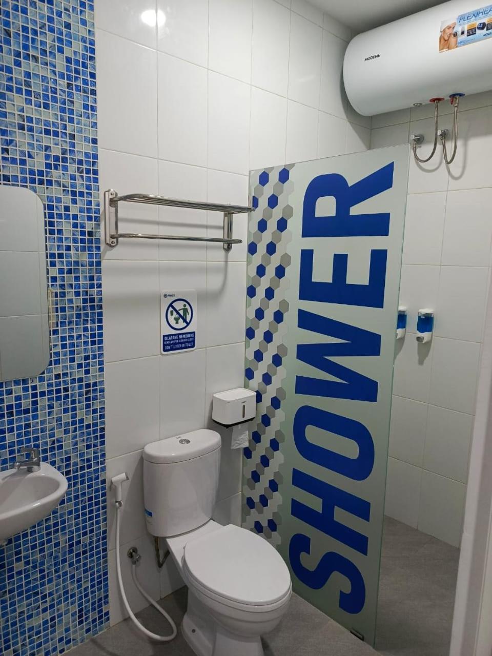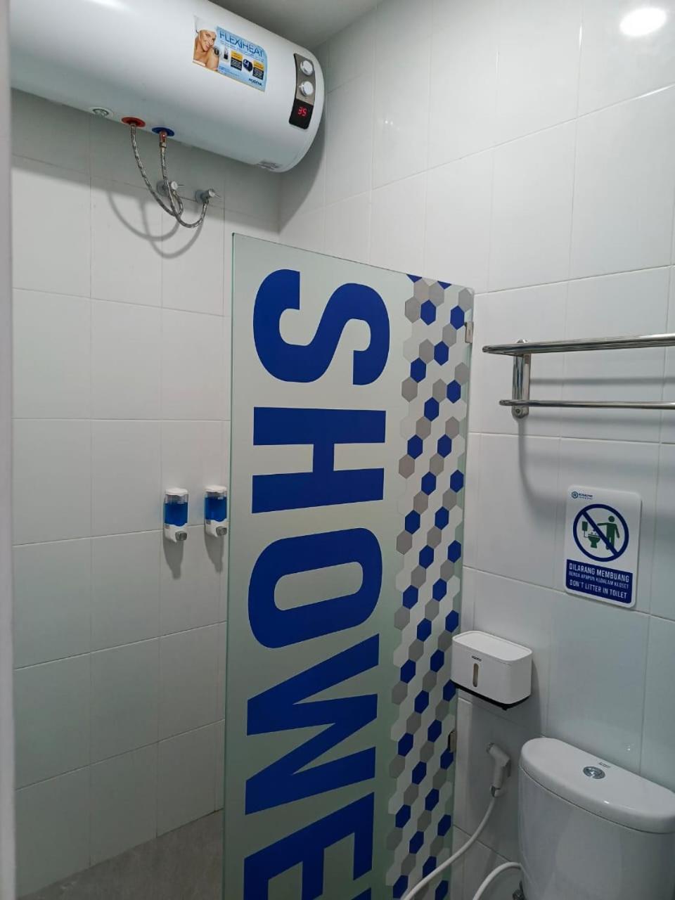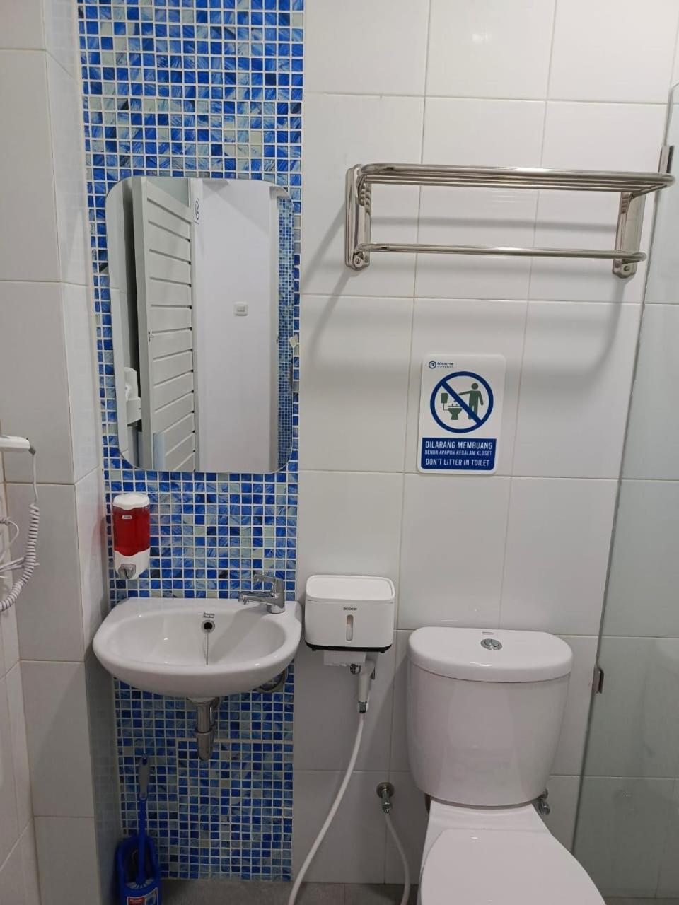 Dalam kamar mandi ada hair dryer, disediakan juga air putih.